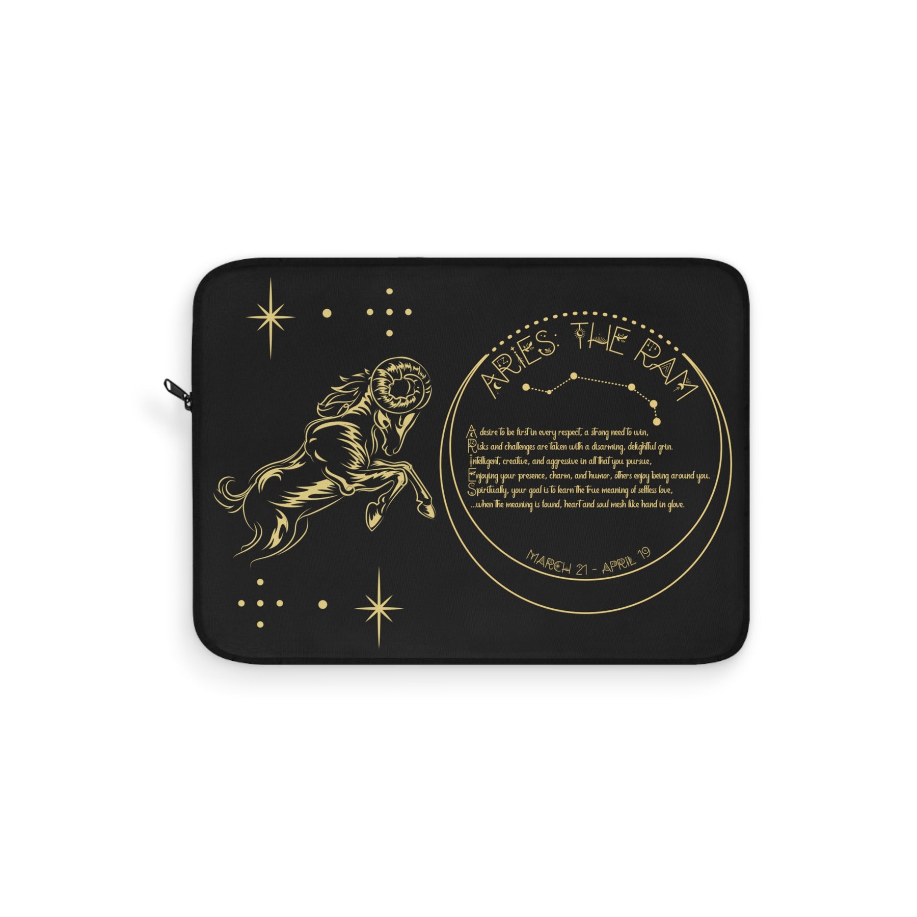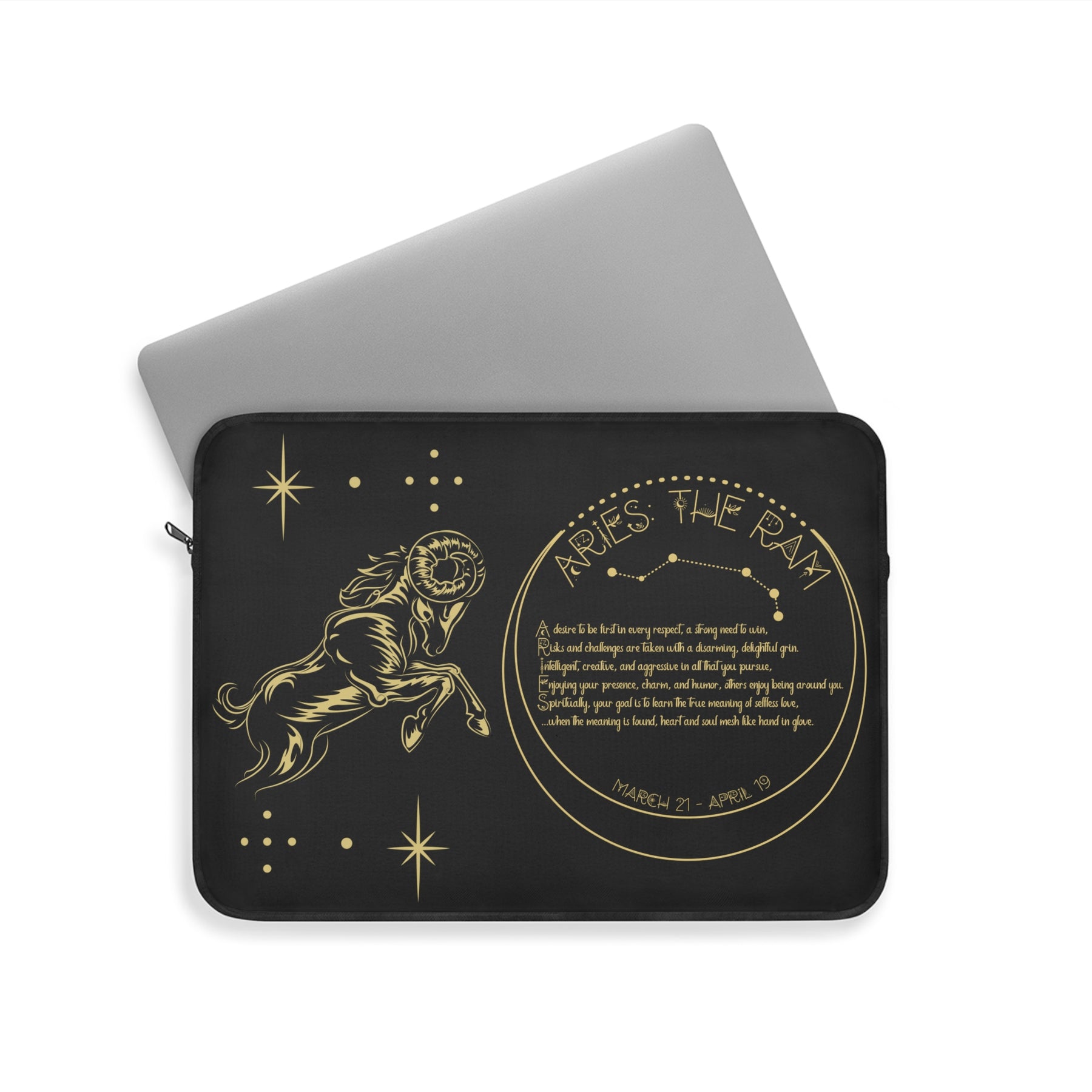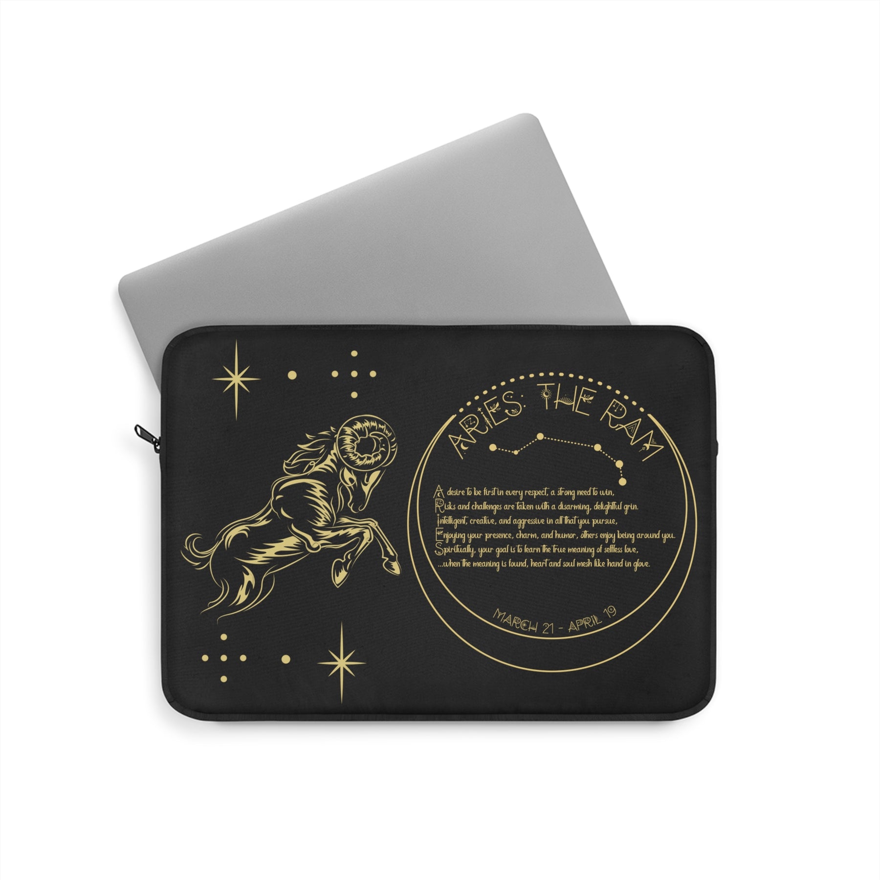Refresh your tech style with Written in the Stars' laptop sleeves. Each sleeve features an acrostic poem spelling out Aries, along with its traits and spiritual goal, making it a thoughtful choice for students, professionals, and creatives. The lightweight design keeps your laptop safe without adding bulk and helps protect against dust, dirt, and small bumps. These sleeves also make great gifts for holidays, graduations, or special events. Each one has a sturdy plastic zipper for easy access and is made from 100% polyester to keep its shape. To clean, spot clean with warm water and dish soap. For stubborn spots, use a soft-bristle brush.