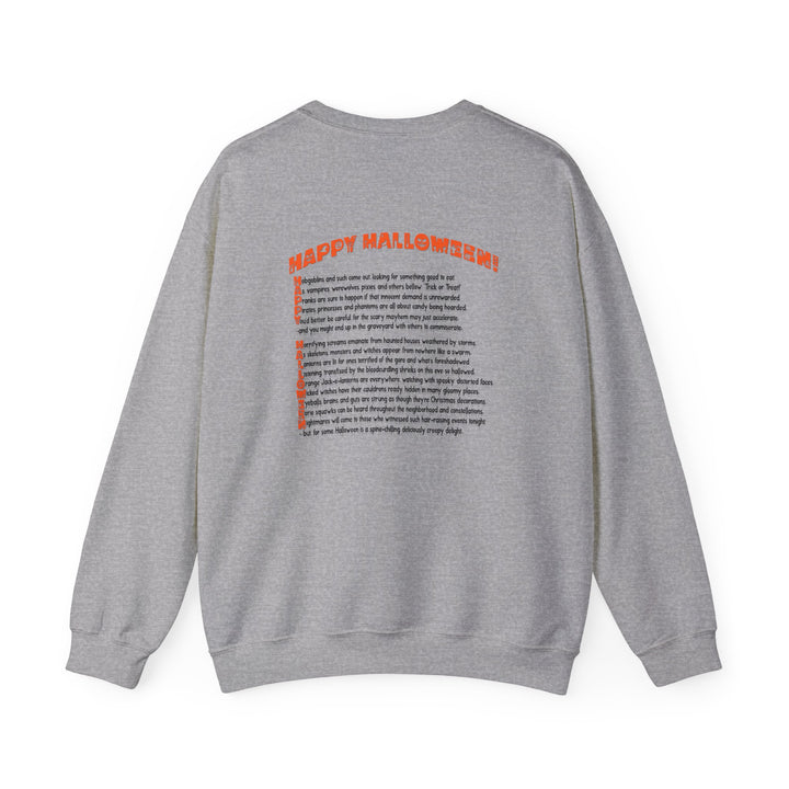 This It’s Just a Phrase acrostic poem sweatshirt features an adorable Gnome holding a pumpkin on the front, with an acrostic poem that spells out Happy Halloween on the back. The unique font and poem will undoubtedly spark a conversation! This sweatshirt is comfortable, durable, and adds a playful touch to the Halloween season. Plus, the amazing font really stands out!