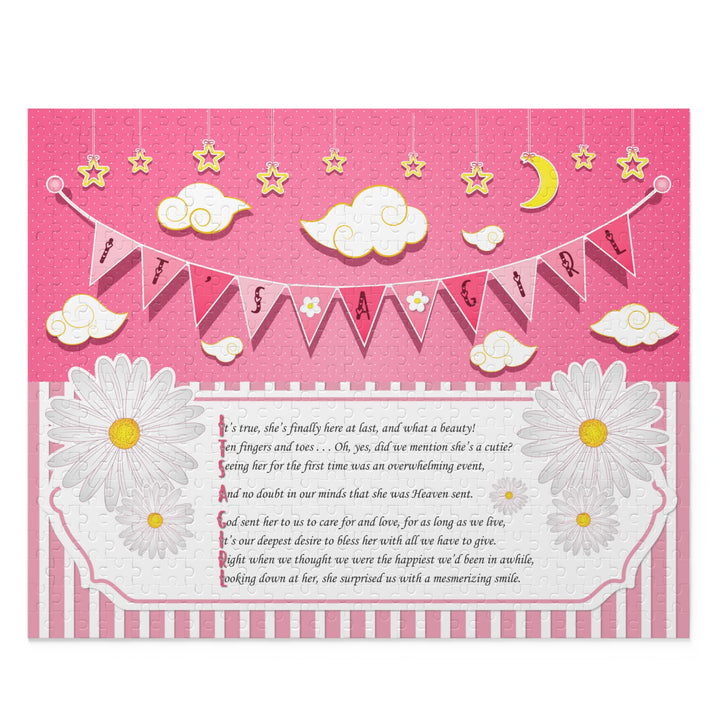 Take a look at our "It's Just a Phrase" "It's a Girl!" Puzzle from Moments in Rhyme. It’s a fun activity for your baby shower that guests can enjoy throughout the party. They’re sure to love it, and it also makes a lovely keepsake or a gift for another new mom. The puzzle is made from sturdy board with a glossy finish and comes in a gift-ready box that highlights the design. Choose from several sizes.