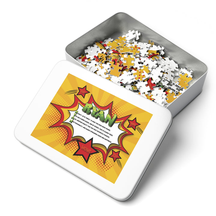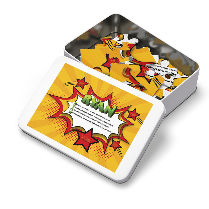Namesakes from Moments in Rhyme creates acrostic poem puzzles that make thoughtful gifts for birthdays, holidays, Easter, or any special day. This puzzle has a comic-style look and a fun font. The poem shares the meaning and origin of the chosen name. Carefully crafted, this keepsake is designed to be a lasting memory. Let us know the name you'd like, and we’ll take care of the rest. The puzzle is built from sturdy puzzle board with a glossy finish and comes in a tin box ready for gifting. The design may change slightly based on the number of letters in the name.