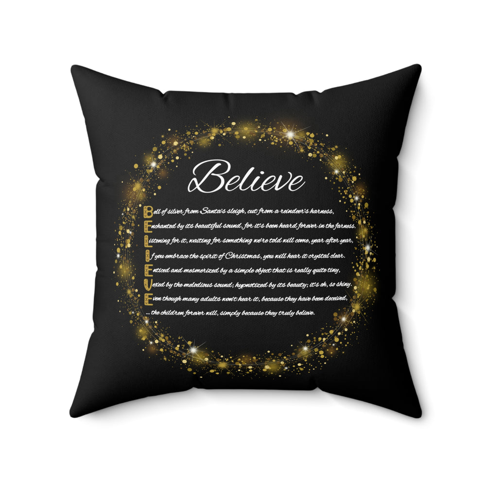 Holiday Pillow from "Learn, Lead, Believe" Collection with Acrostic Poem Spelling out "Believe" . Christmas Decor or Gift.