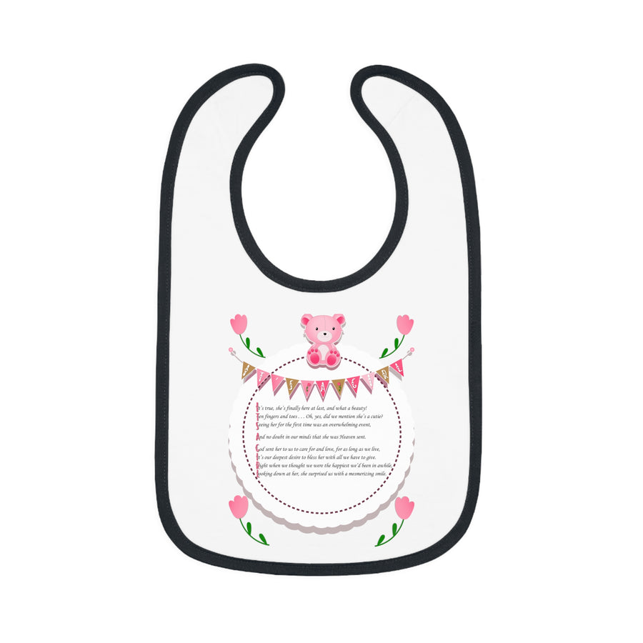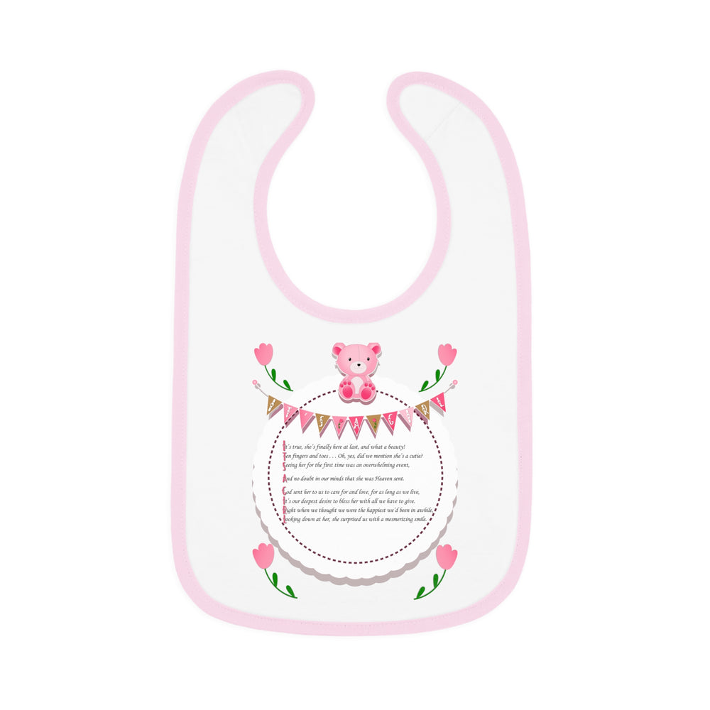 "It's a Girl" Acrostic Poem Contrast Trim Jersey Bib - Teddy Bear and Roses