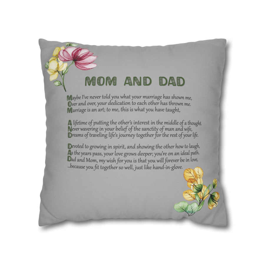 "Mom and Dad" Acrostic Poem Grey Pillow Cover