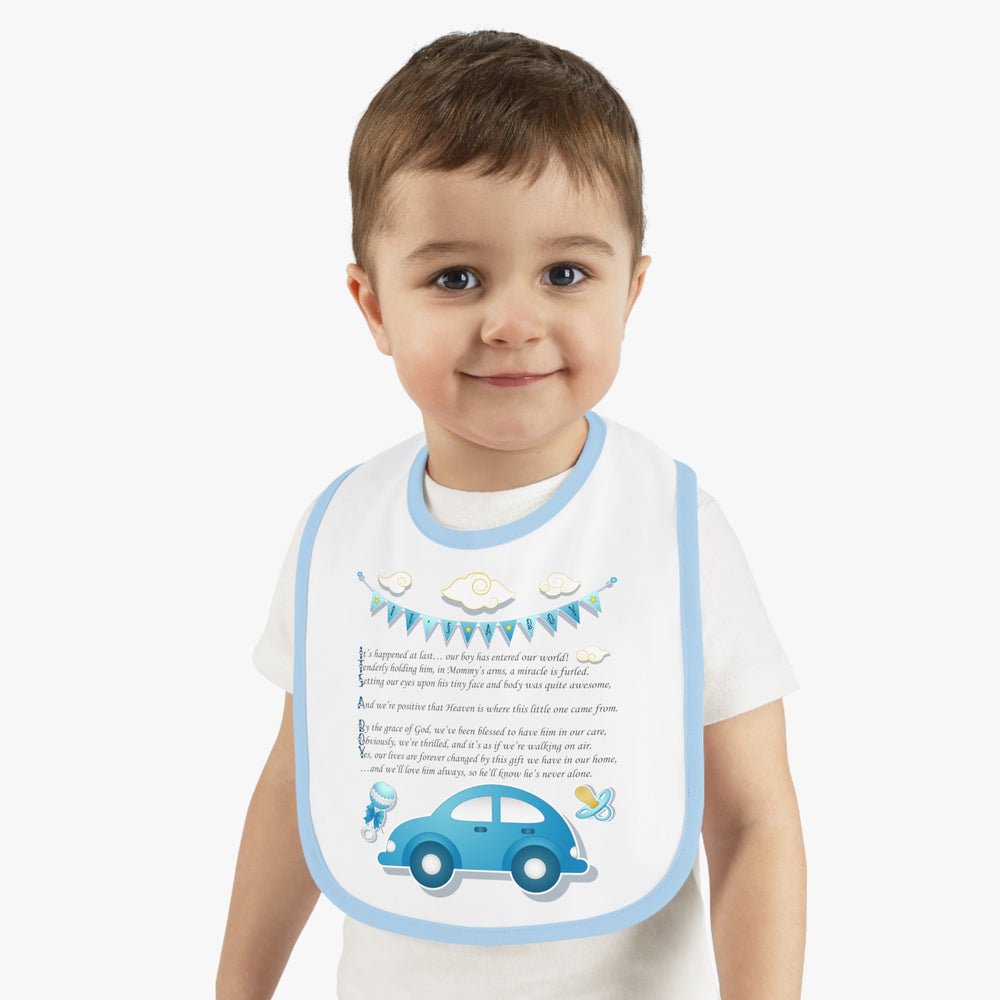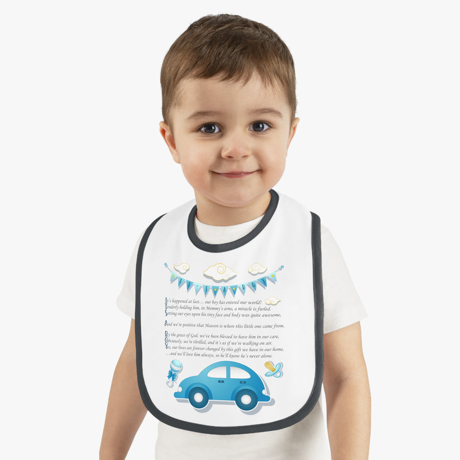 "It's a Boy" Acrostic Poem Contrast Trim Jersey Bib - Contrast Trim Jersey Bib - Banner-Car