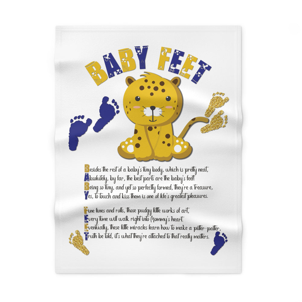 Baby Feet Acrostic Poem Blanket - Blue-Gold- Baby Leopard