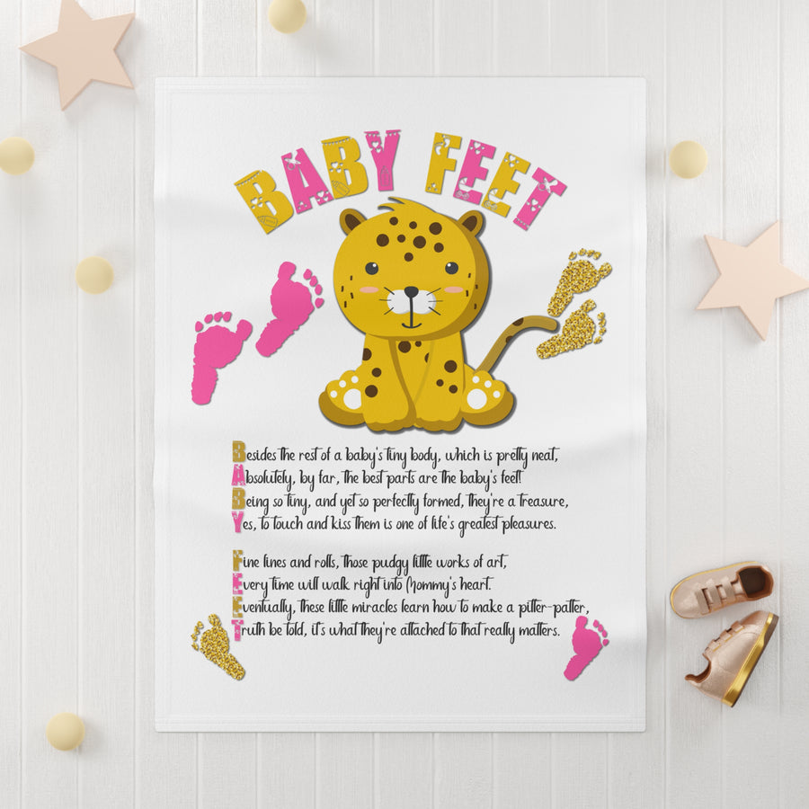 Baby Feet Acrostic Poem Blanket - Pink-Gold- Baby Leopard