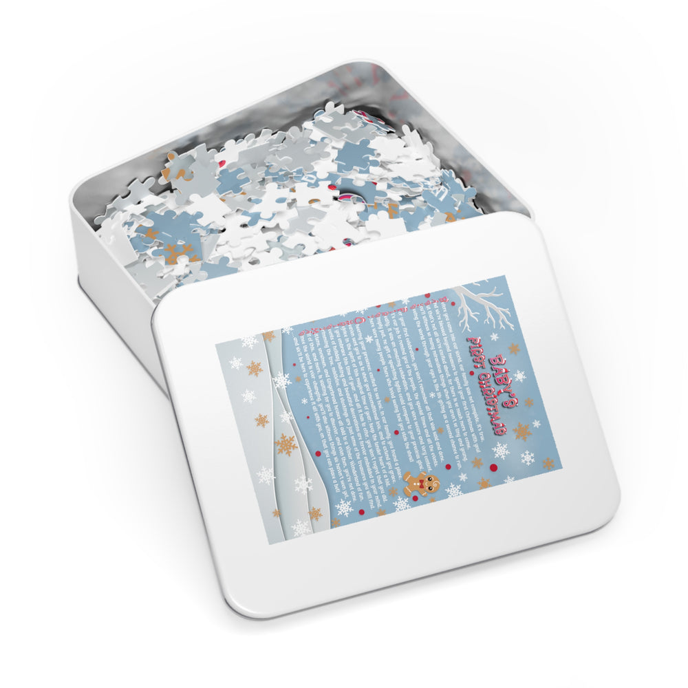 Baby's First Christmas Acrostic Poem Jigsaw Puzzle - Penguins-Christmas Items Font - Tin Box