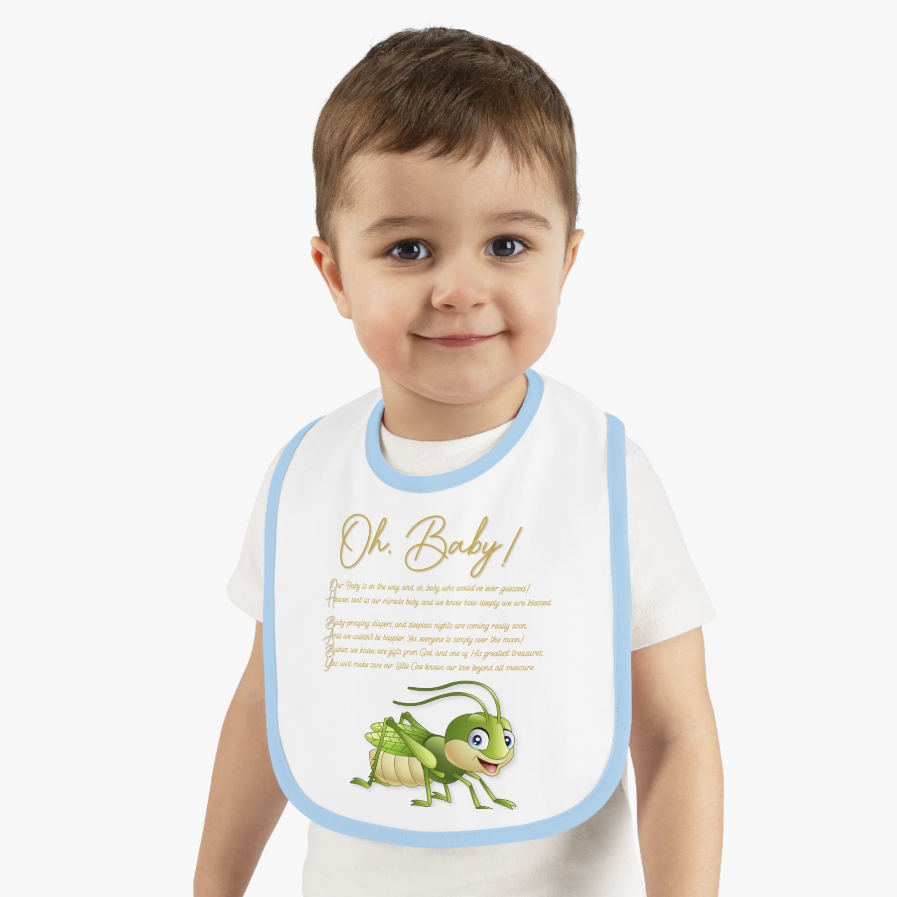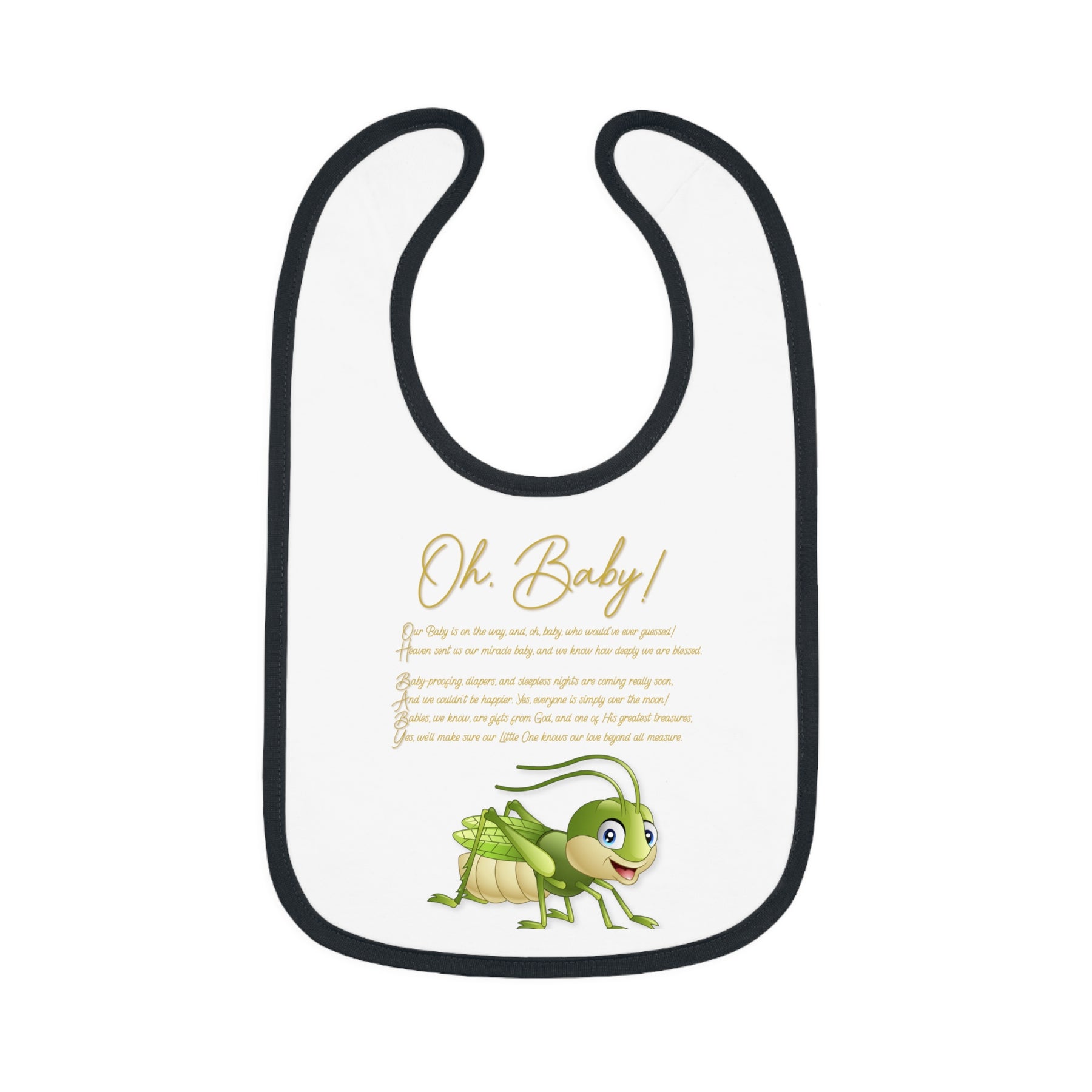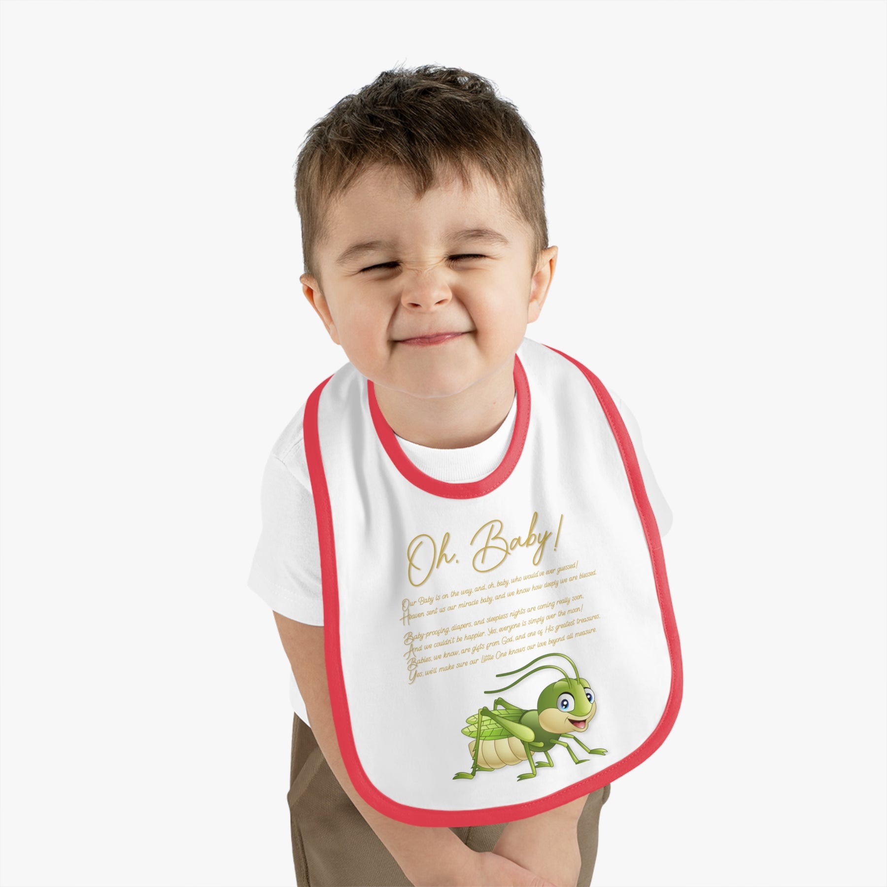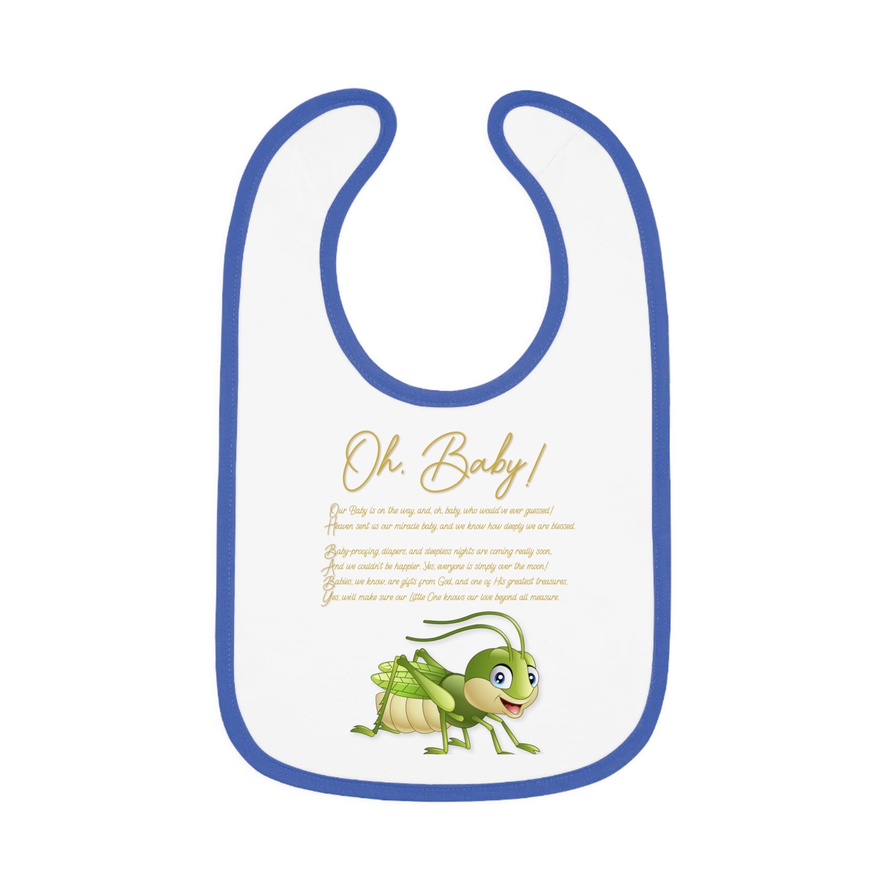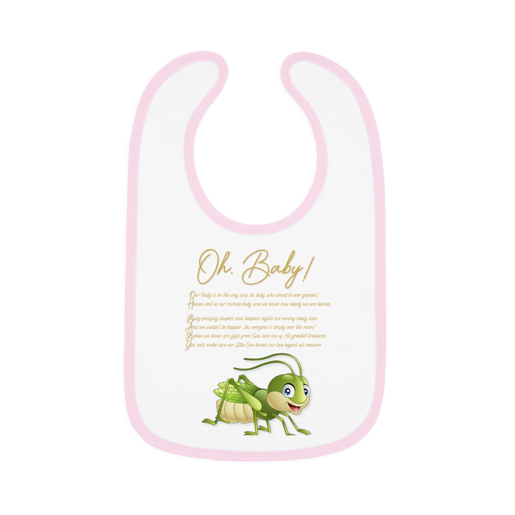 Mealtimes just became more fun with our "Baby Steps" baby bib collection. This one has an acrostic poem that spells out, "Oh, Baby!" Featuring a 100% Ring-spun Cotton fabric for delicate softness, an original Velcro® closure for a secure fit during meals, they are as adorable as they are comfy. Plus, the contrast self-fabric binding makes for a seamless look.