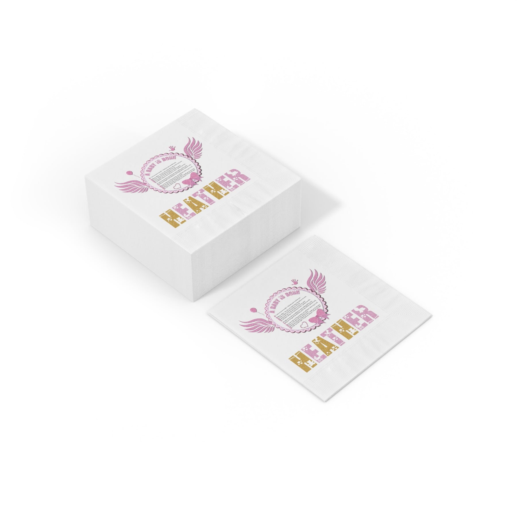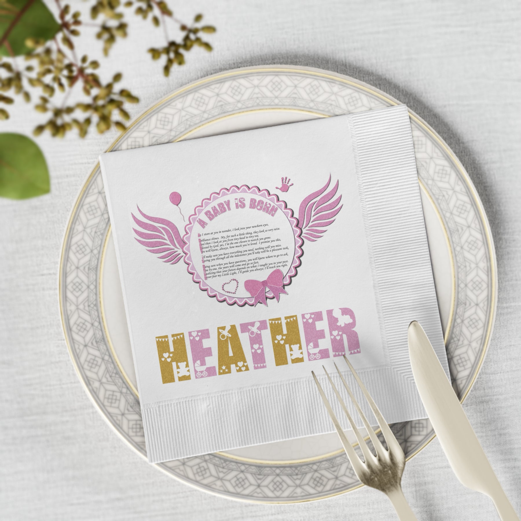 A Baby is Born Baby Shower Coined Napkins - Pink Wings - Personalized