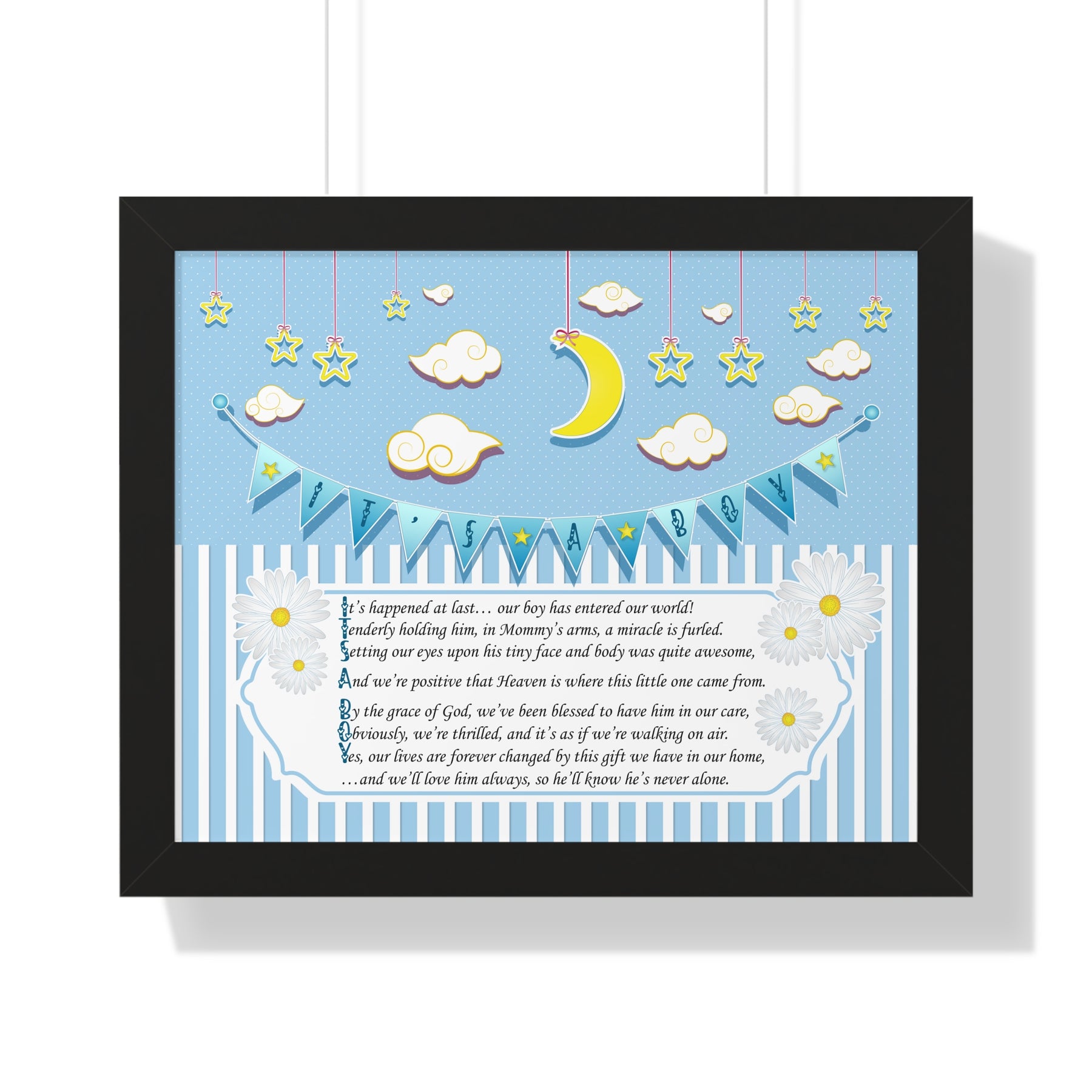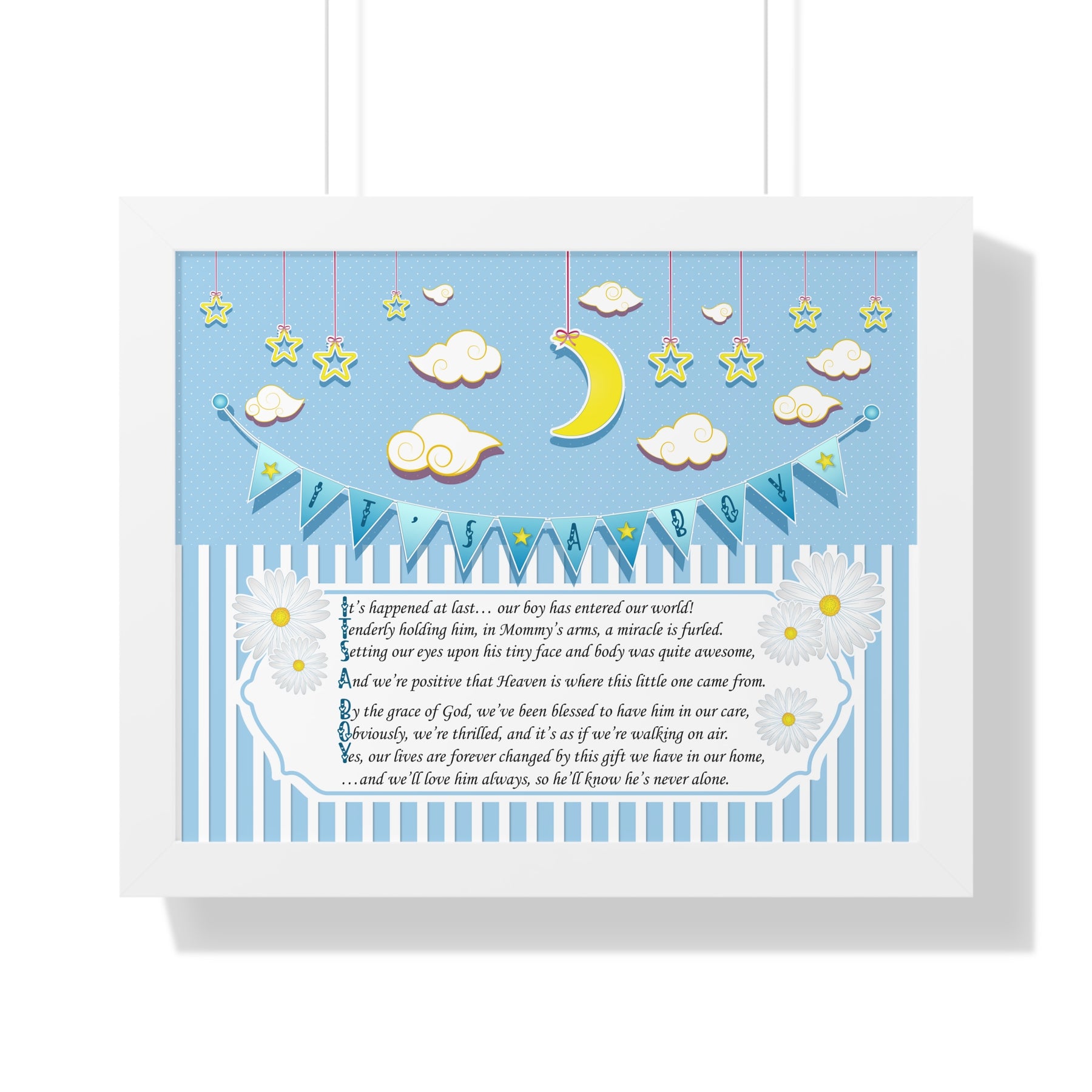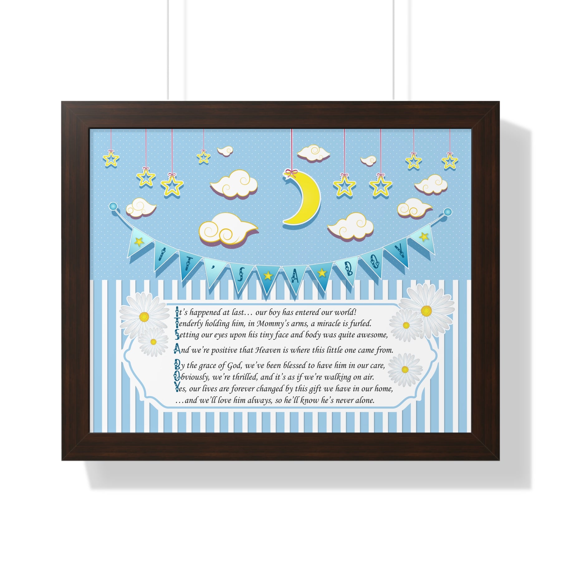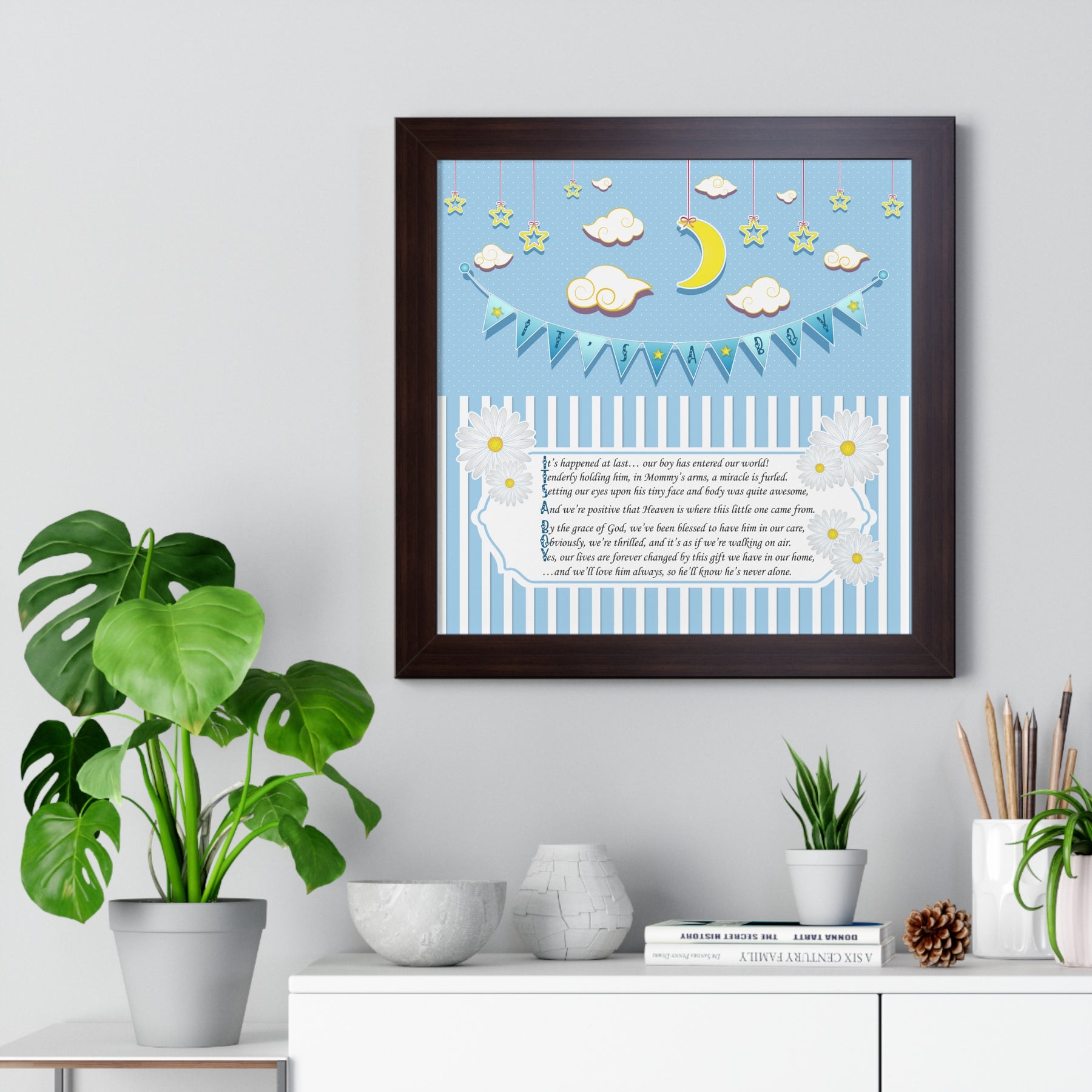Experience the magic of Baby Steps by Moments in Rhyme. Our personalized acrostic framed prints make for perfect nursery decor – charming graphics and one-of-a-kind fonts included. Spells out "It's a Boy" with this one and capture the preciousness of baby boys in a sweet sentiment.