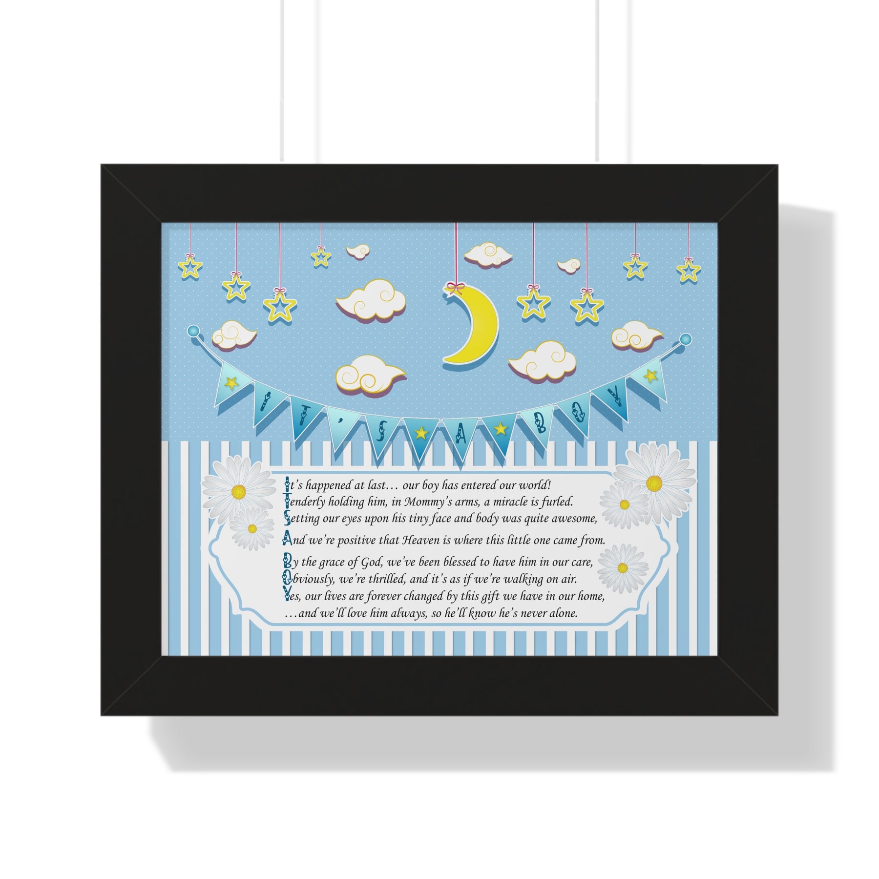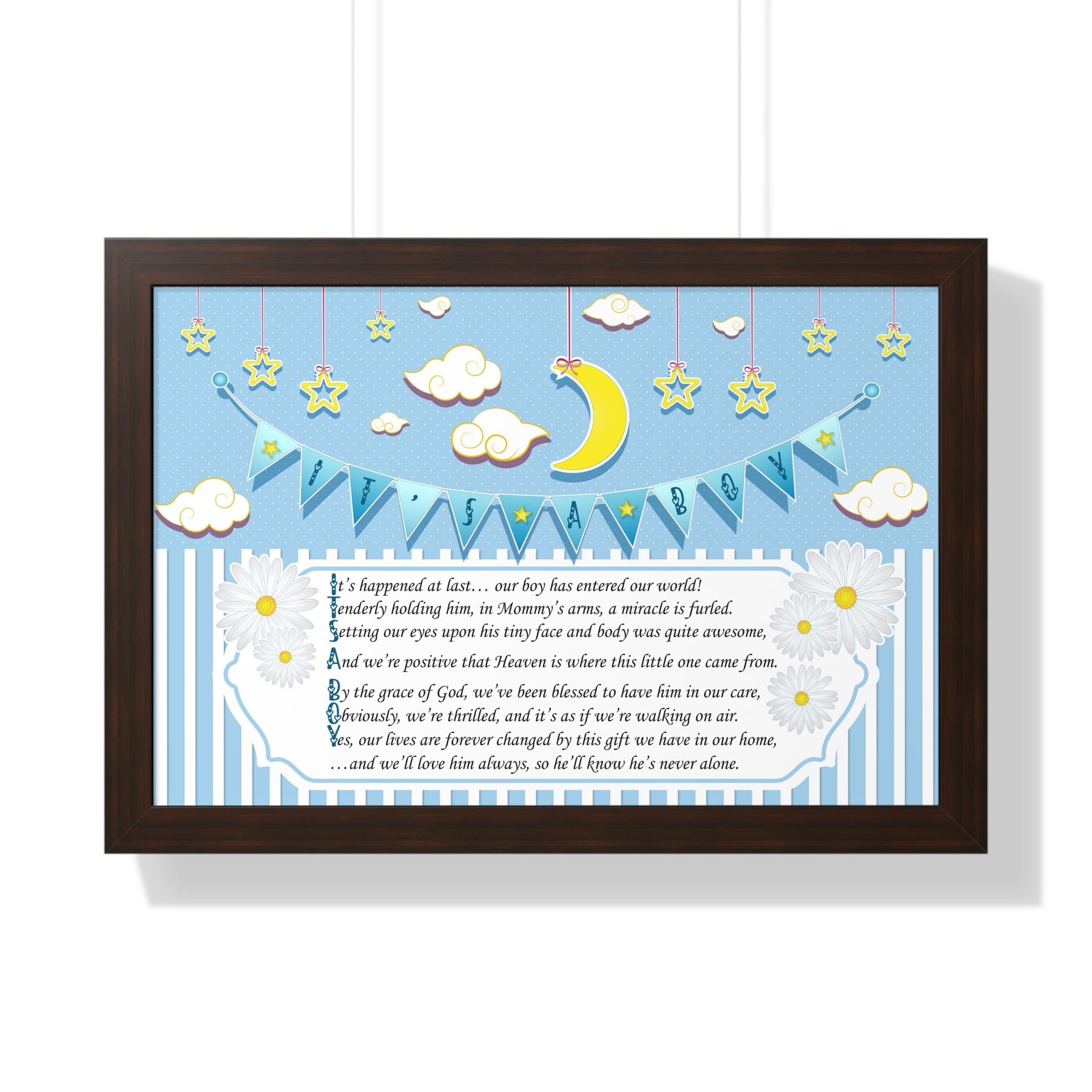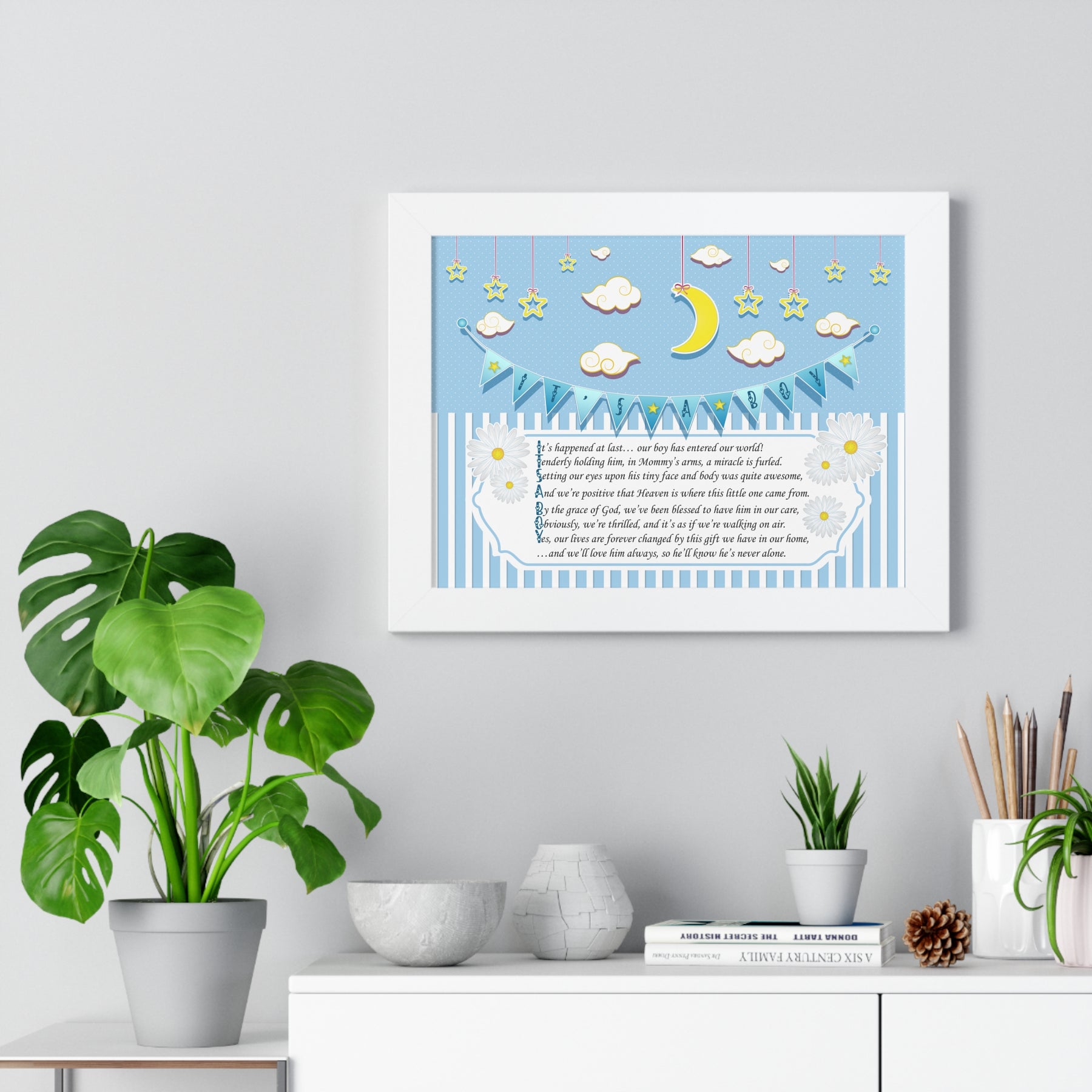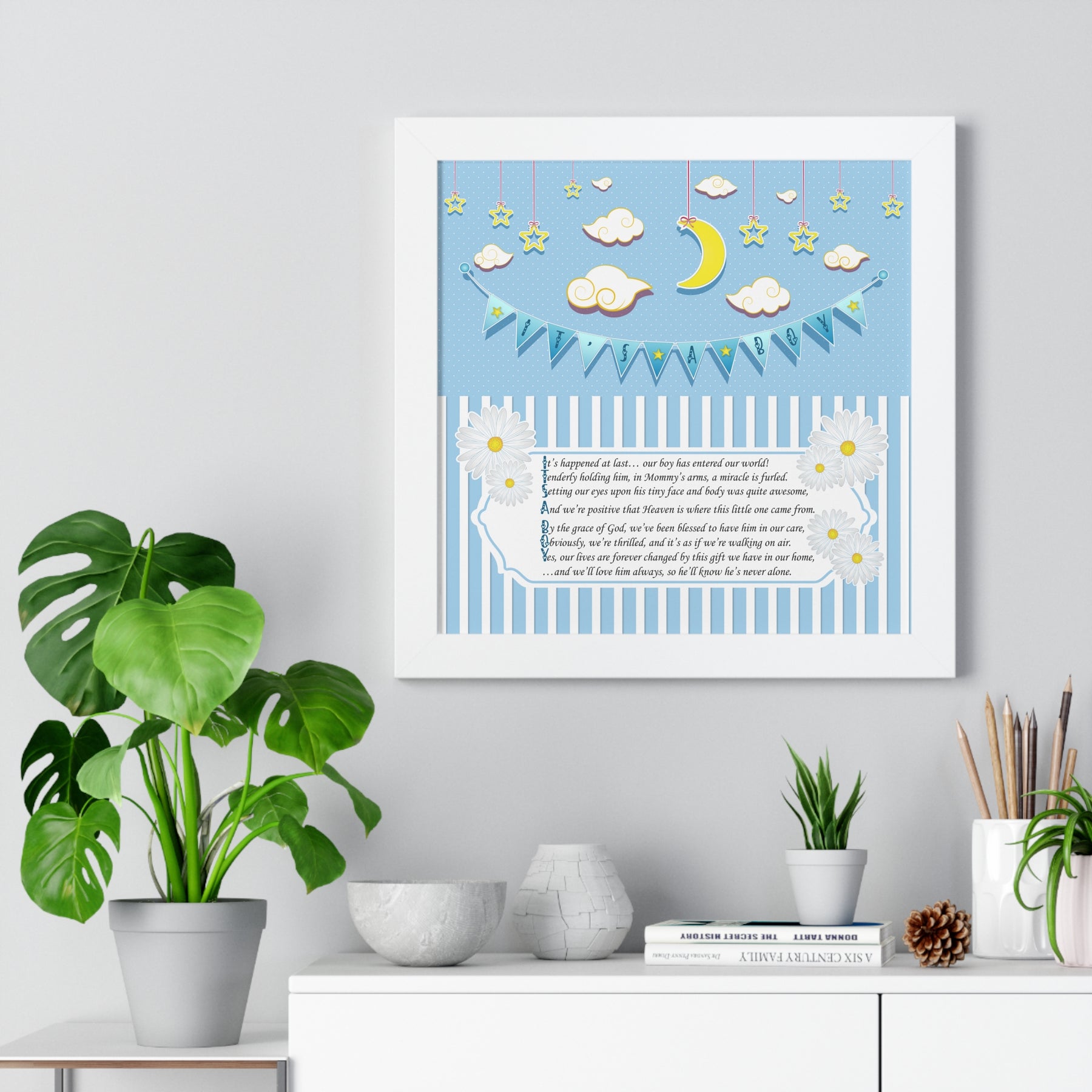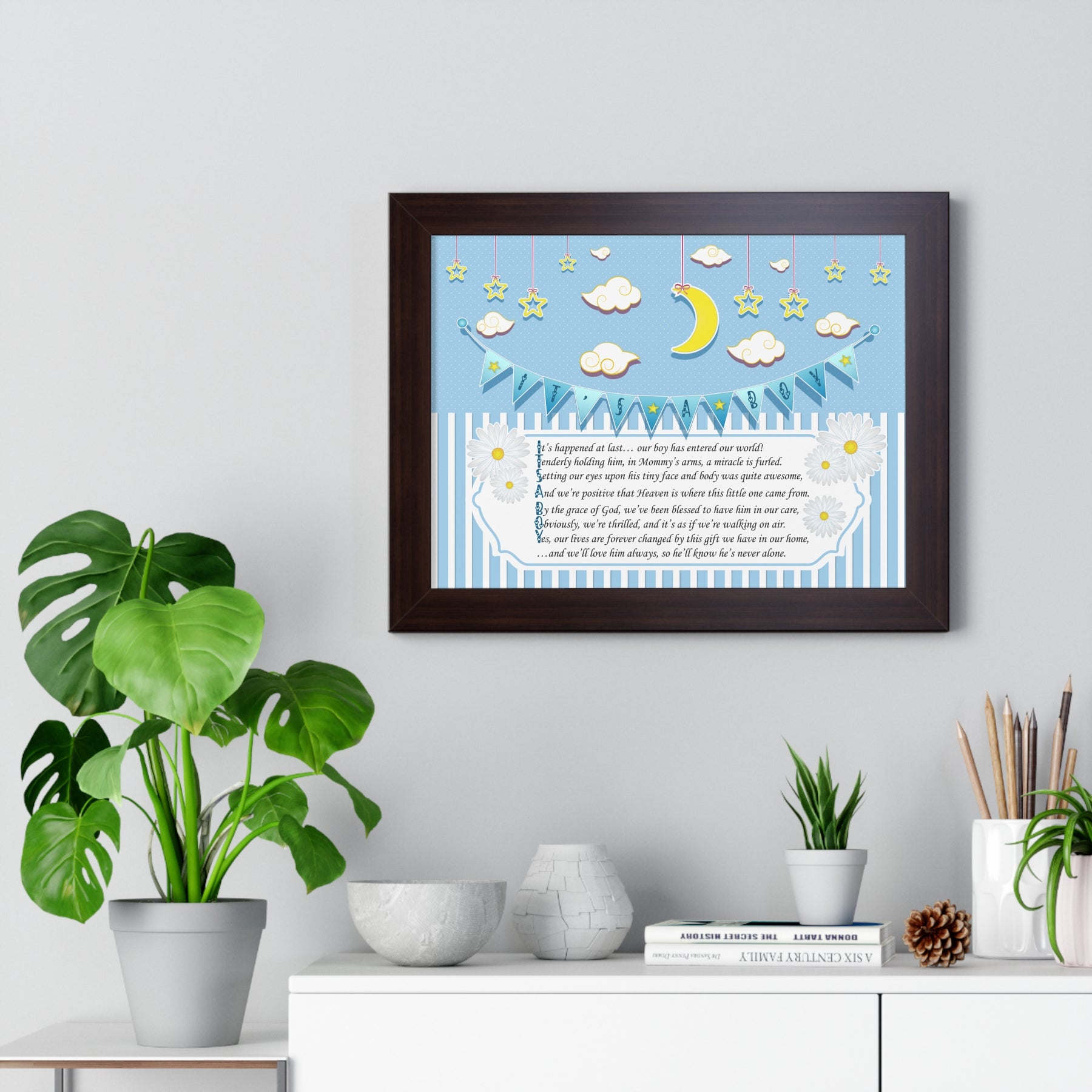 Experience the magic of Baby Steps by Moments in Rhyme. Our personalized acrostic framed prints make for perfect nursery decor – charming graphics and one-of-a-kind fonts included. Spells out "It's a Boy" with this one and capture the preciousness of baby boys in a sweet sentiment.