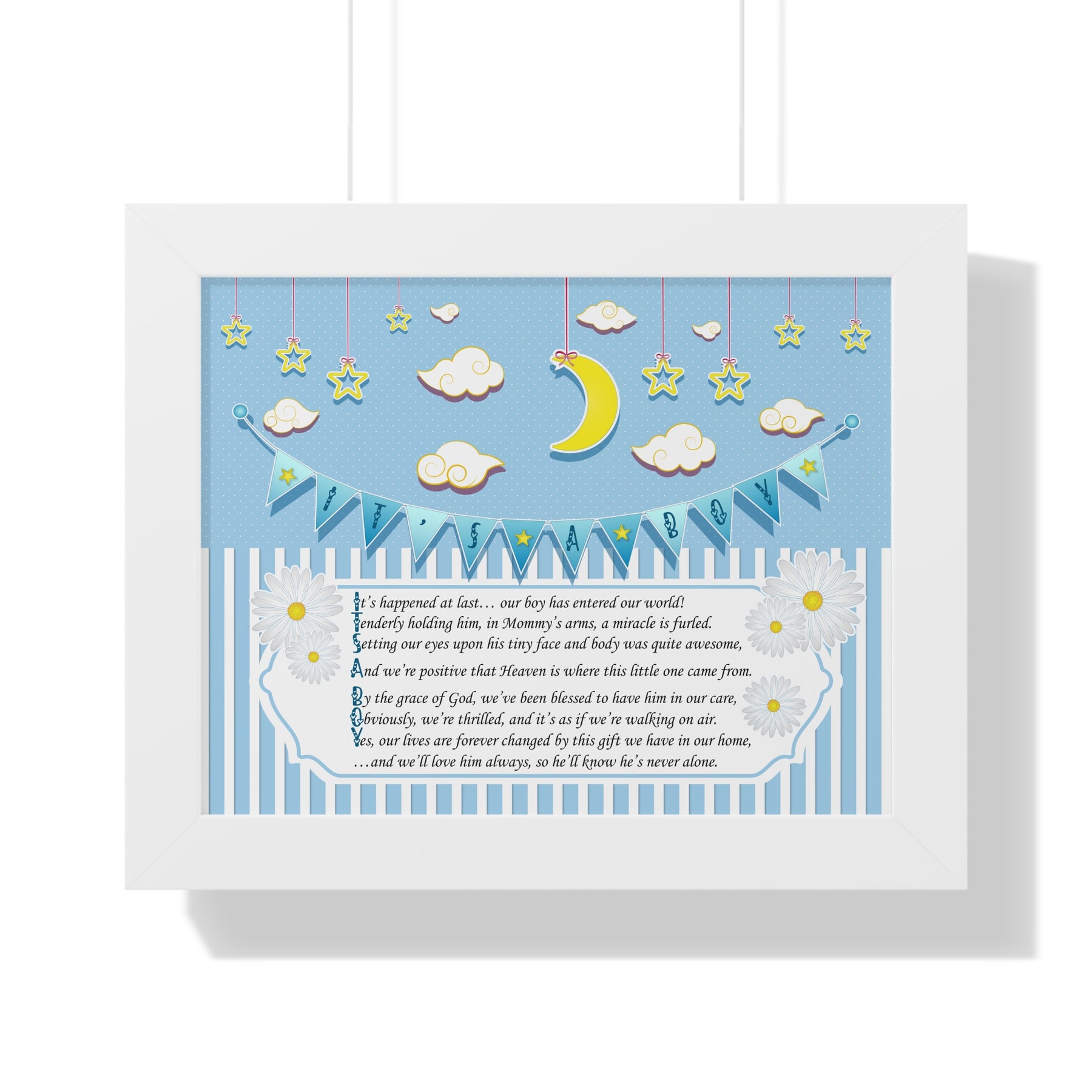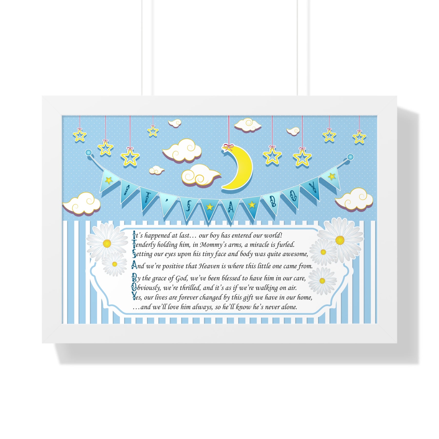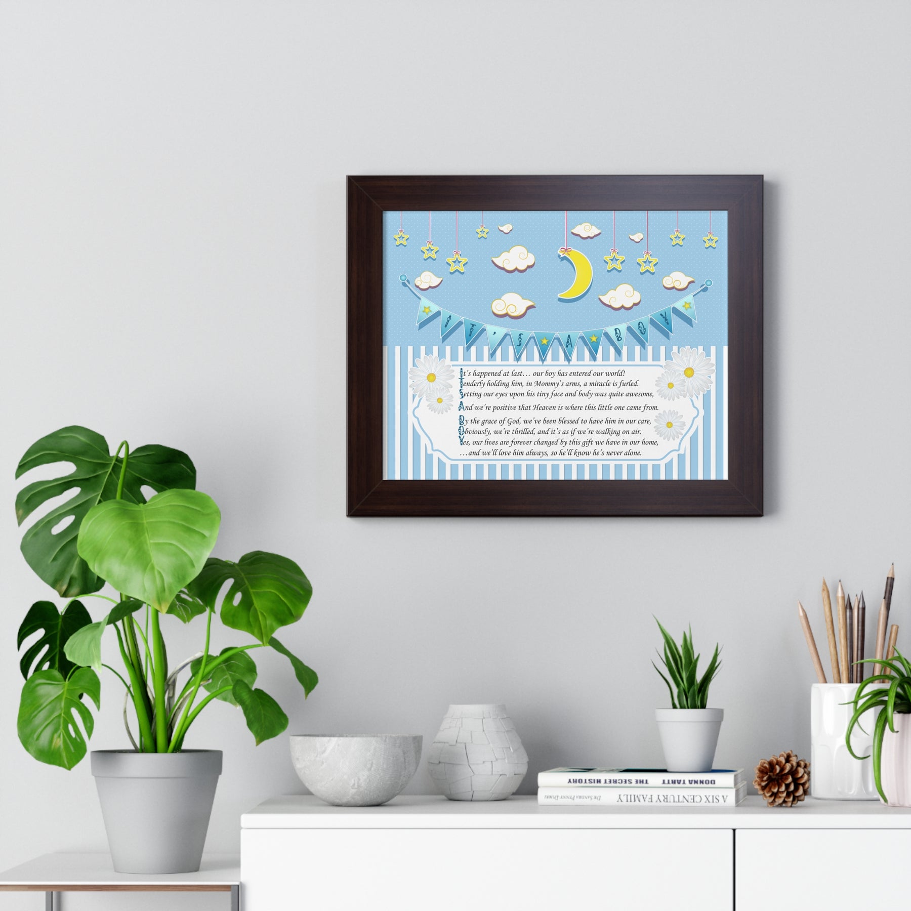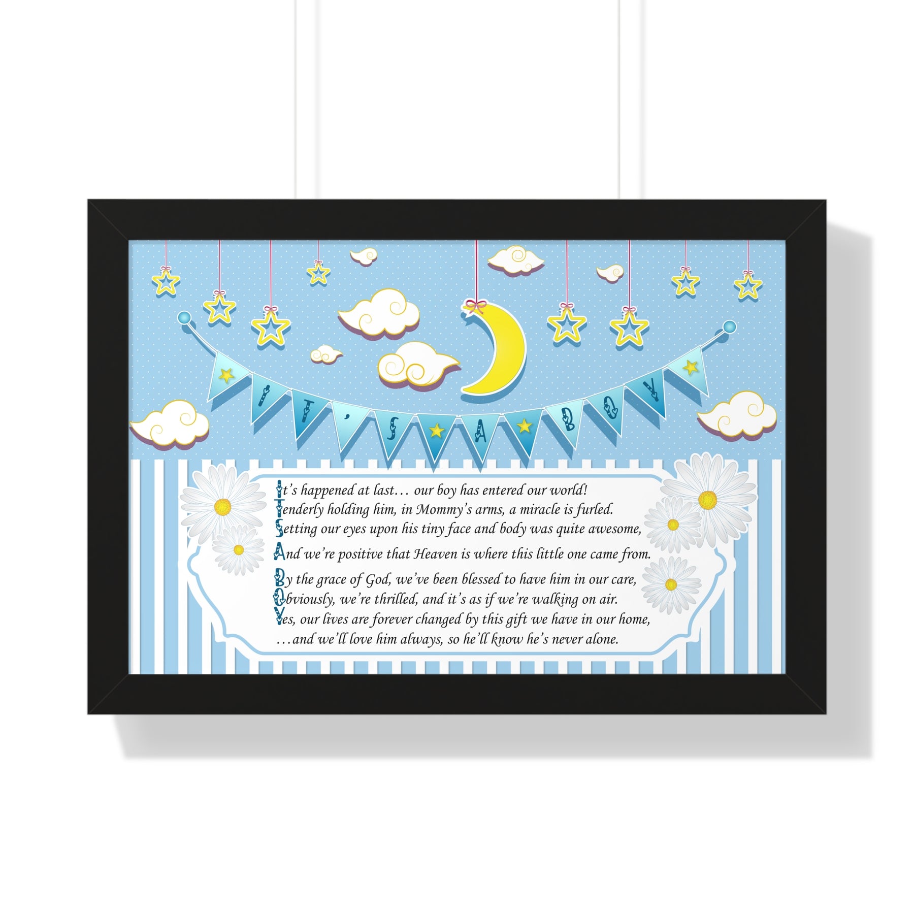 Experience the magic of Baby Steps by Moments in Rhyme. Our personalized acrostic framed prints make for perfect nursery decor – charming graphics and one-of-a-kind fonts included. Spells out "It's a Boy" with this one and capture the preciousness of baby boys in a sweet sentiment.