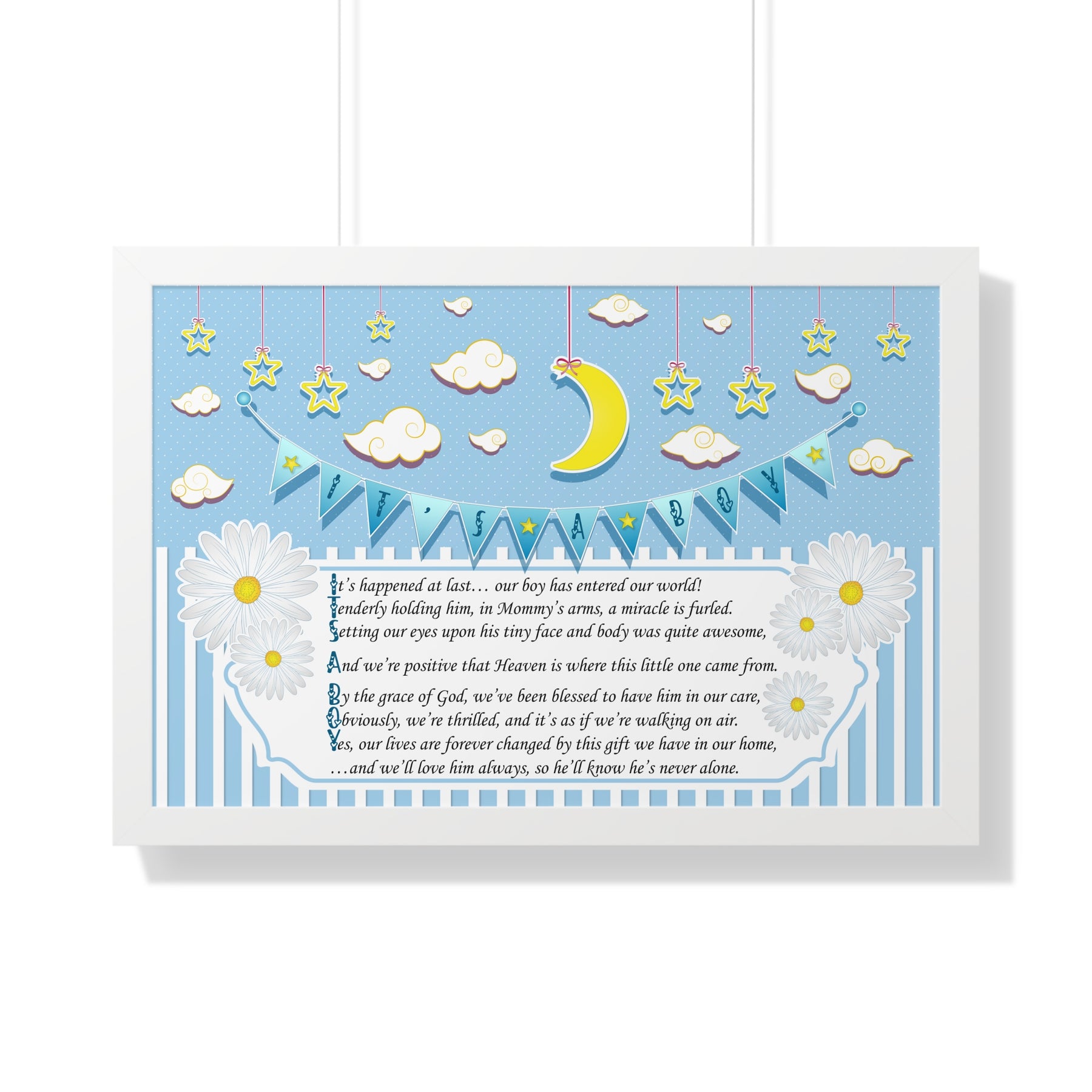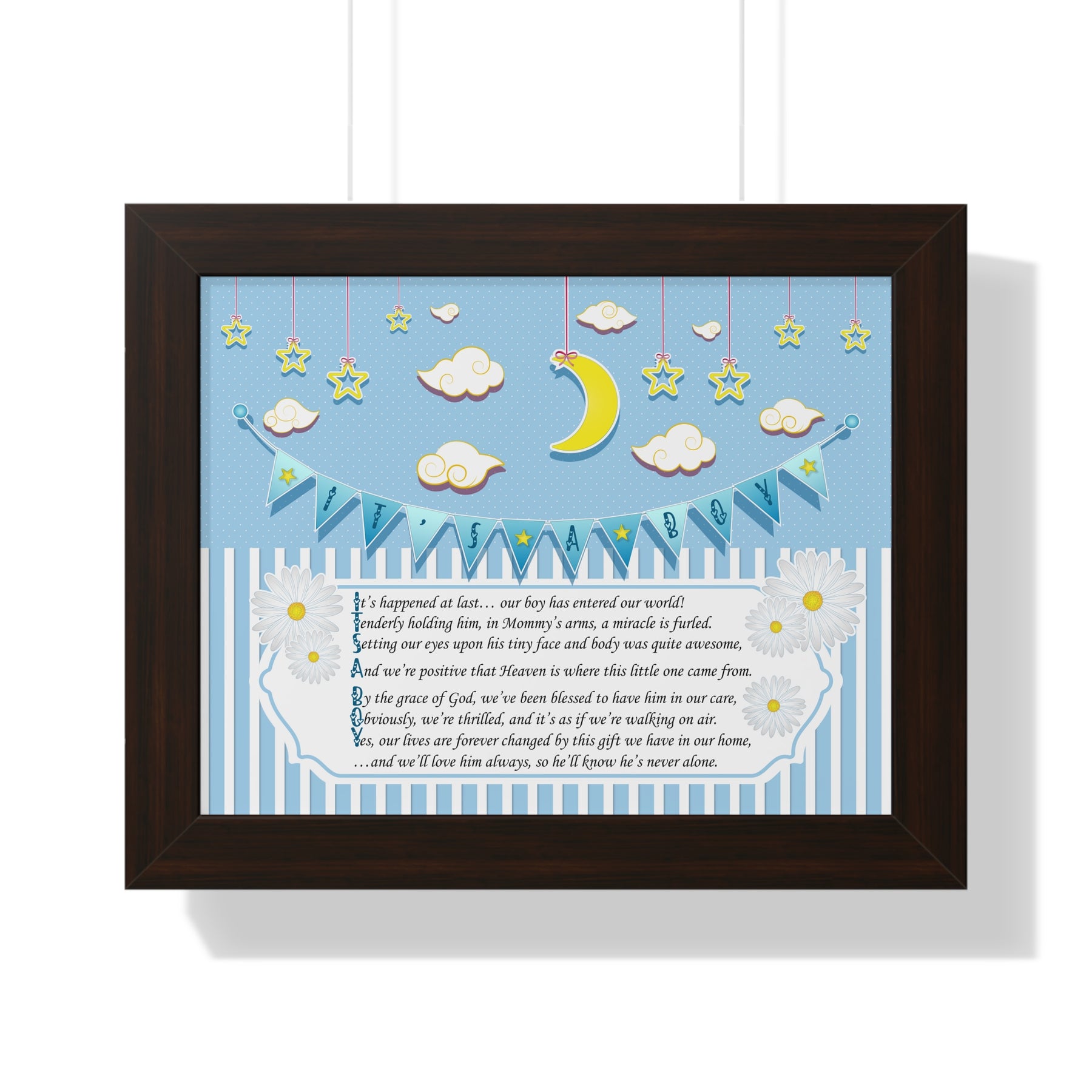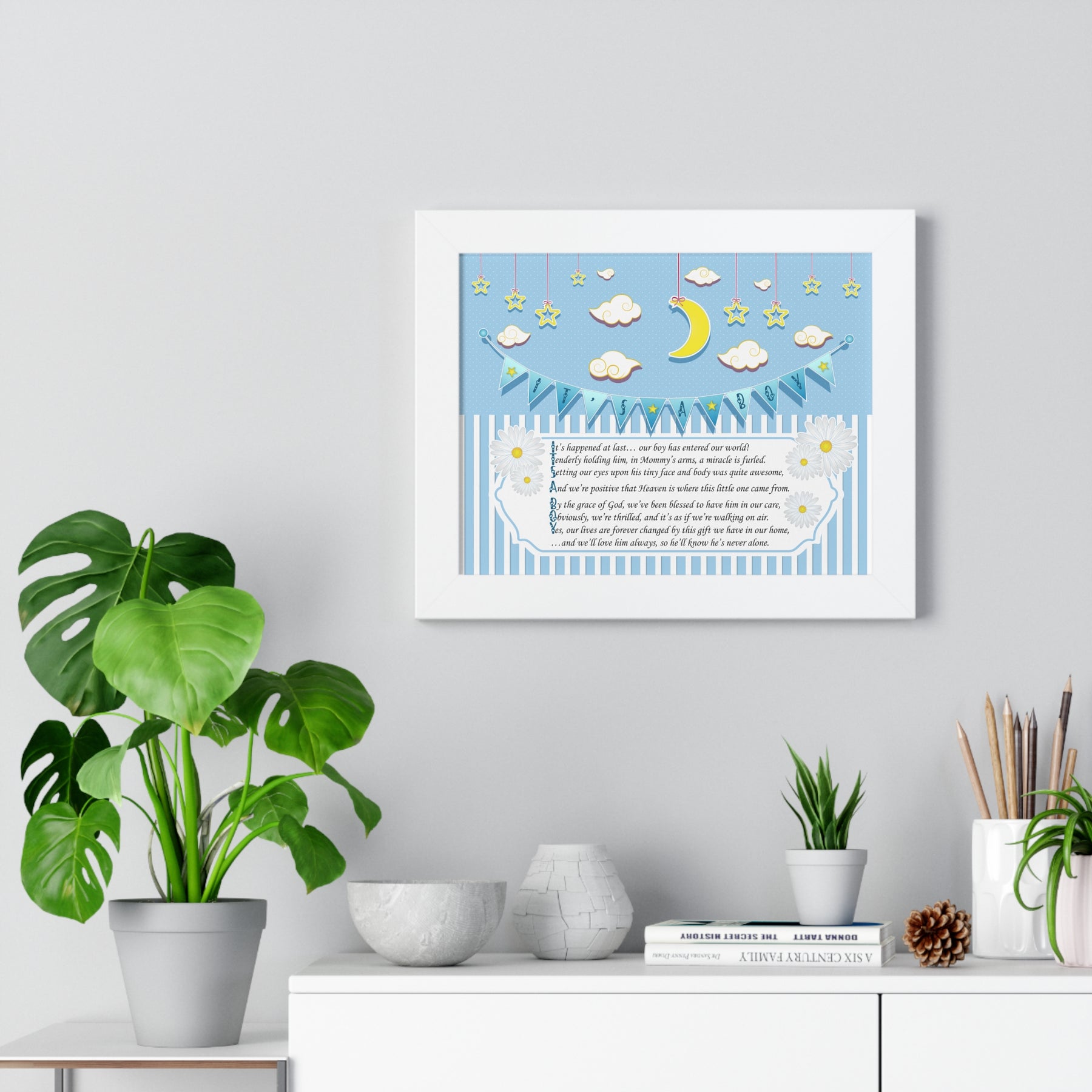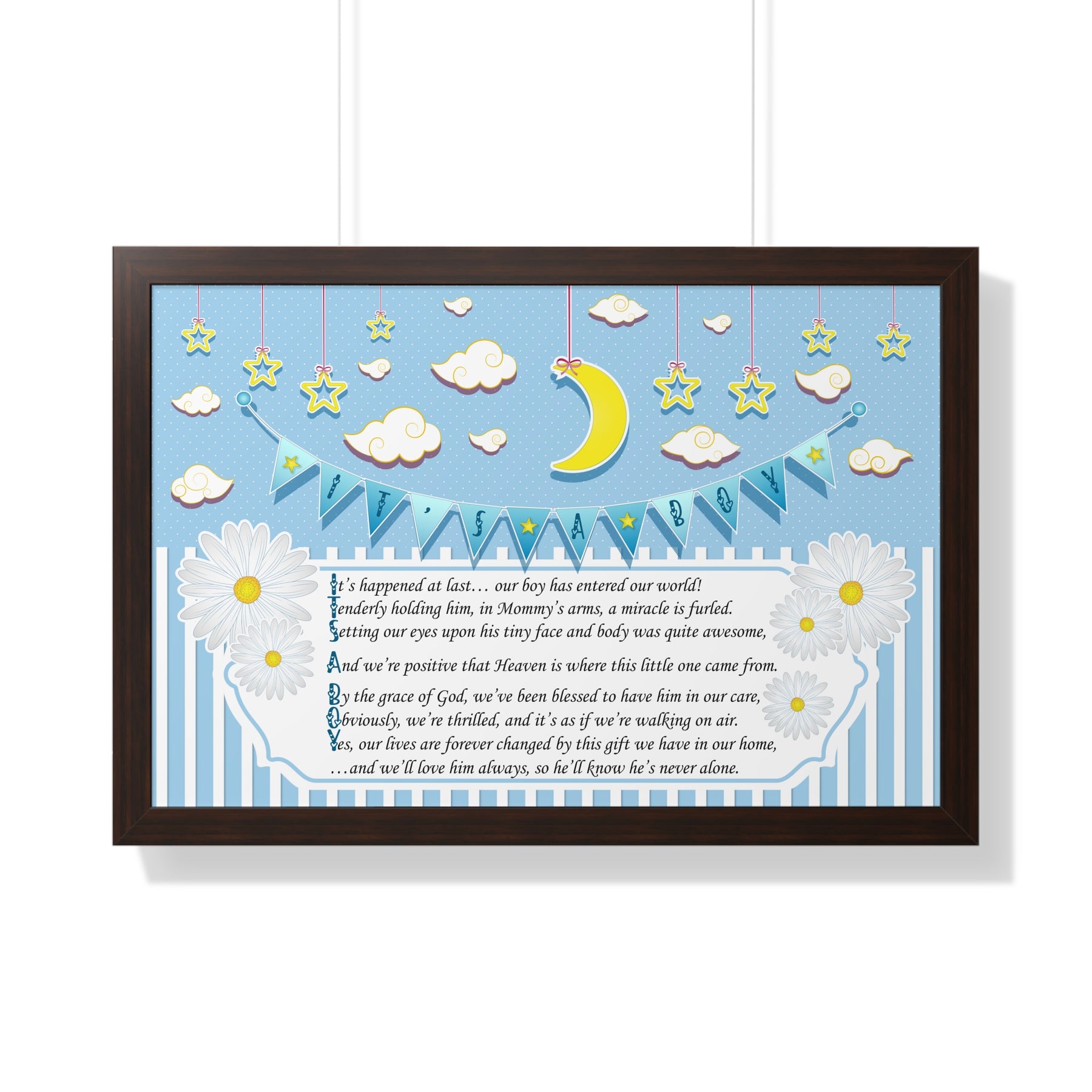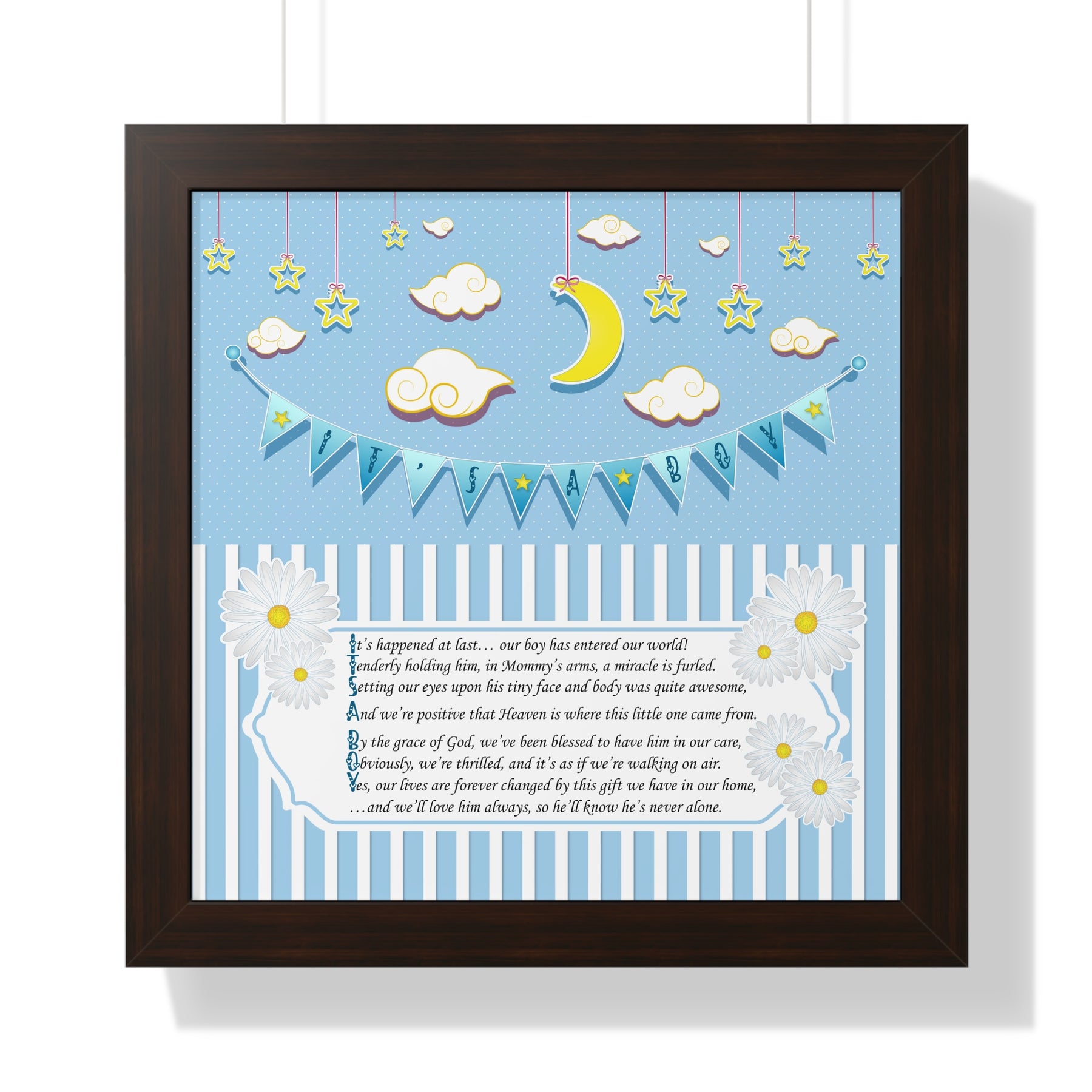 Experience the magic of Baby Steps by Moments in Rhyme. Our personalized acrostic framed prints make for perfect nursery decor – charming graphics and one-of-a-kind fonts included. Spells out "It's a Boy" with this one and capture the preciousness of baby boys in a sweet sentiment.