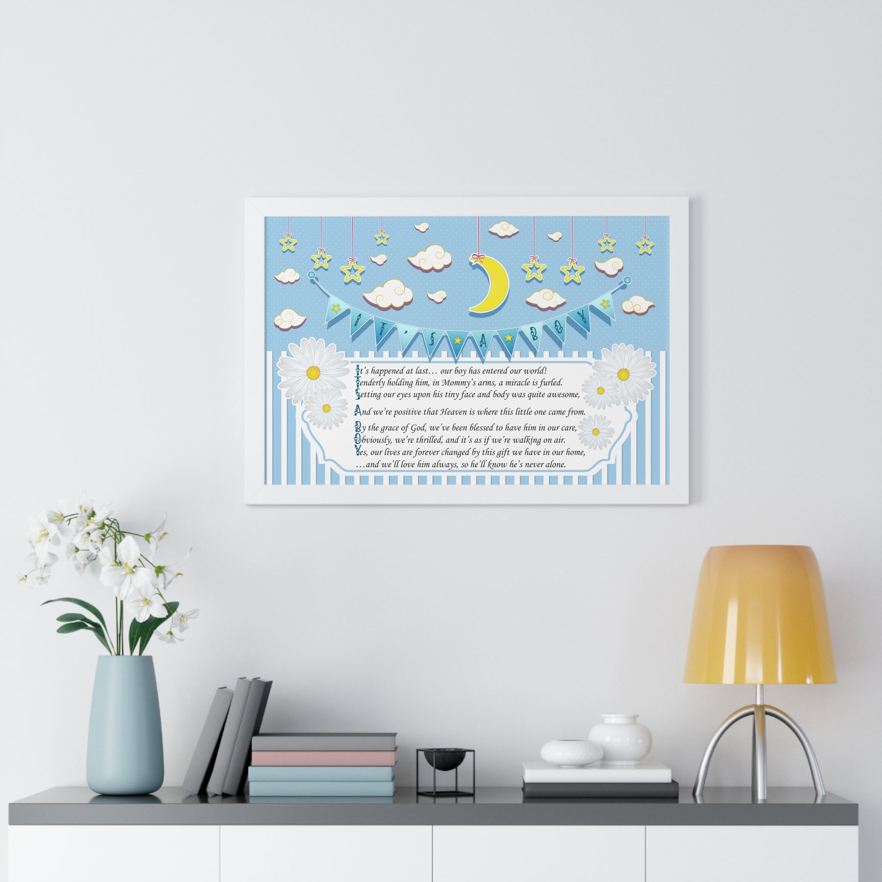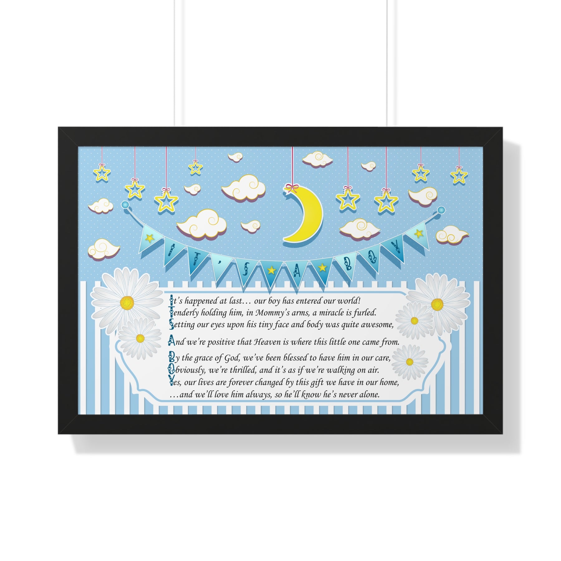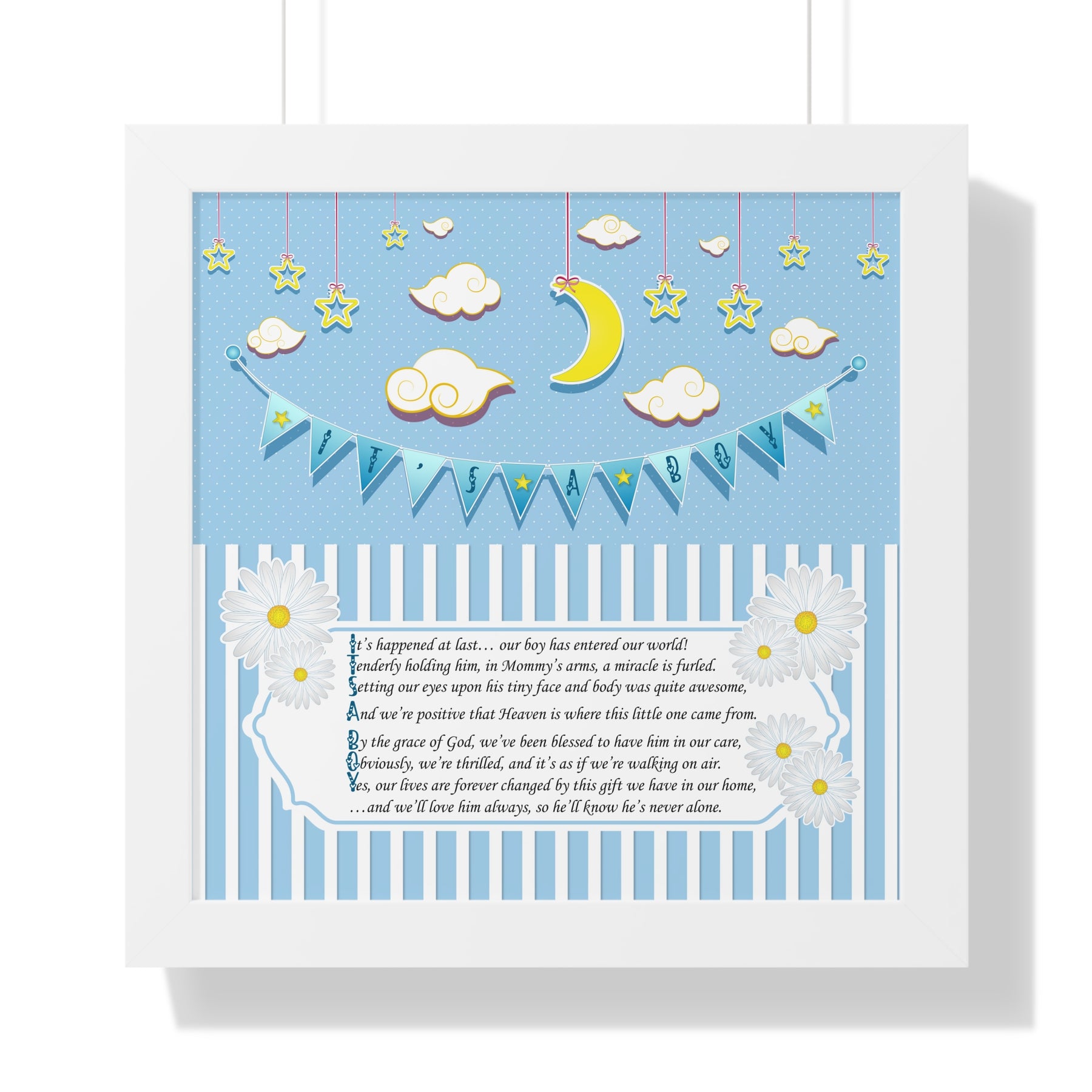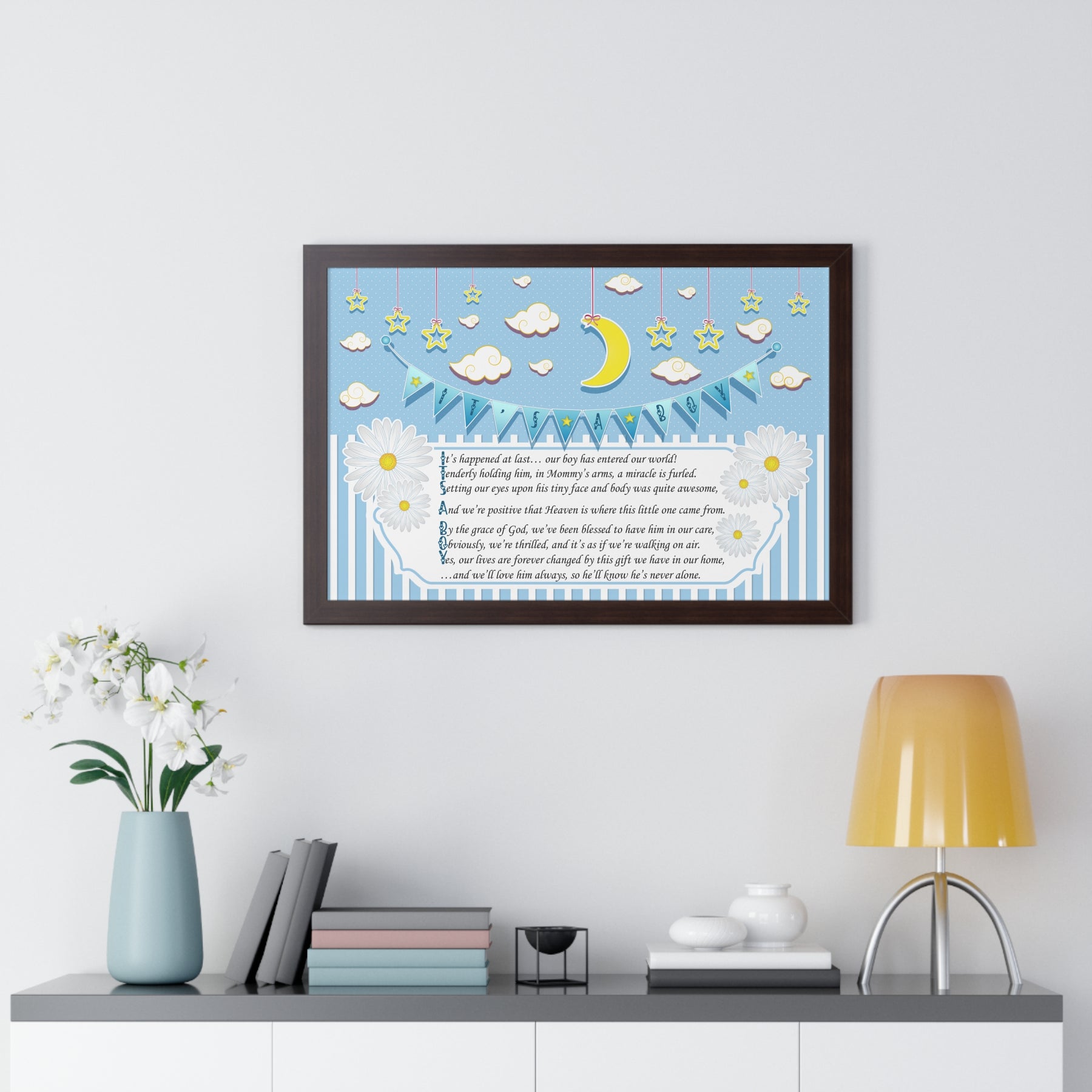 Experience the magic of Baby Steps by Moments in Rhyme. Our personalized acrostic framed prints make for perfect nursery decor – charming graphics and one-of-a-kind fonts included. Spells out "It's a Boy" with this one and capture the preciousness of baby boys in a sweet sentiment.