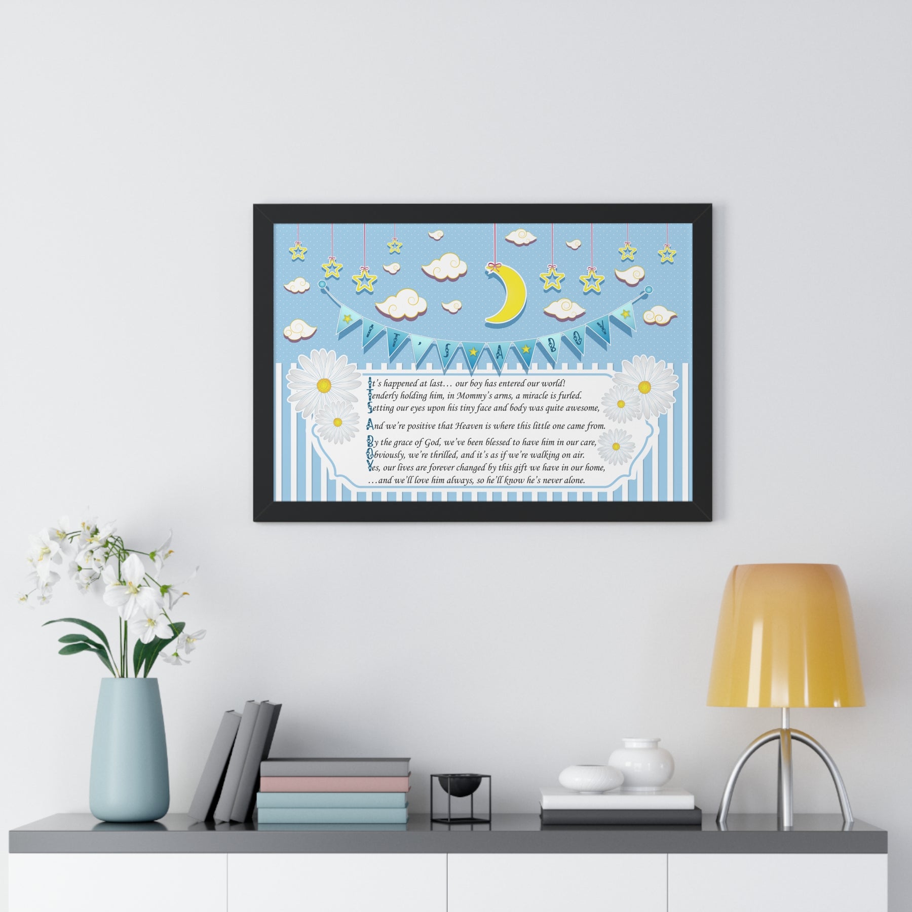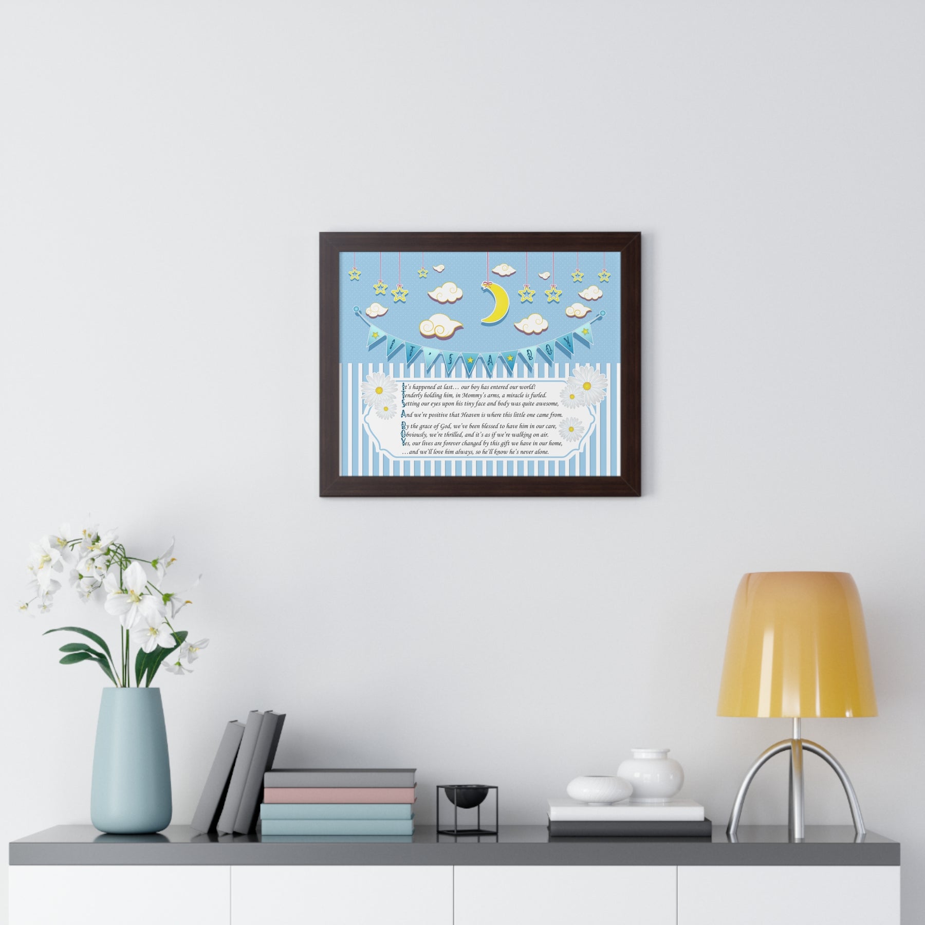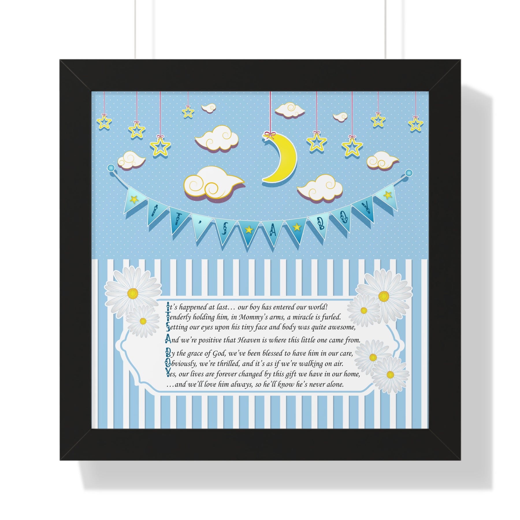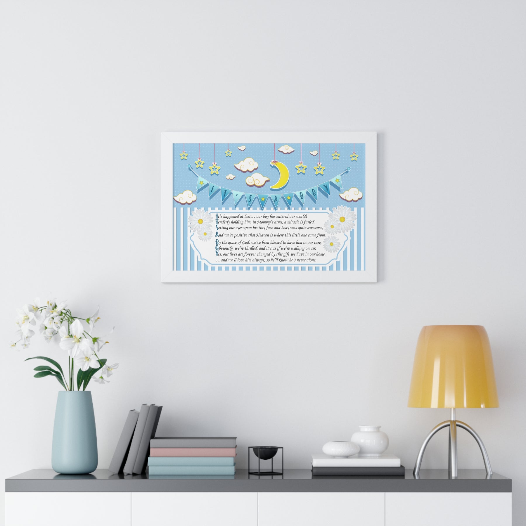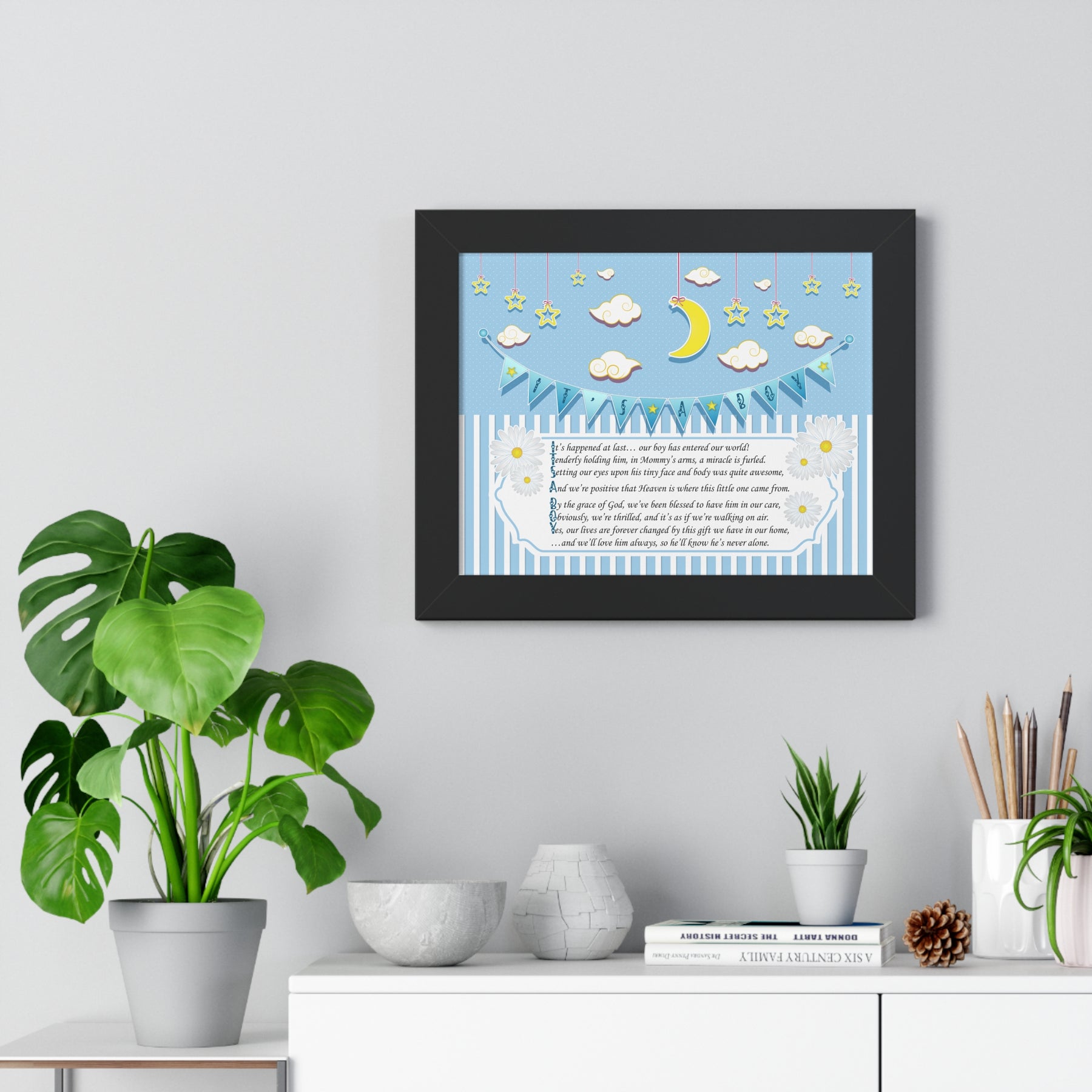 Experience the magic of Baby Steps by Moments in Rhyme. Our personalized acrostic framed prints make for perfect nursery decor – charming graphics and one-of-a-kind fonts included. Spells out "It's a Boy" with this one and capture the preciousness of baby boys in a sweet sentiment.