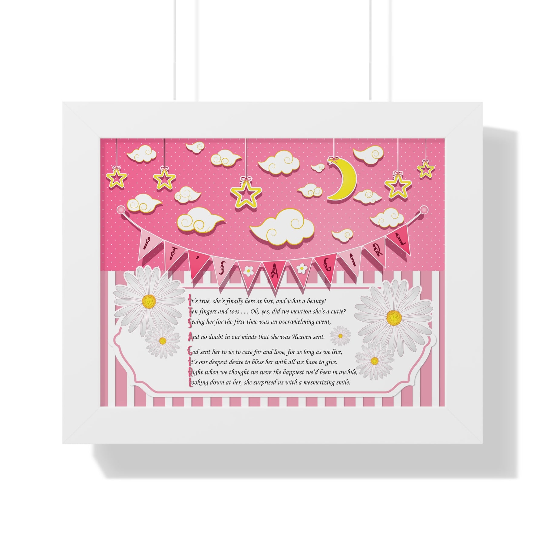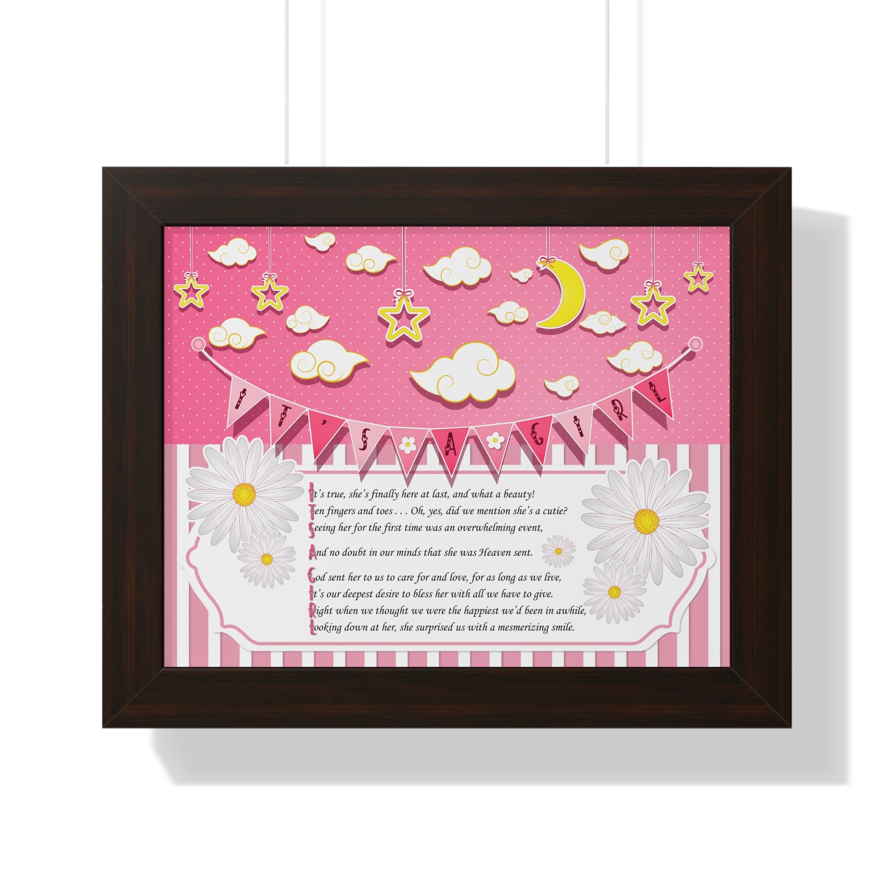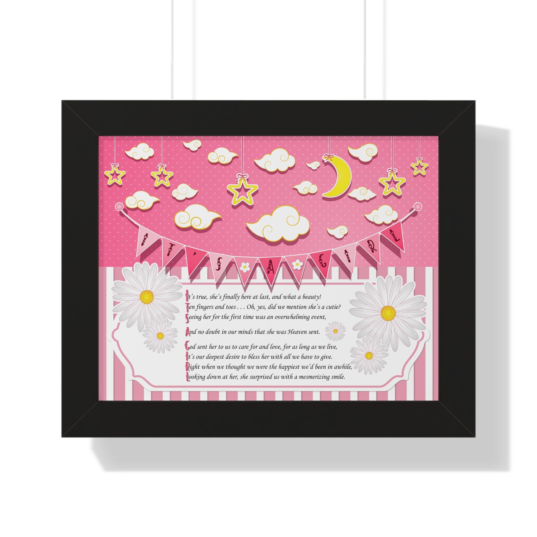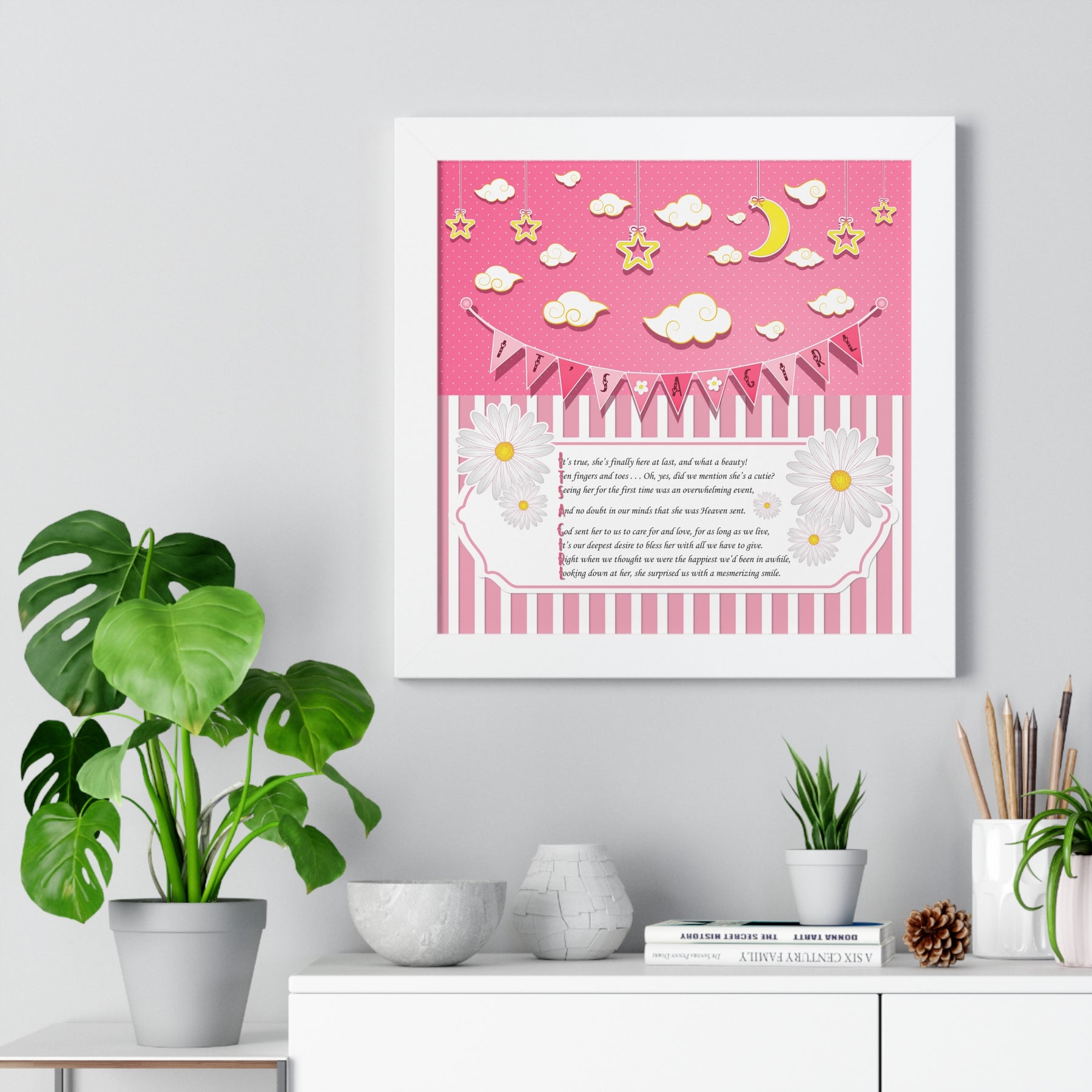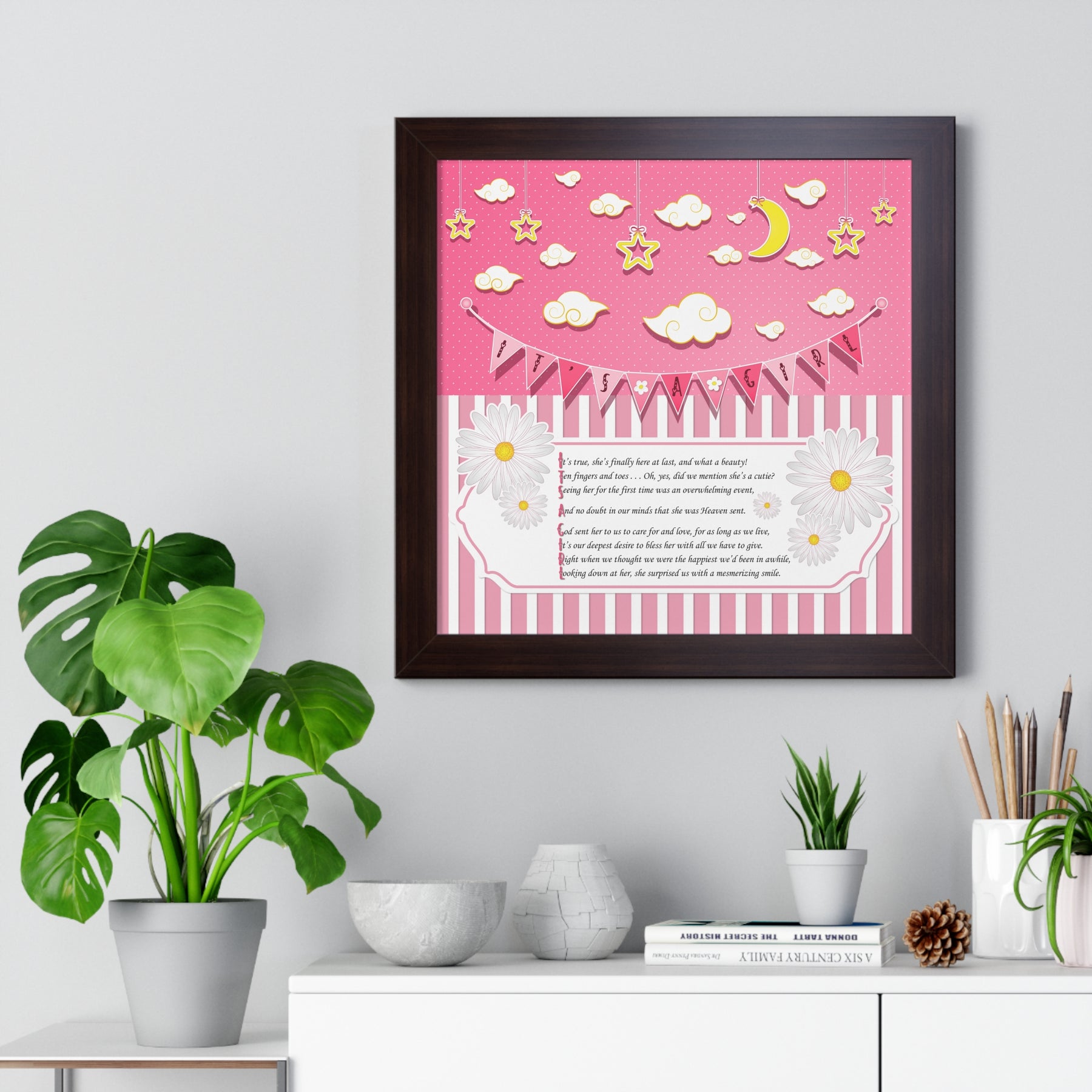 Get ready to aww. This adorable framed print spells out "It's a Girl" in a precious, sentimental acrostic poem. With a charming pink stripes design, it's the perfect addition to your little one's nursery decor.