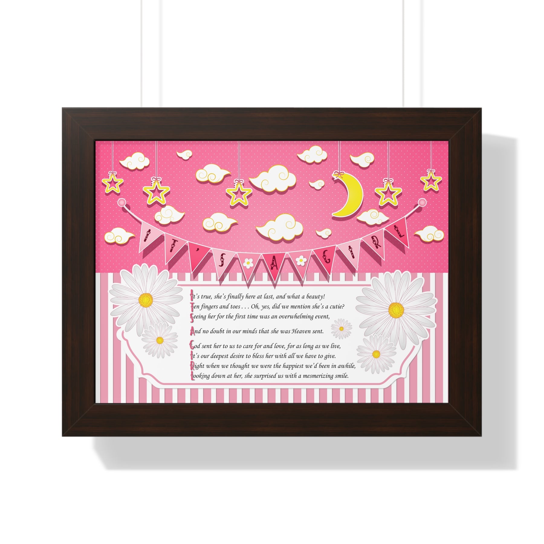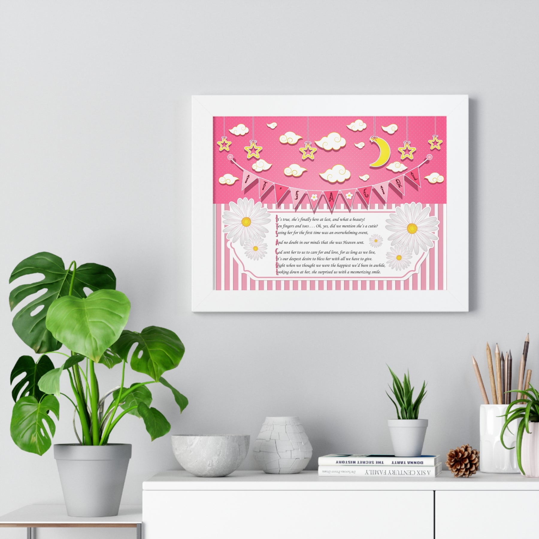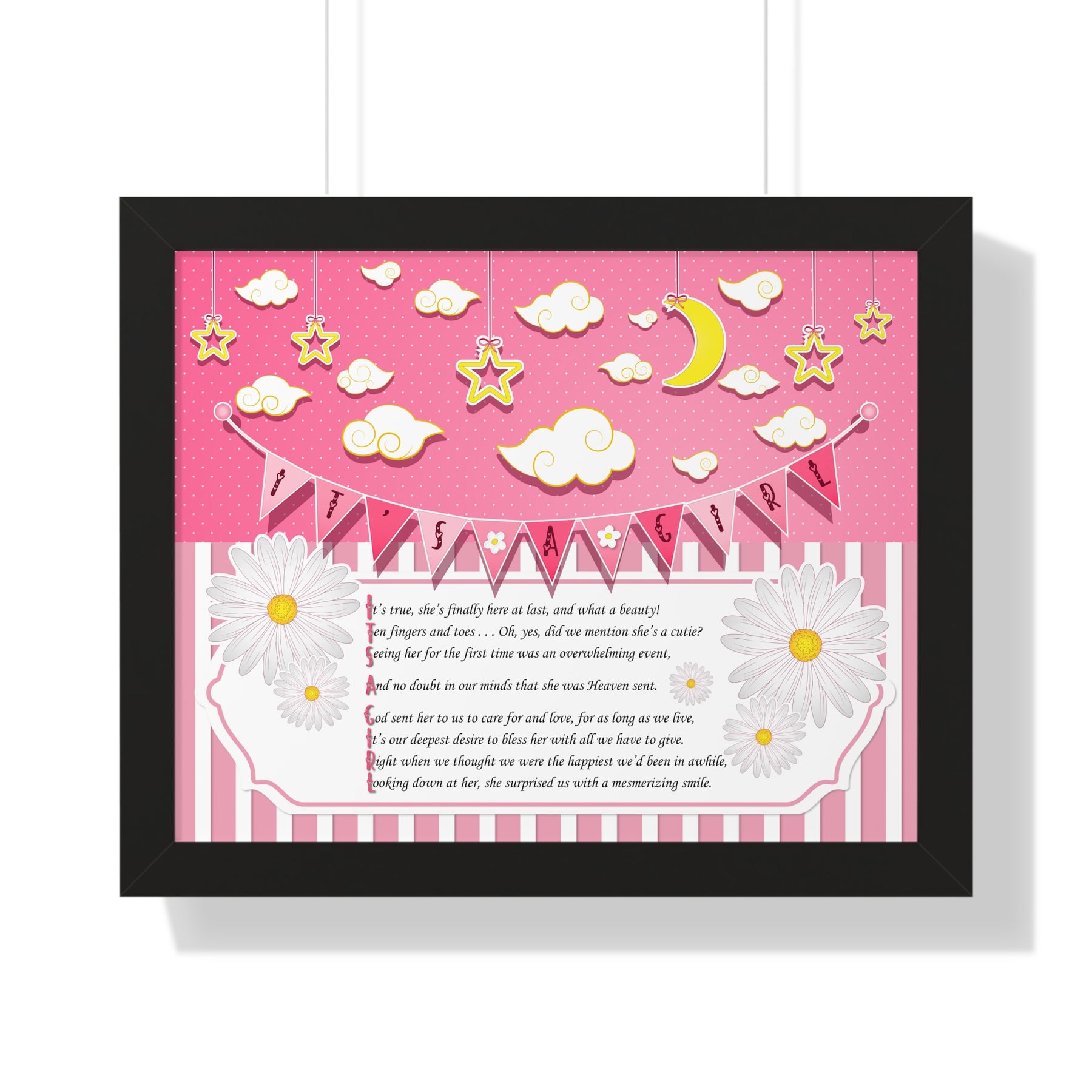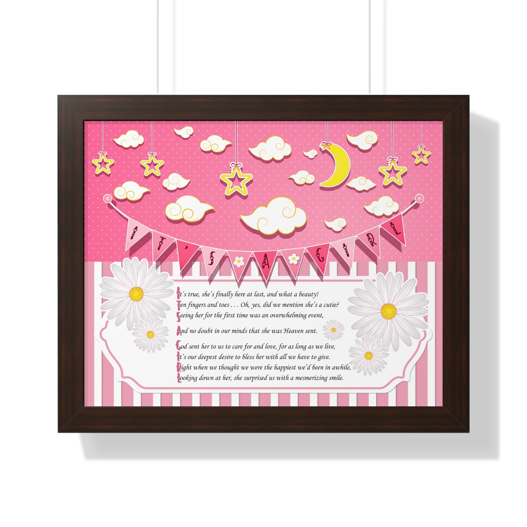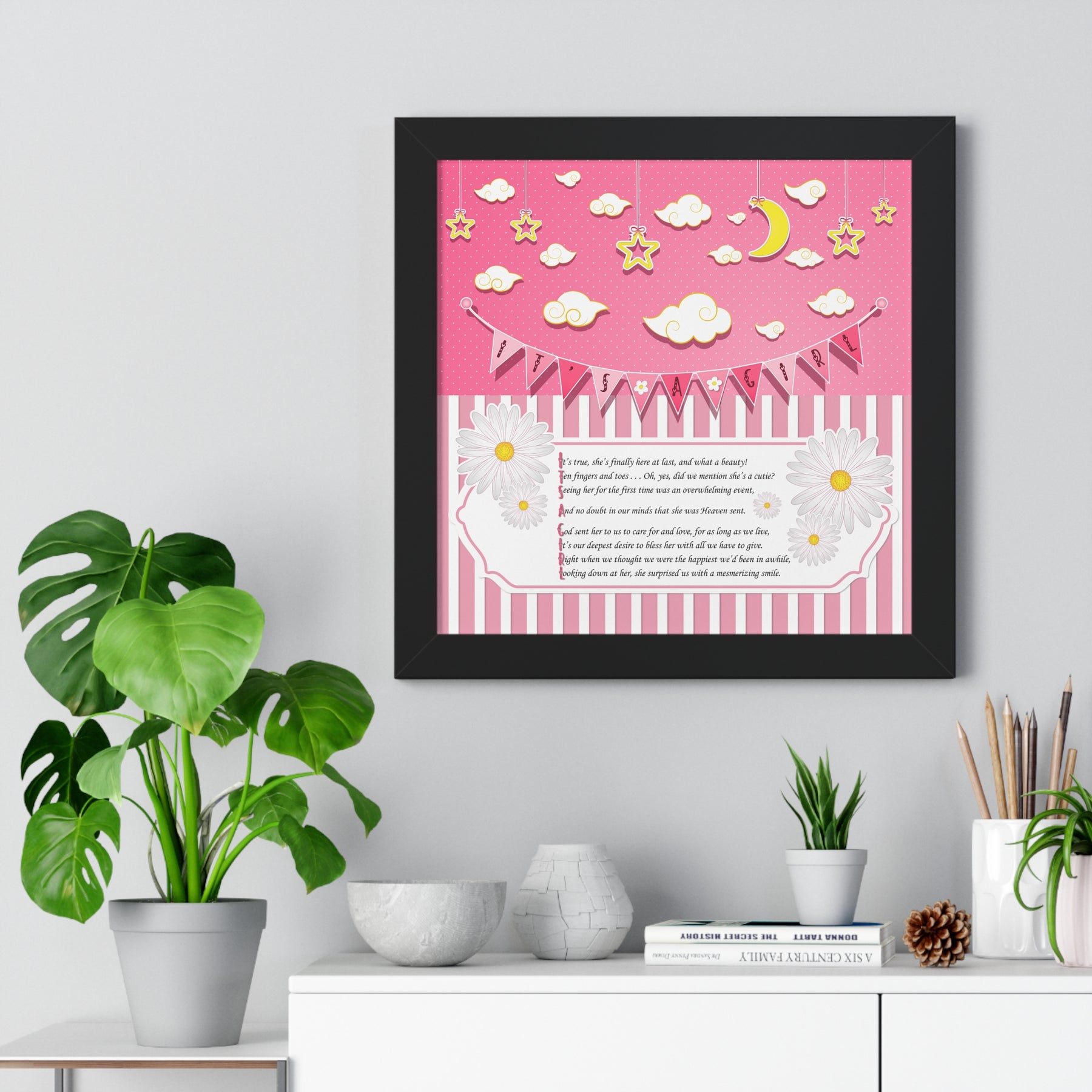 Get ready to aww. This adorable framed print spells out "It's a Girl" in a precious, sentimental acrostic poem. With a charming pink stripes design, it's the perfect addition to your little one's nursery decor.