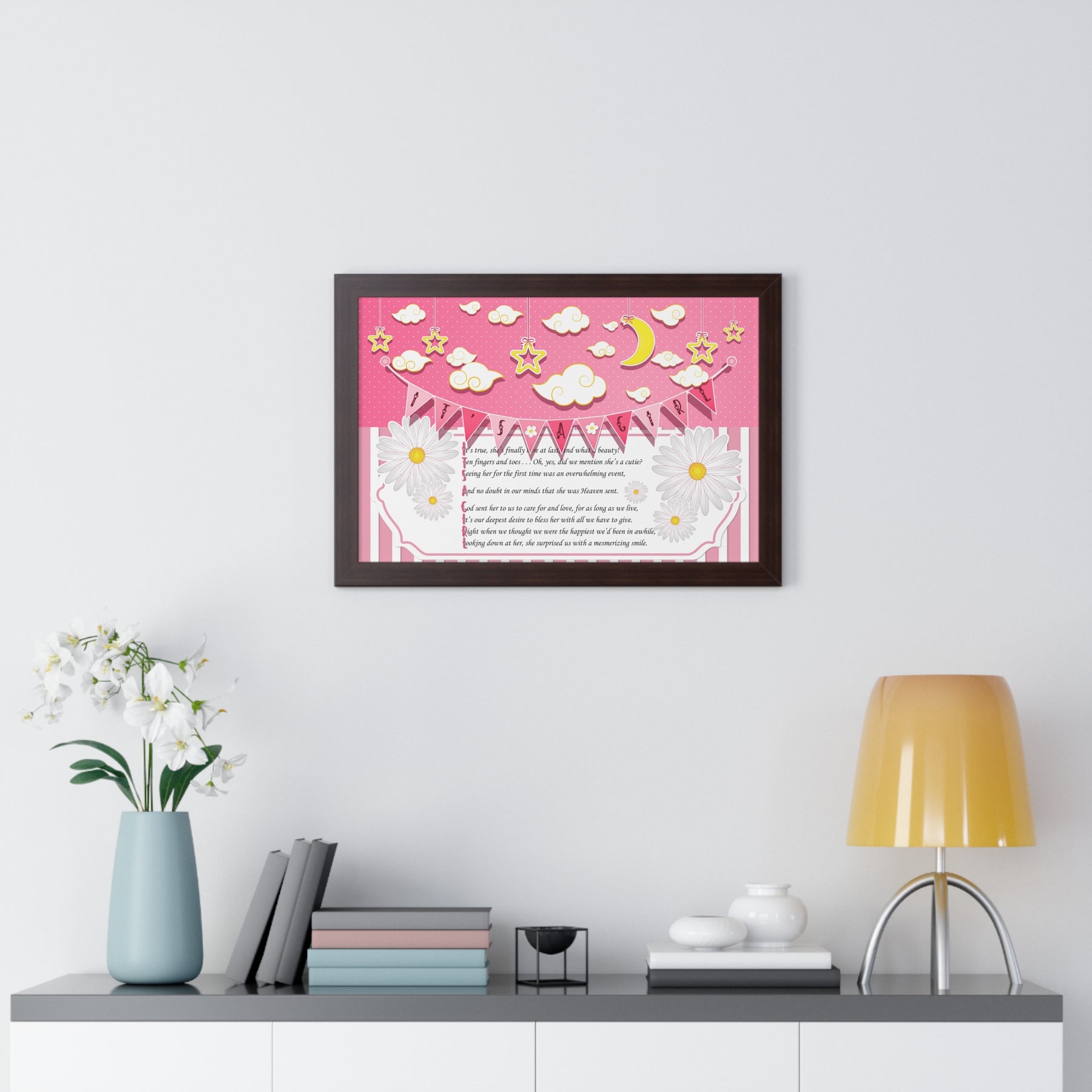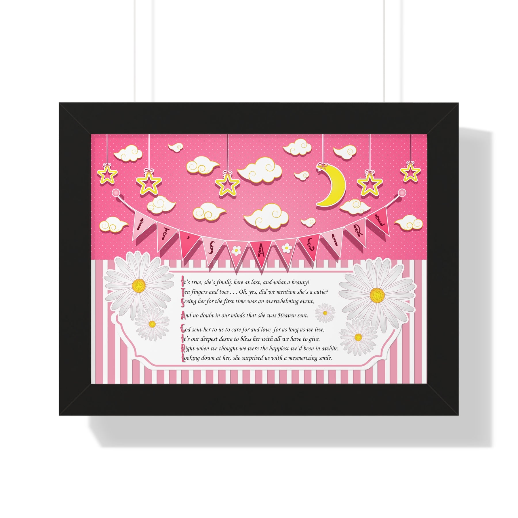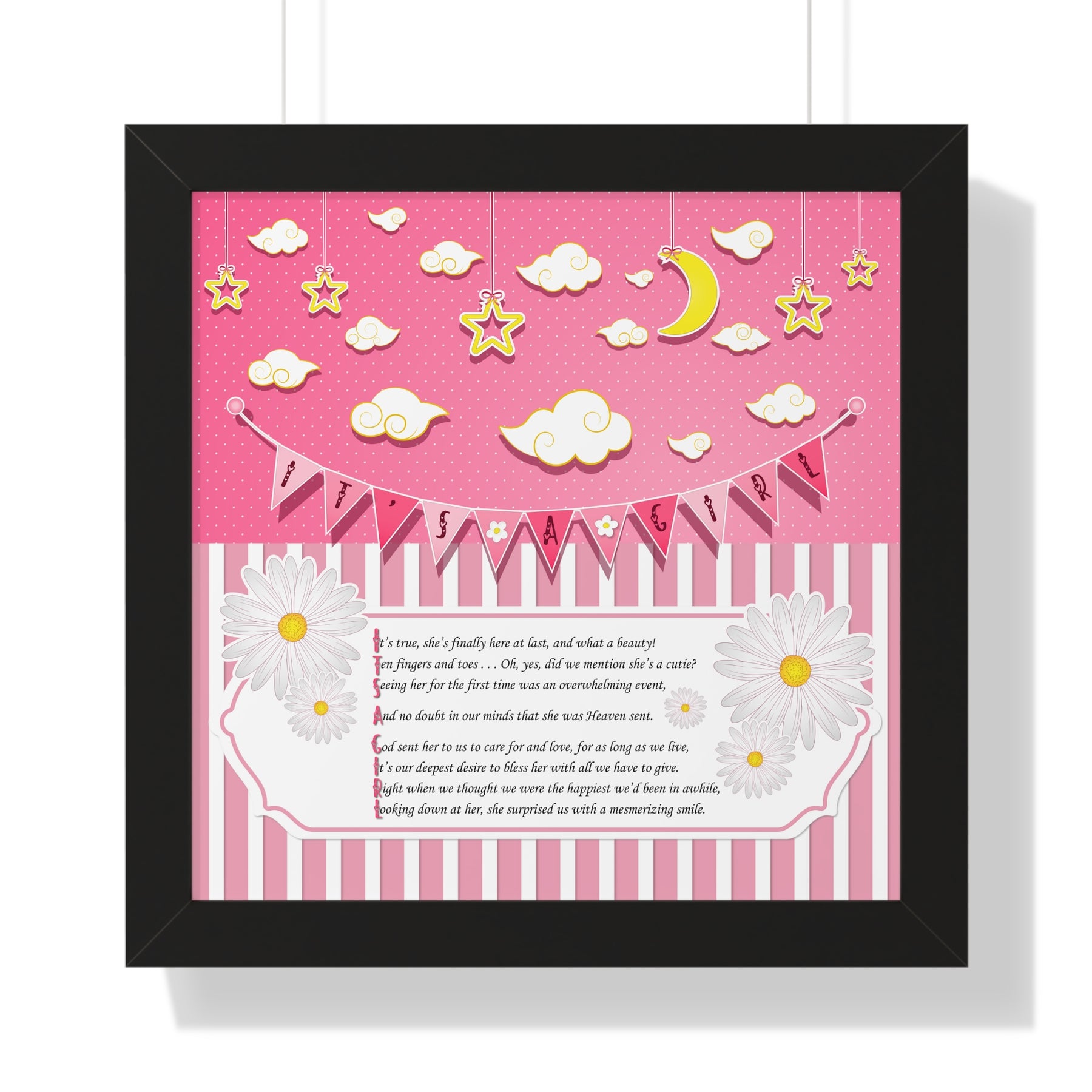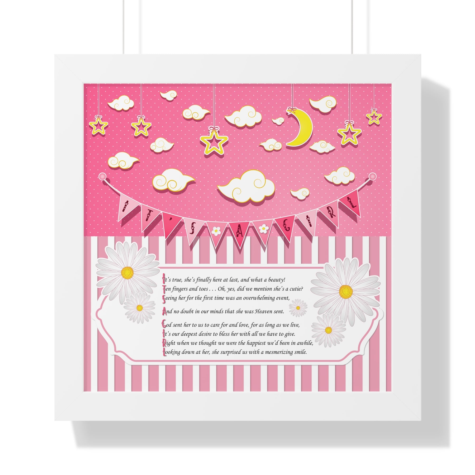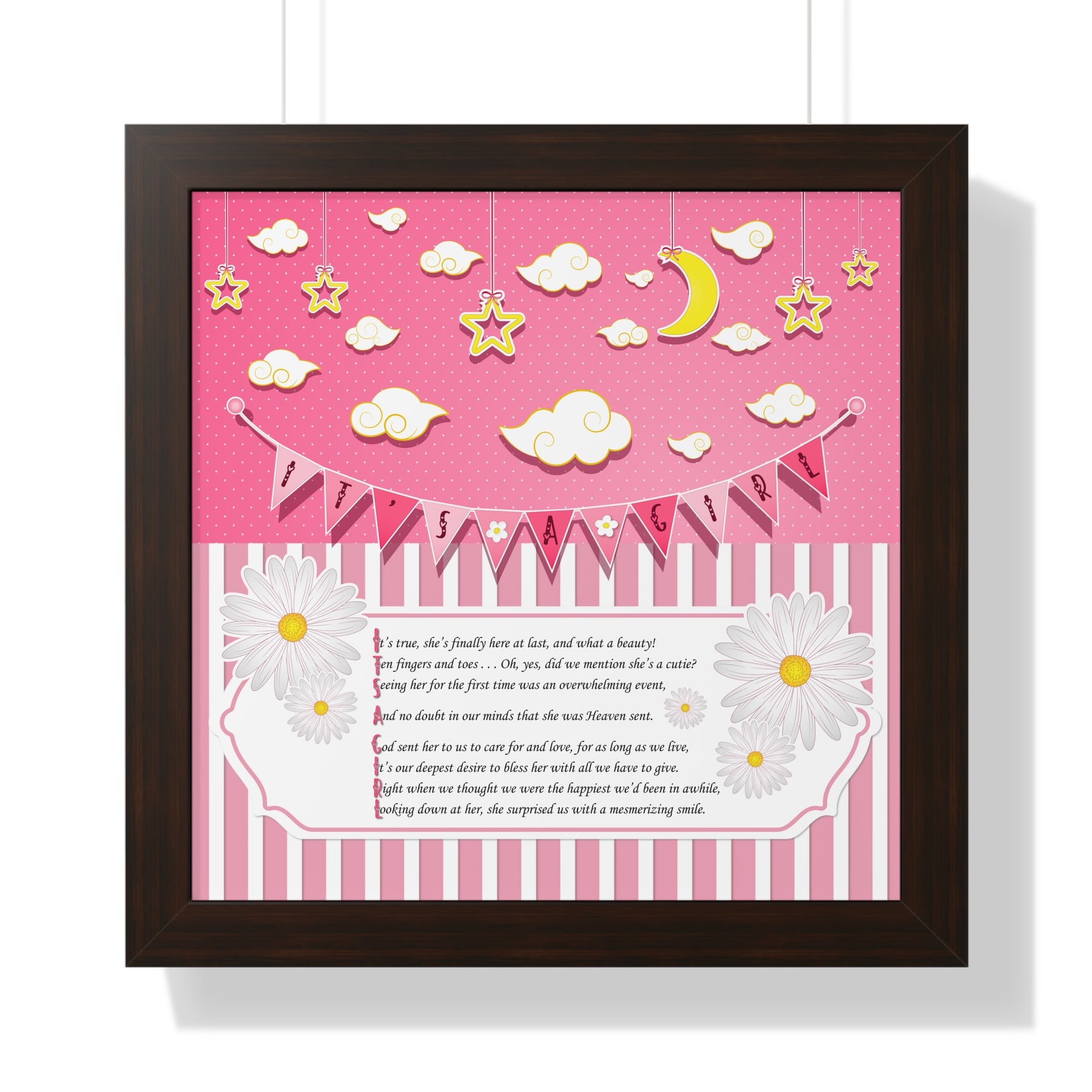 Get ready to aww. This adorable framed print spells out "It's a Girl" in a precious, sentimental acrostic poem. With a charming pink stripes design, it's the perfect addition to your little one's nursery decor.
