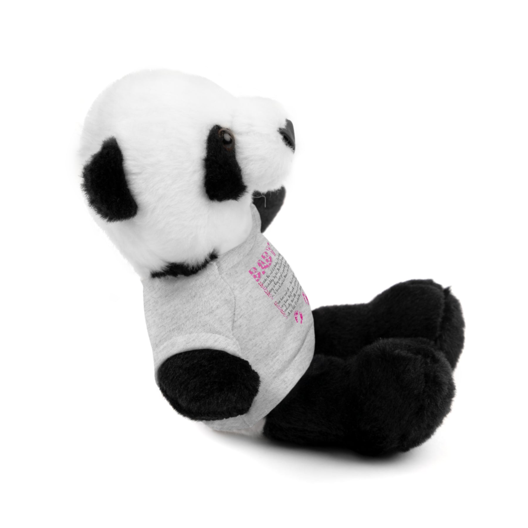 Baby Steps features miniature stuffed animals dressed in 100% cotton T-shirts printed with an acrostic poem spelling out Baby Feet. Each 8-inch plushie is crafted with polyester and plastic pellet filling and comes in a variety of teeny-tiny shirt colors.