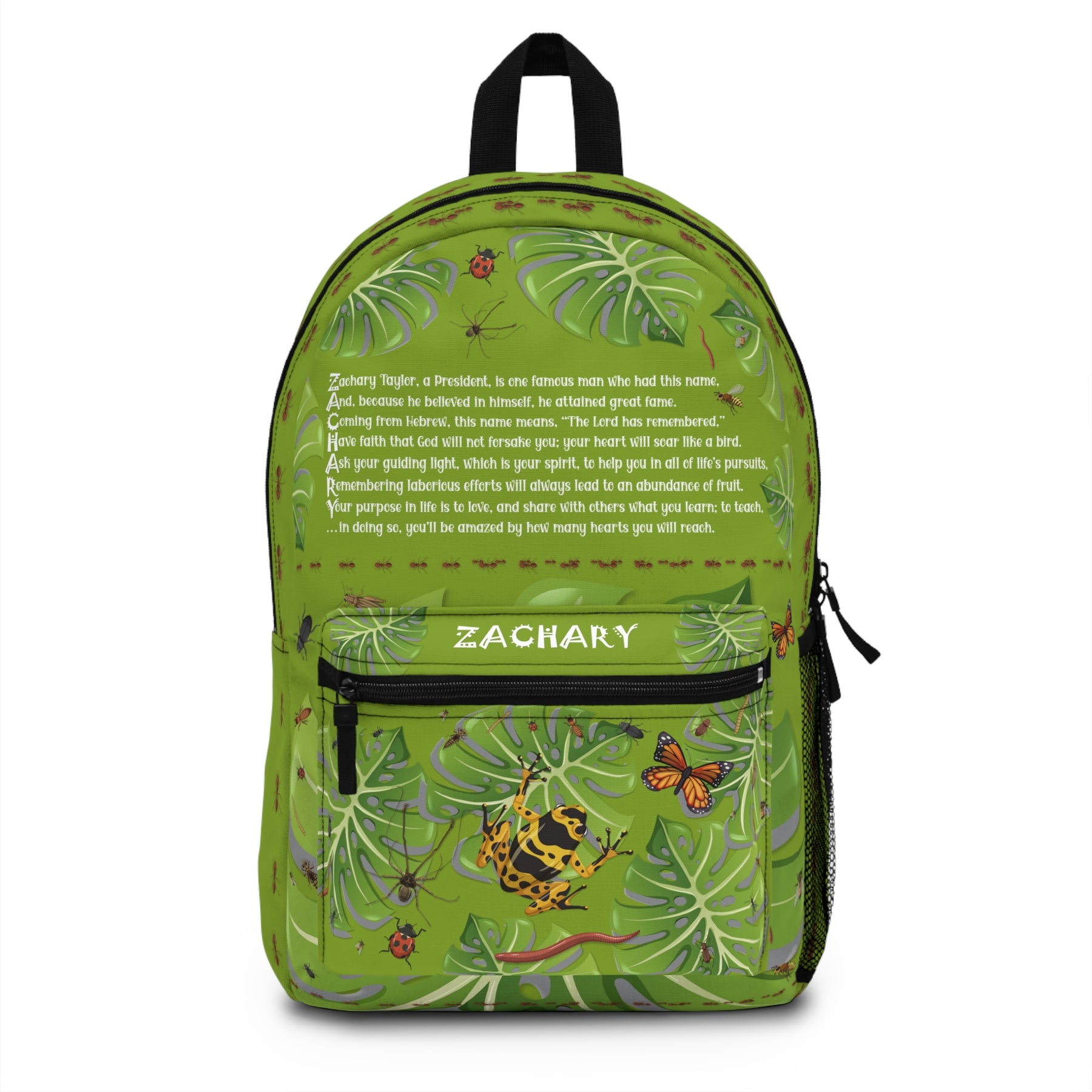 Have you got room for all that? With Moments in Rhyme's Namesakes roomy and durable backpack, you will! This bag is made from spun polyester and weights 1.3 lbs, just enough to be light, strong and long-lasting. Grab it, stow it, throw it onto the seat next to you, this backpack can take it, and so will you, wherever you go! Just tell us the name you want on the backpack and we'll take it from there.