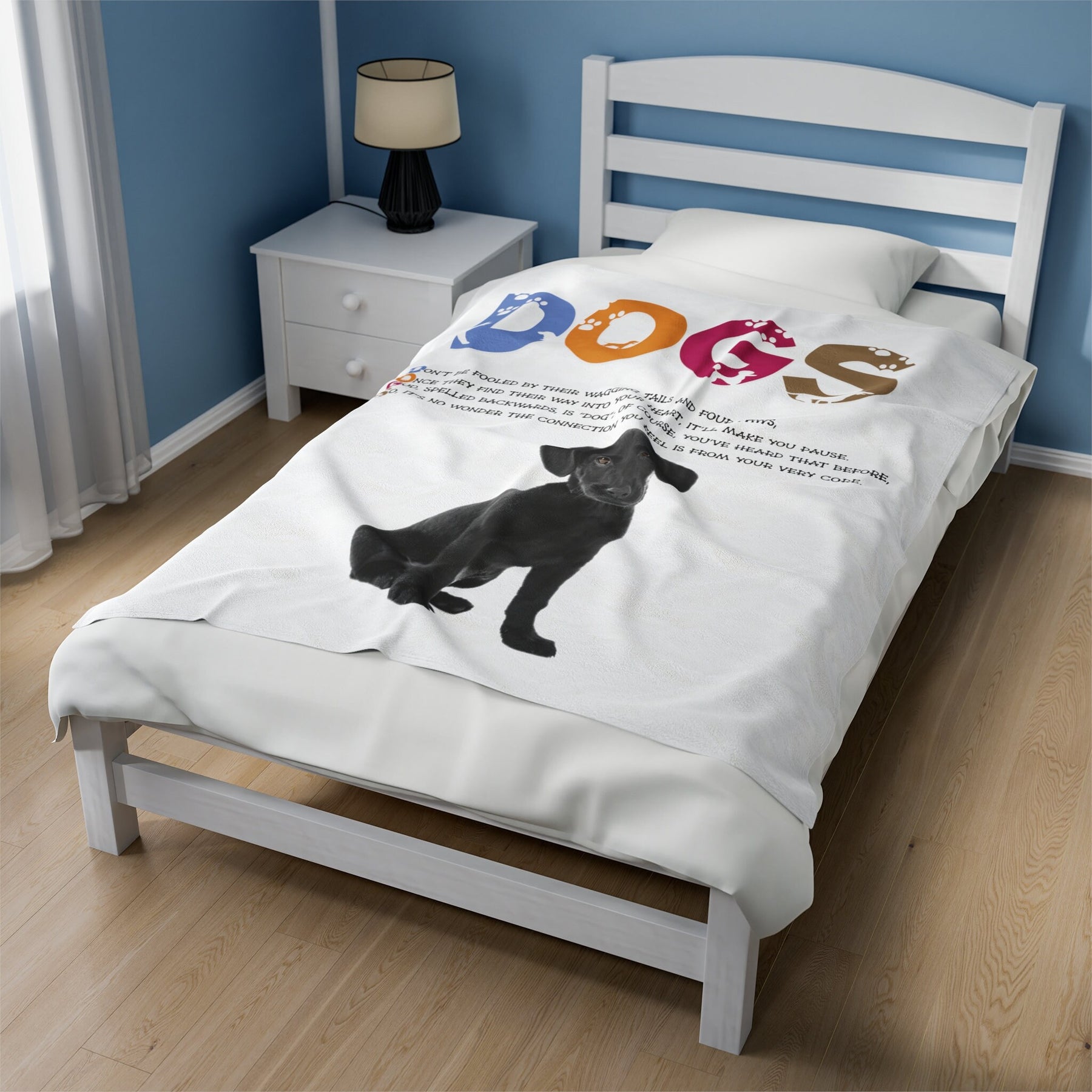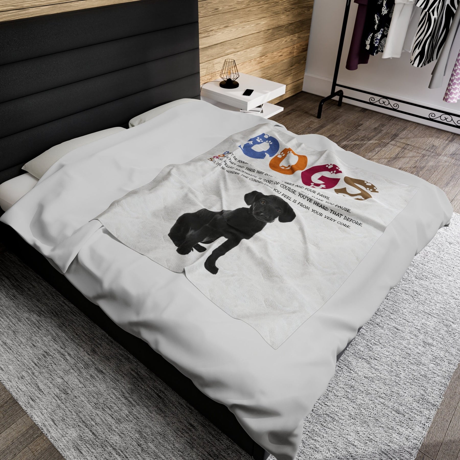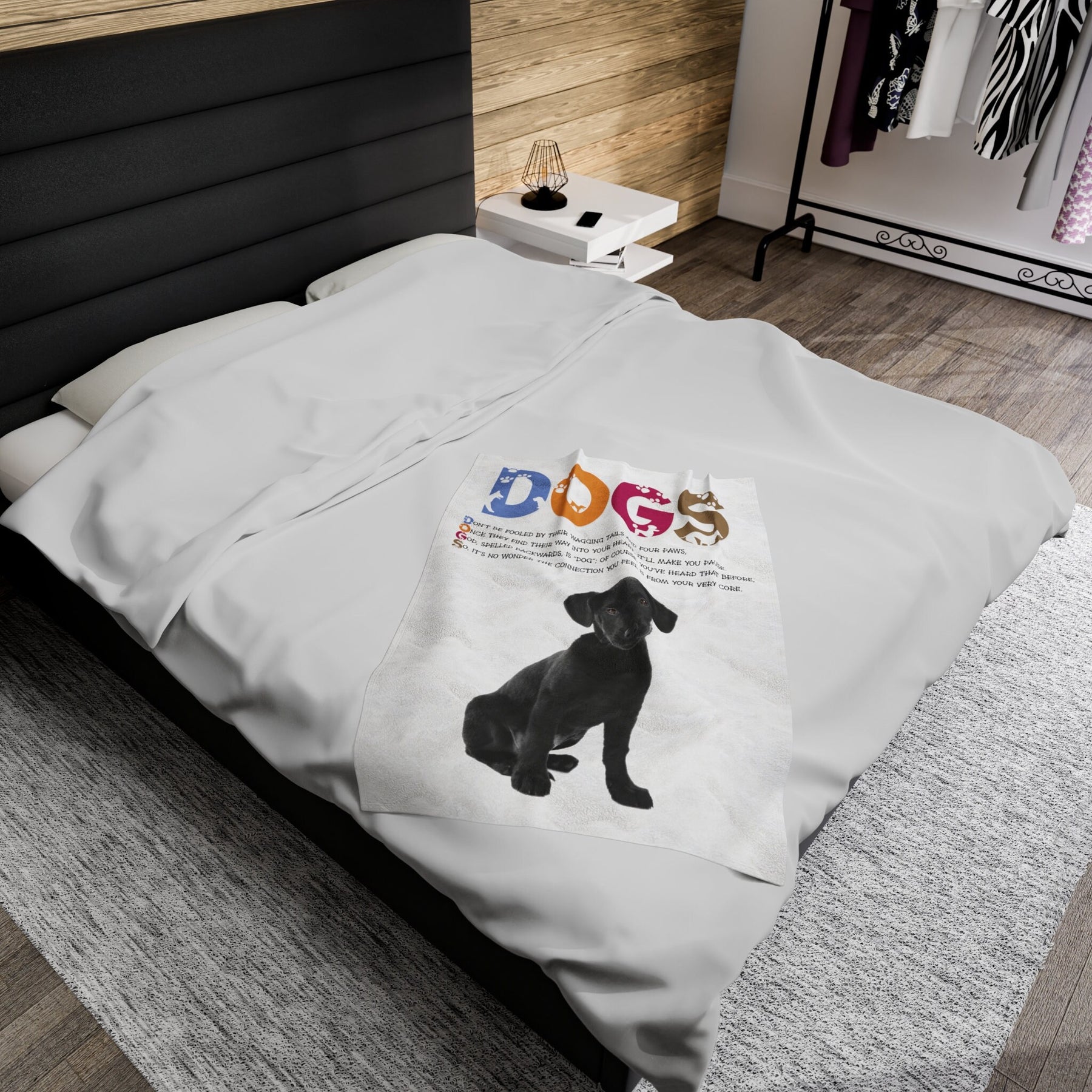 Take a risk and snuggle up with this daring canine partner! This soft and warm blanket showcases an enchanting Black Lab and an acrostic poem spelling out "DOGS". Embrace the thrill with the paw print and bone text design - ideal for the festive season and cozy cuddles with any dog admirer! It also makes for a brilliant Christmas or birthday surprise.