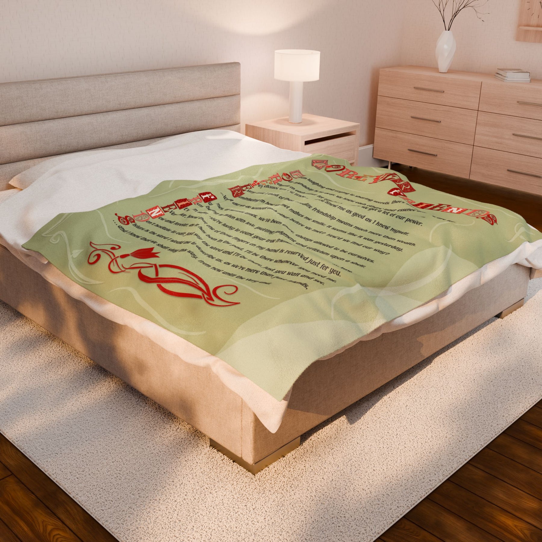 Let your best friend experience ultimate comfort with our It’s Just a Phrase Velveteen Plush Blanket, featuring an acrostic poem that spells out Forever Friends. This isn't just any gift for Bestie, it's a symbol of love and appreciation. Made with the highest quality materials, this blanket is delicate, soft, and vibrant. Whether they're snuggled up indoors or enjoying outdoor events, this blanket will keep them warm and cozy. It's the perfect gift to show her how much you care. Don't wait - give your BFFie the gift of comfort for years to come! Made from 83% Polyester and 17% Spandex, a medium- to heavyweight fabric that feels exceptionally soft to the touch. Available in three sizes.