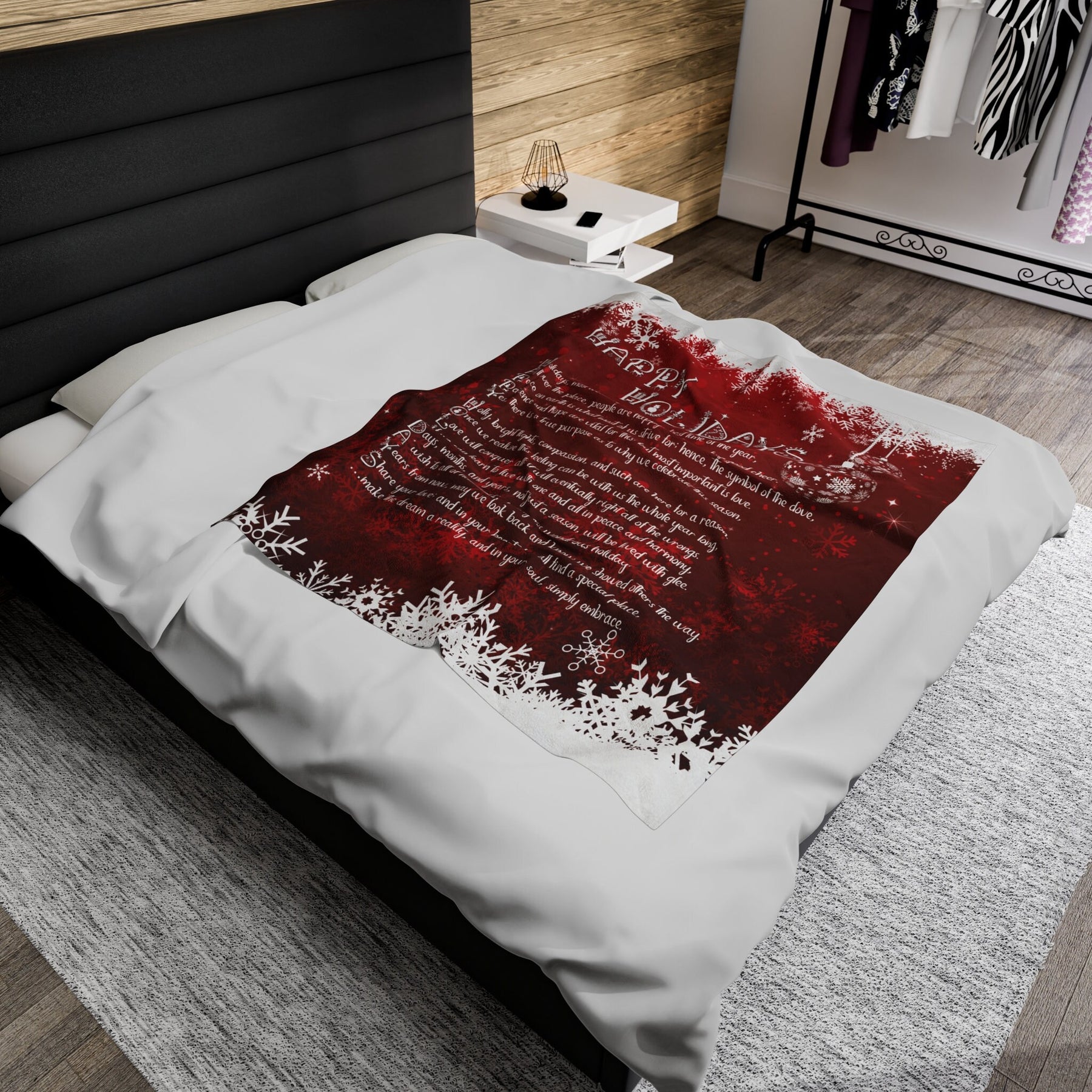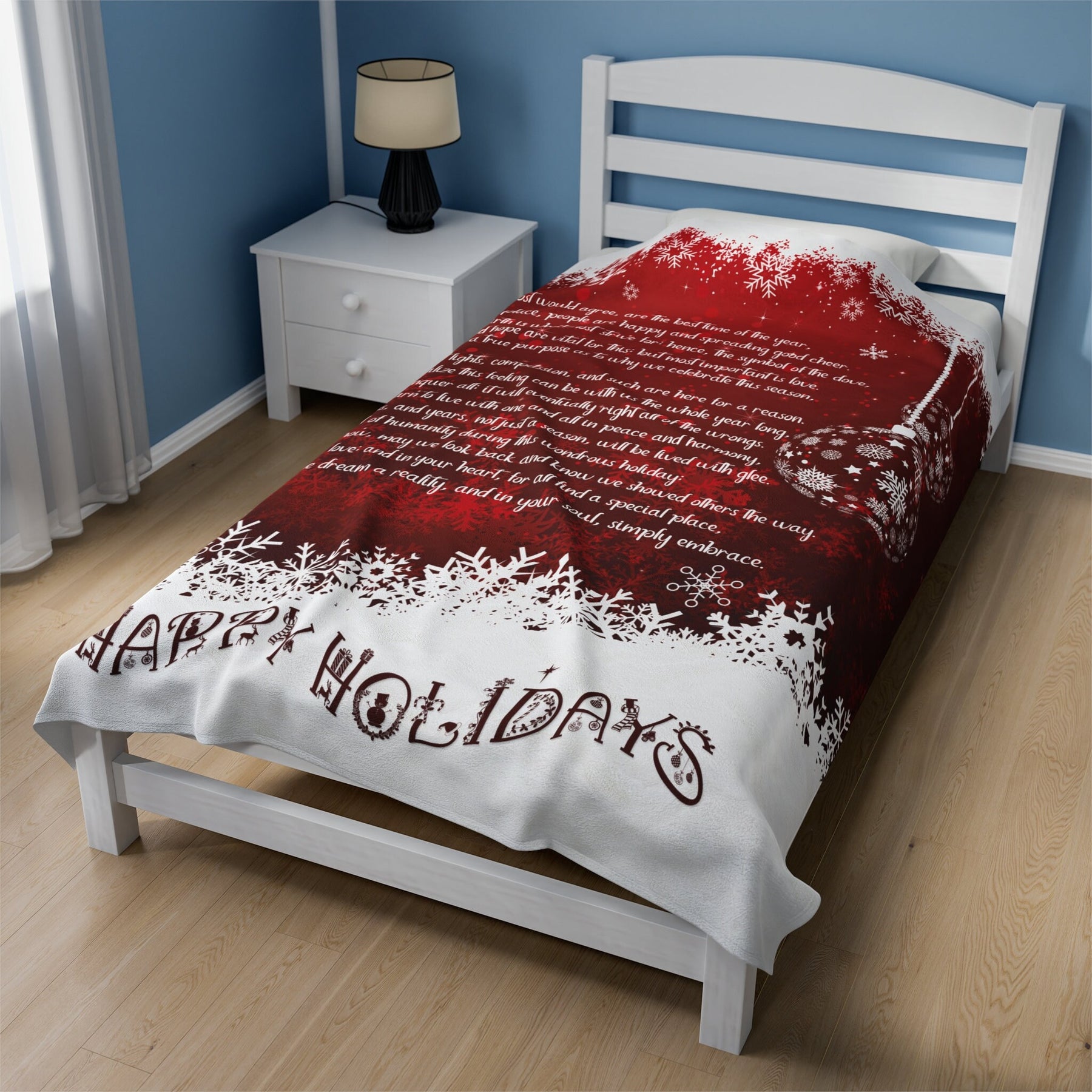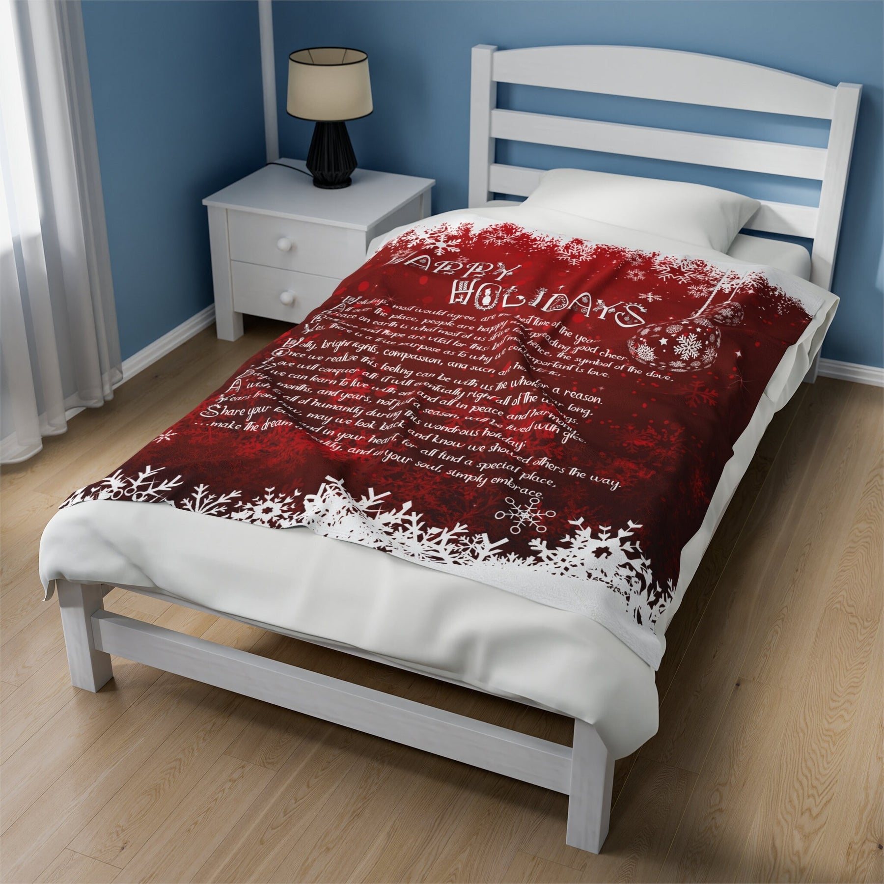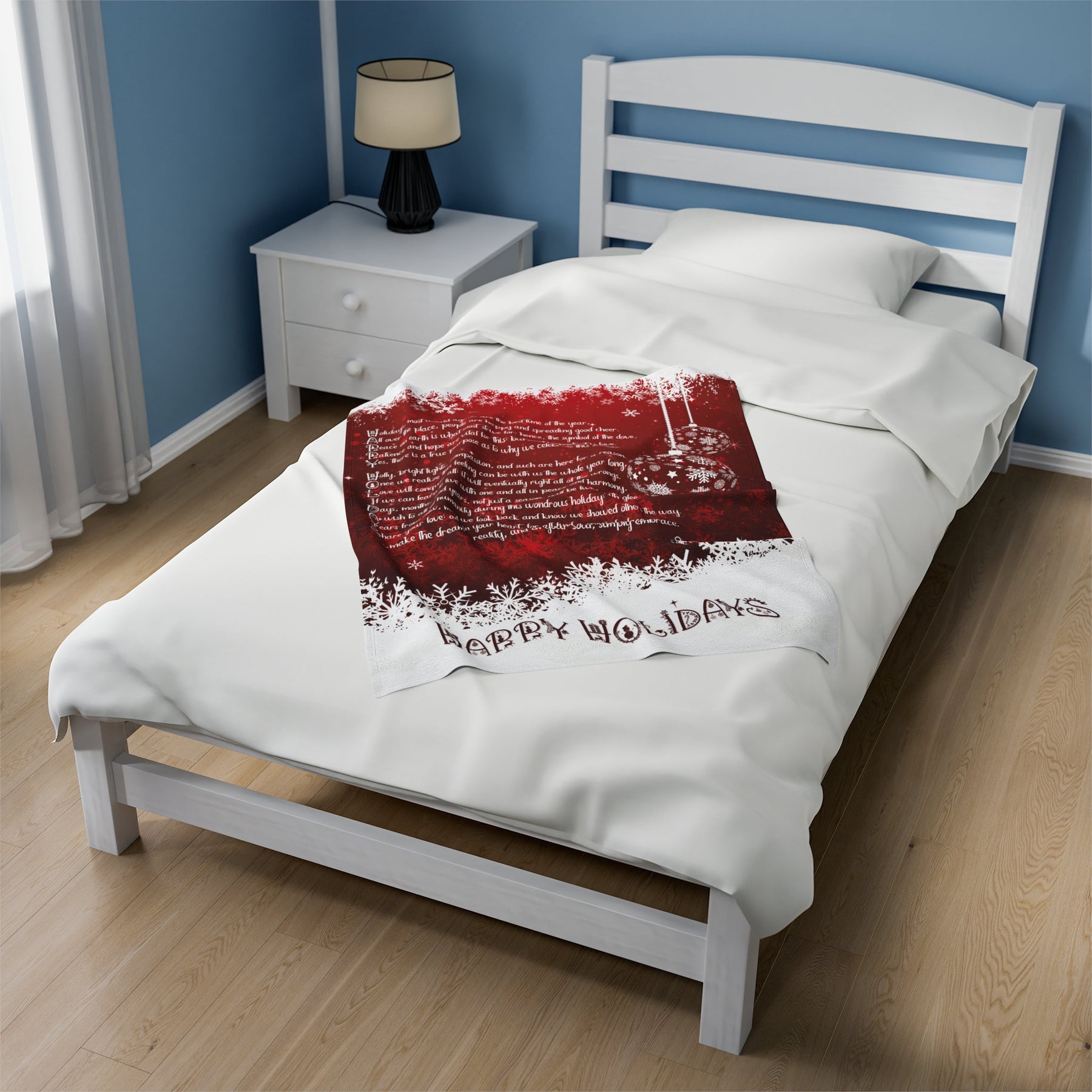 The snuggle is real! Say hello to your new go-to holiday throw. These ultra-comfy velveteen blankets are incredibly plush. Get into the holiday spirit by cozying up with luxurious softness. Our "Happy Holidays" acrostic poem blankets are whimsical, velvety, and bright. Perfect for both outdoor gatherings and chilly winter cuddles. Also makes an awesome present!