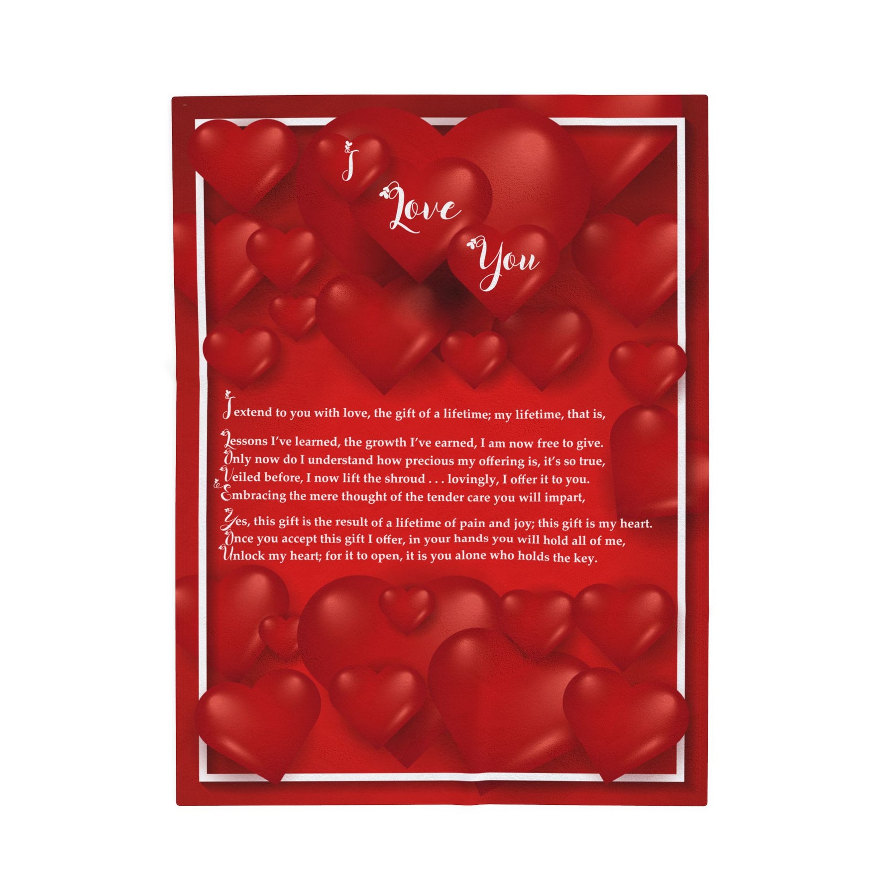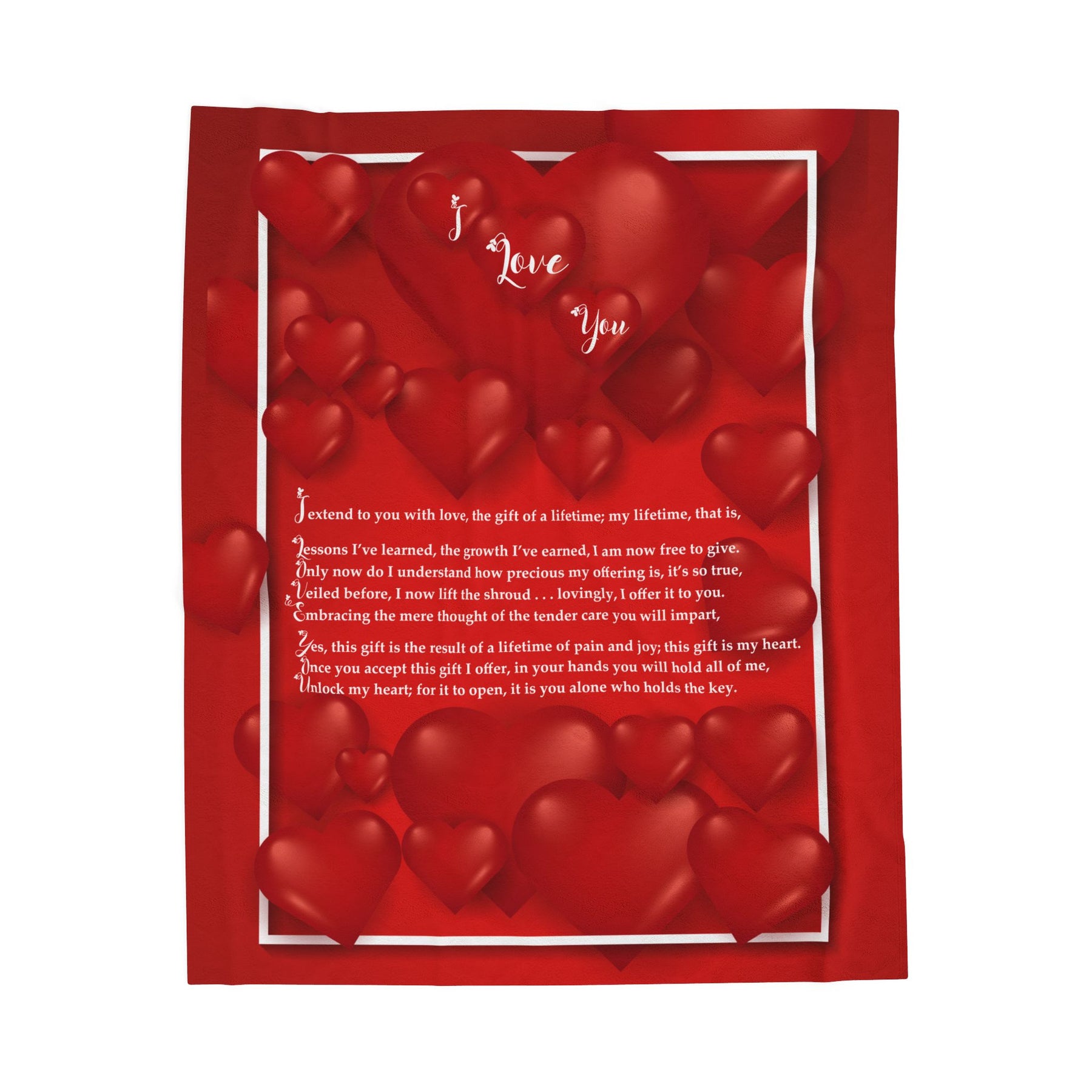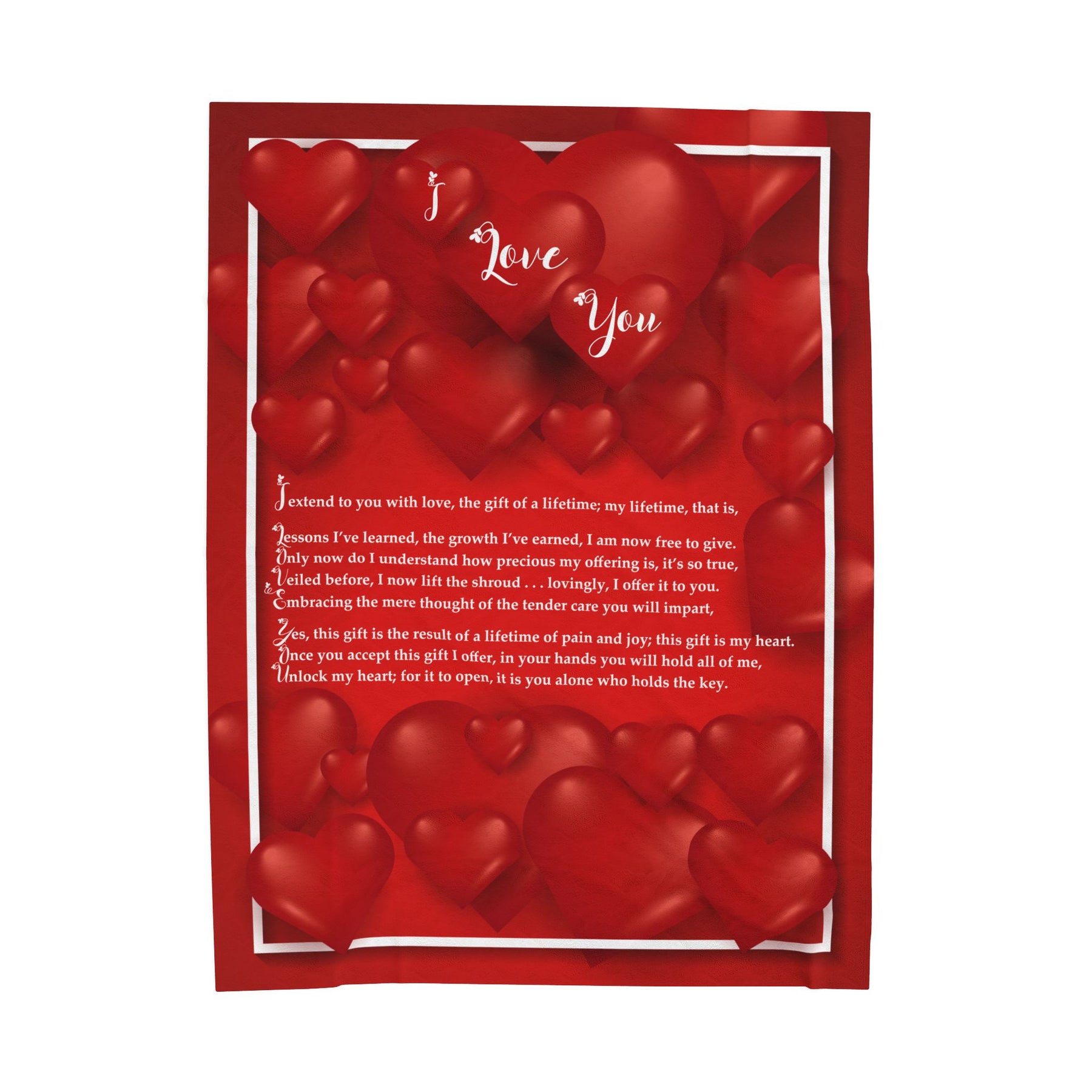 Let your sweetheart experience ultimate comfort with our It’s Just a Phrase Velveteen Plush Blanket, featuring an acrostic poem that spells out I Love You. This isn't just any gift; it's a symbol of love and appreciation. Made with the highest quality materials, this blanket is delicate, soft, and vibrant. Whether snuggling up indoors or enjoying outdoor events, this blanket will keep anyone warm and cozy. It's the perfect gift to show someone how much you care. Don't wait, give your sweetie the gift of comfort for years to come! Made from 83% Polyester and 17% Spandex, a medium- to heavyweight fabric that feels exceptionally soft to the touch. Available in three sizes. To clean, machine wash cold. Hand washing will extend the quality of the product. Do not iron, bleach, or dry-clean.