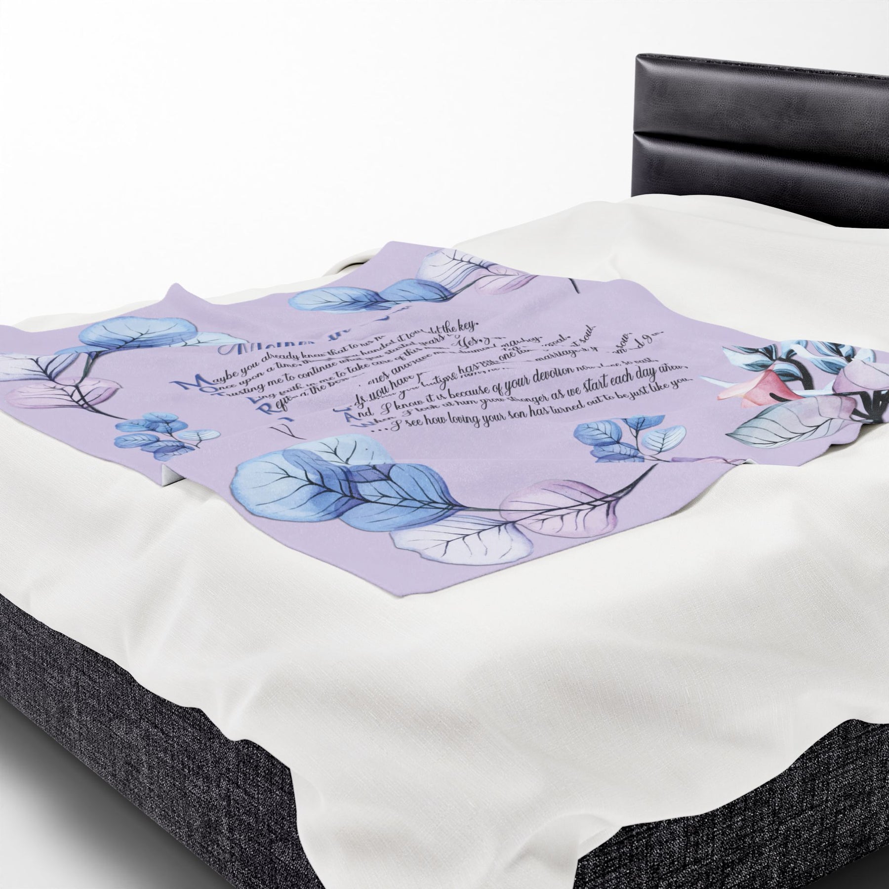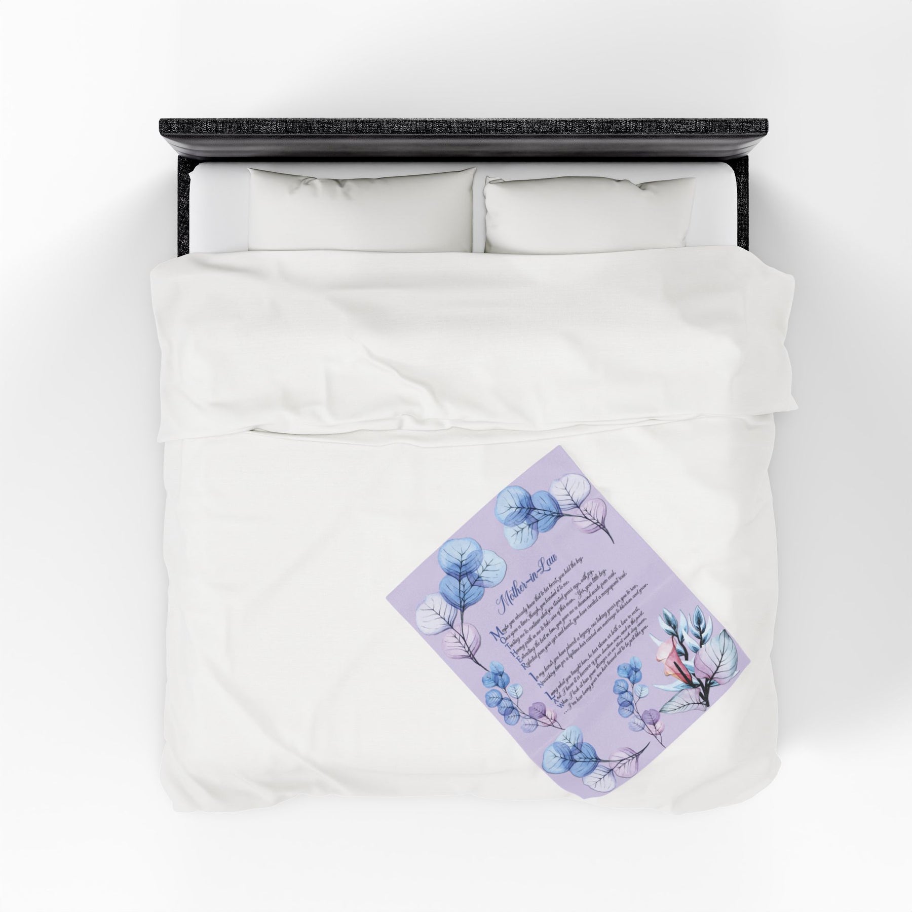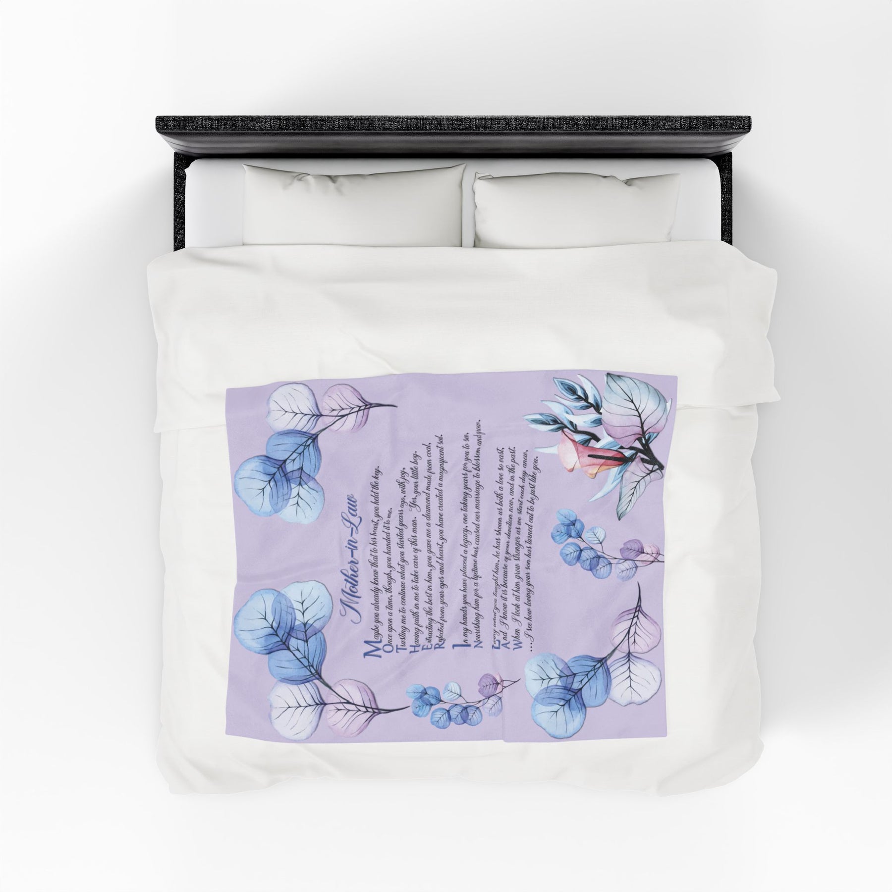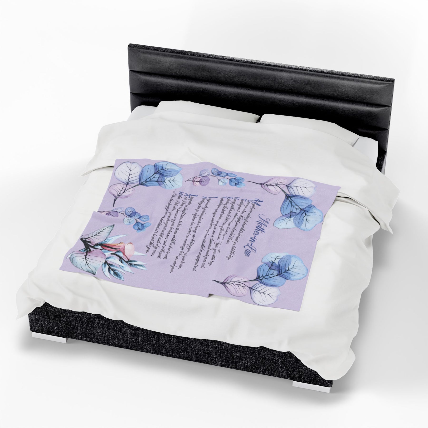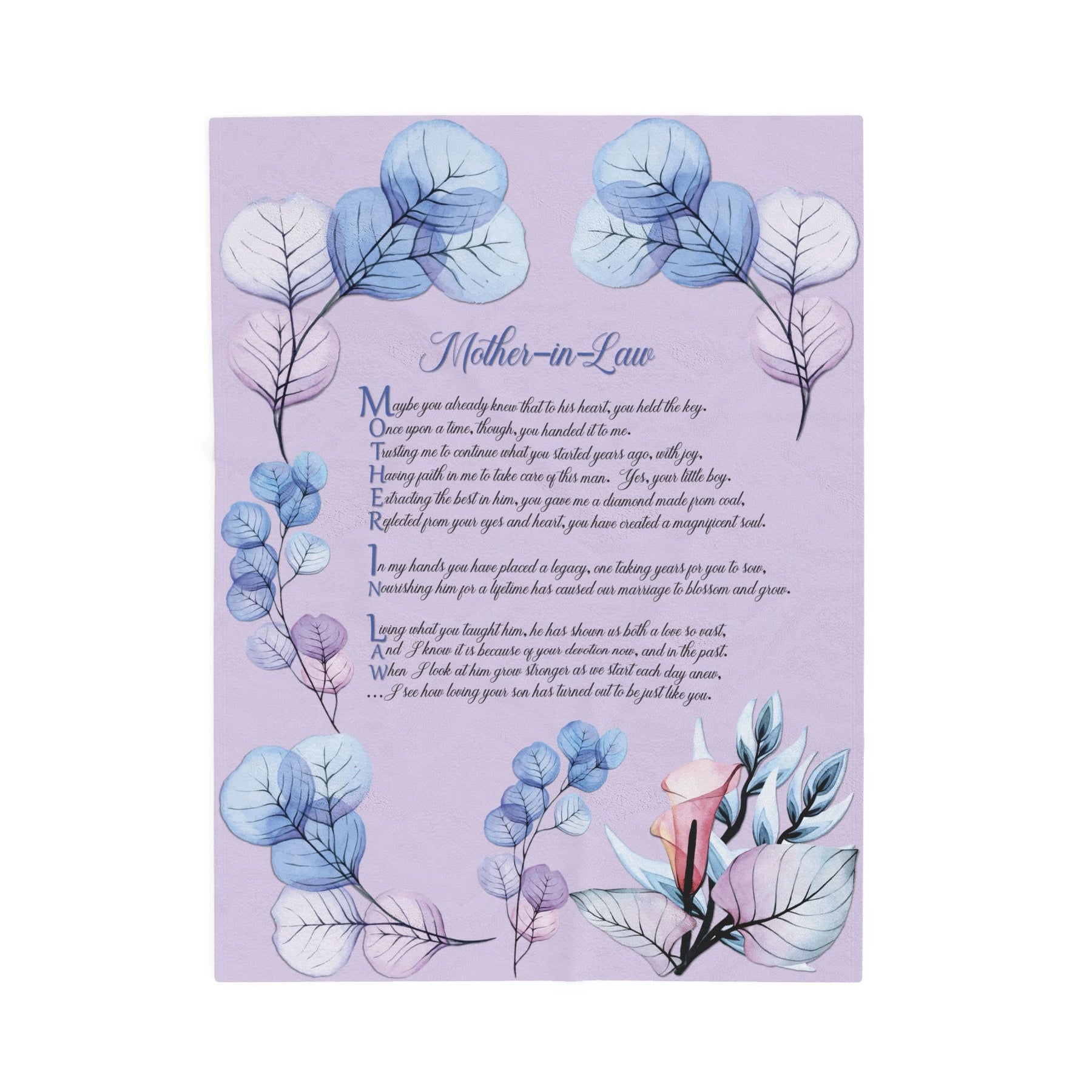 Let your precious mother-in-law experience ultimate comfort with our It’s Just a Phrase Velveteen Plush Blanket, featuring an acrostic poem that spells out Mother-in-Law. This isn't just any gift for her; it's a symbol of love and appreciation. Made with the highest quality materials, this blanket is delicate, soft, and vibrant. Whether she's snuggled up indoors or enjoying outdoor events, this blanket will keep her warm and cozy. It's the perfect gift to show her how much she means to you. Don't wait, give your Mom the gift of comfort for years to come! Made from 83% Polyester and 17% Spandex, a medium- to heavyweight fabric that feels exceptionally soft to the touch. Available in three sizes.