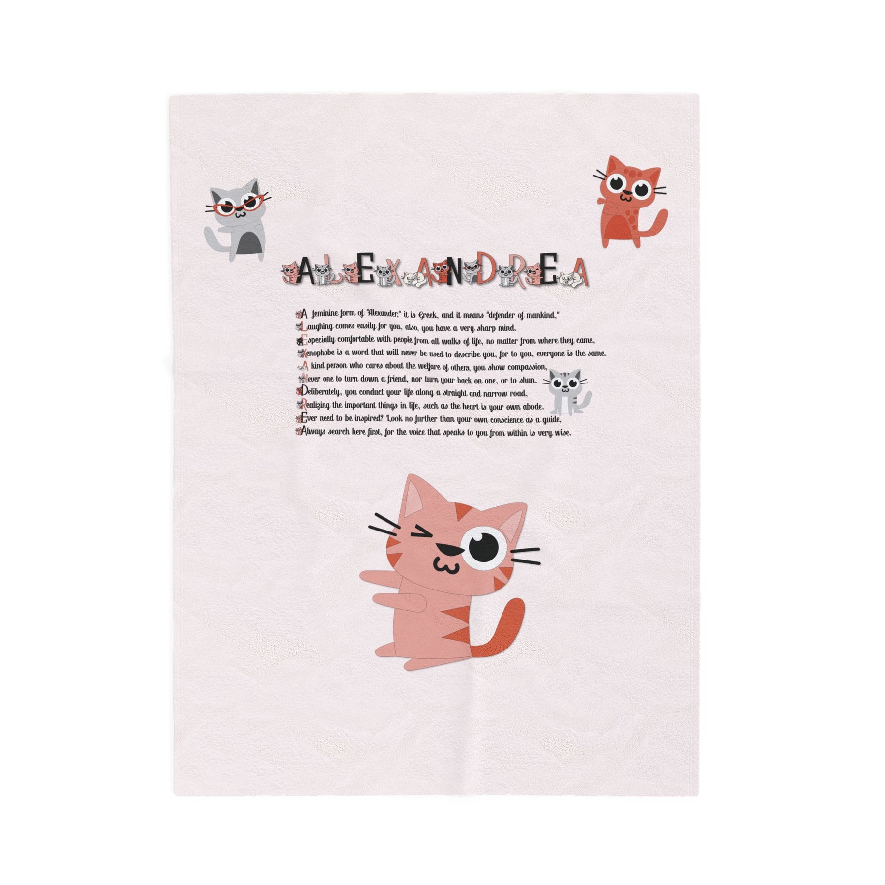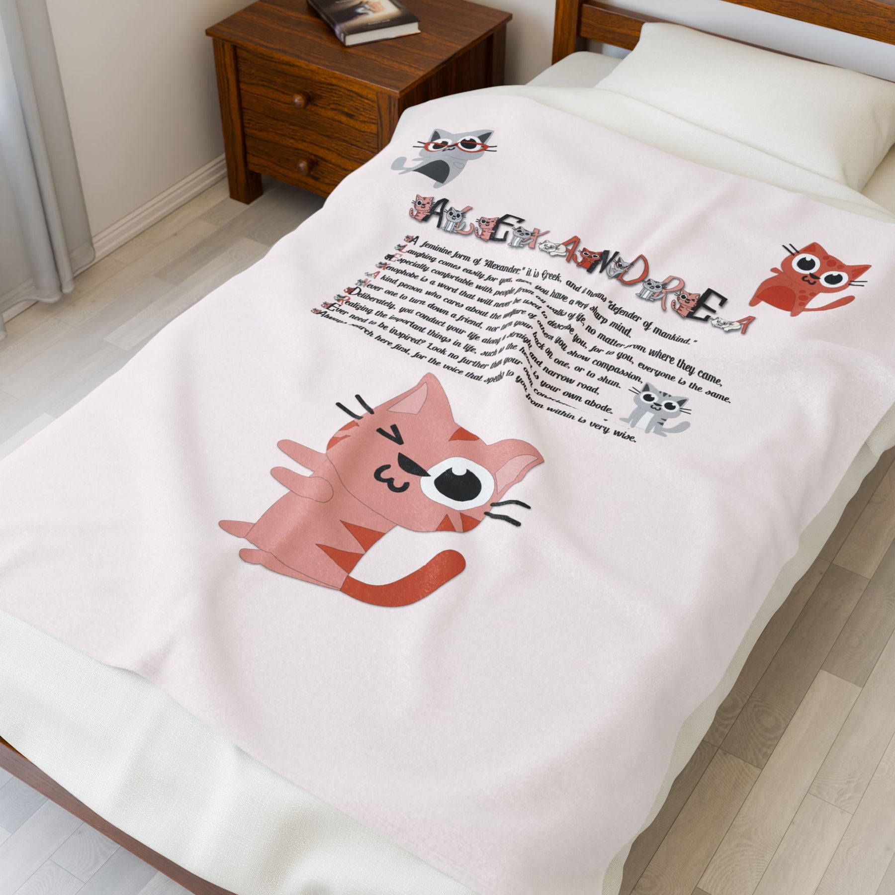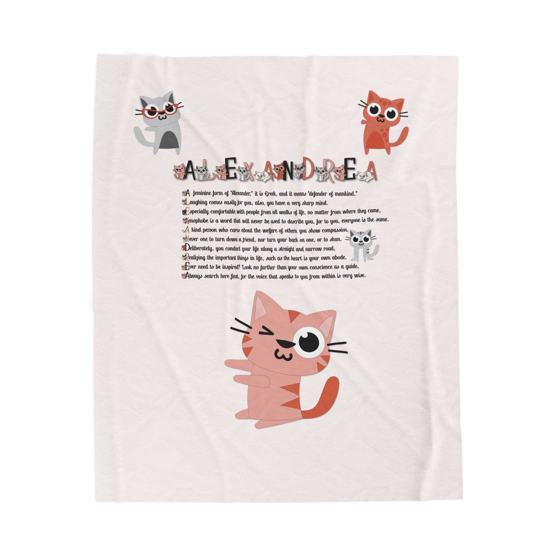 Discover our Namesakes Blanket Collection from Moments in Rhyme. This velveteen plush blanket could become your new favorite. It features a fun kitty design, along with an acrostic poem that spells out any name you choose, including its meaning and origin. Check out the amazing font! It has extra-large graphics, making it a fun and thoughtful gift for Christmas, a birthday, or any occasion for anyone who loves to snuggle. These blankets are soft, vibrant, and delicate—perfect for outdoor events or cozy winter nights. The font adds a special touch. Made from 83% polyester and 17% spandex, the fabric feels exceptionally soft. Available in three sizes. To clean, machine wash cold. Hand washing will extend the quality of the product. Do not iron, bleach, or dry-clean.