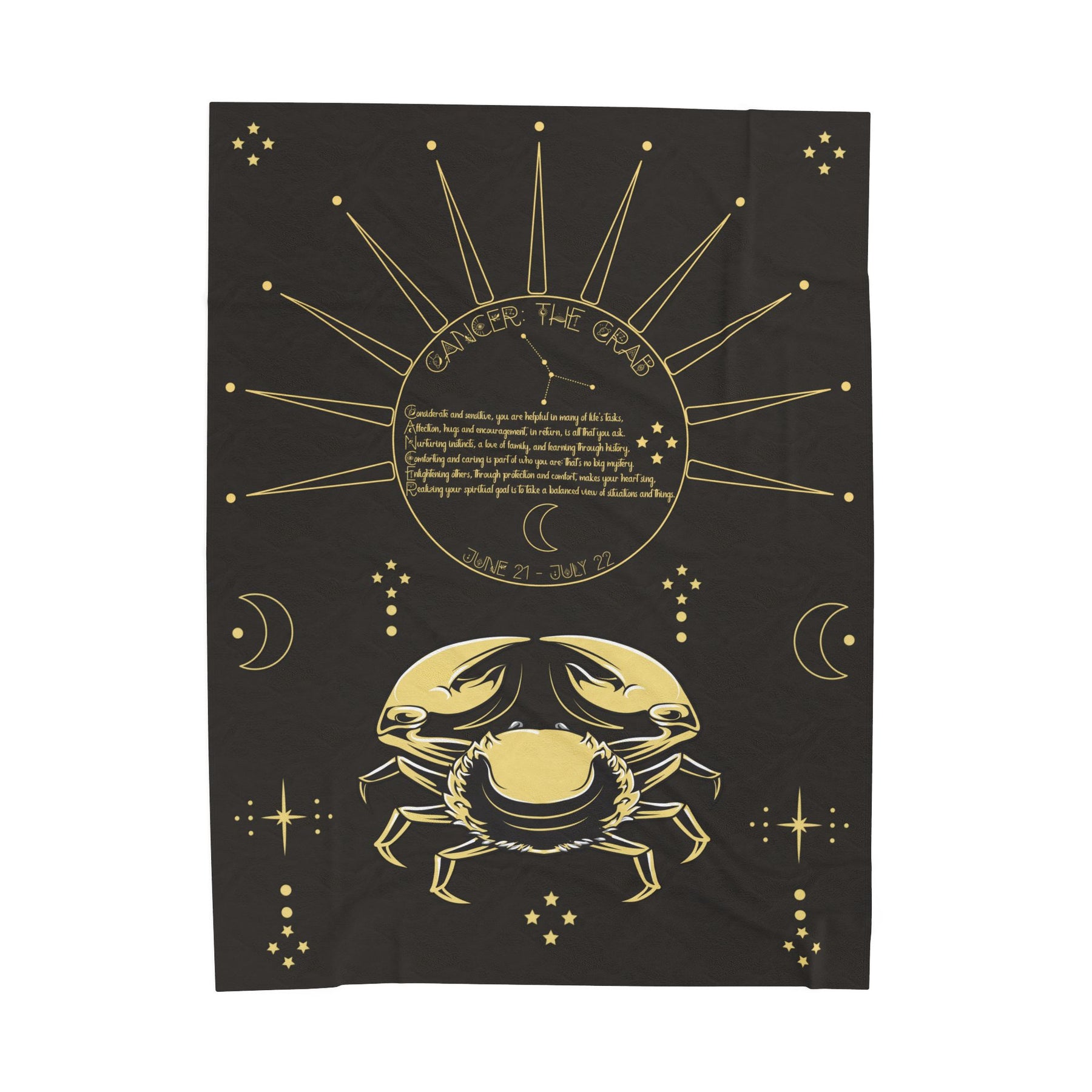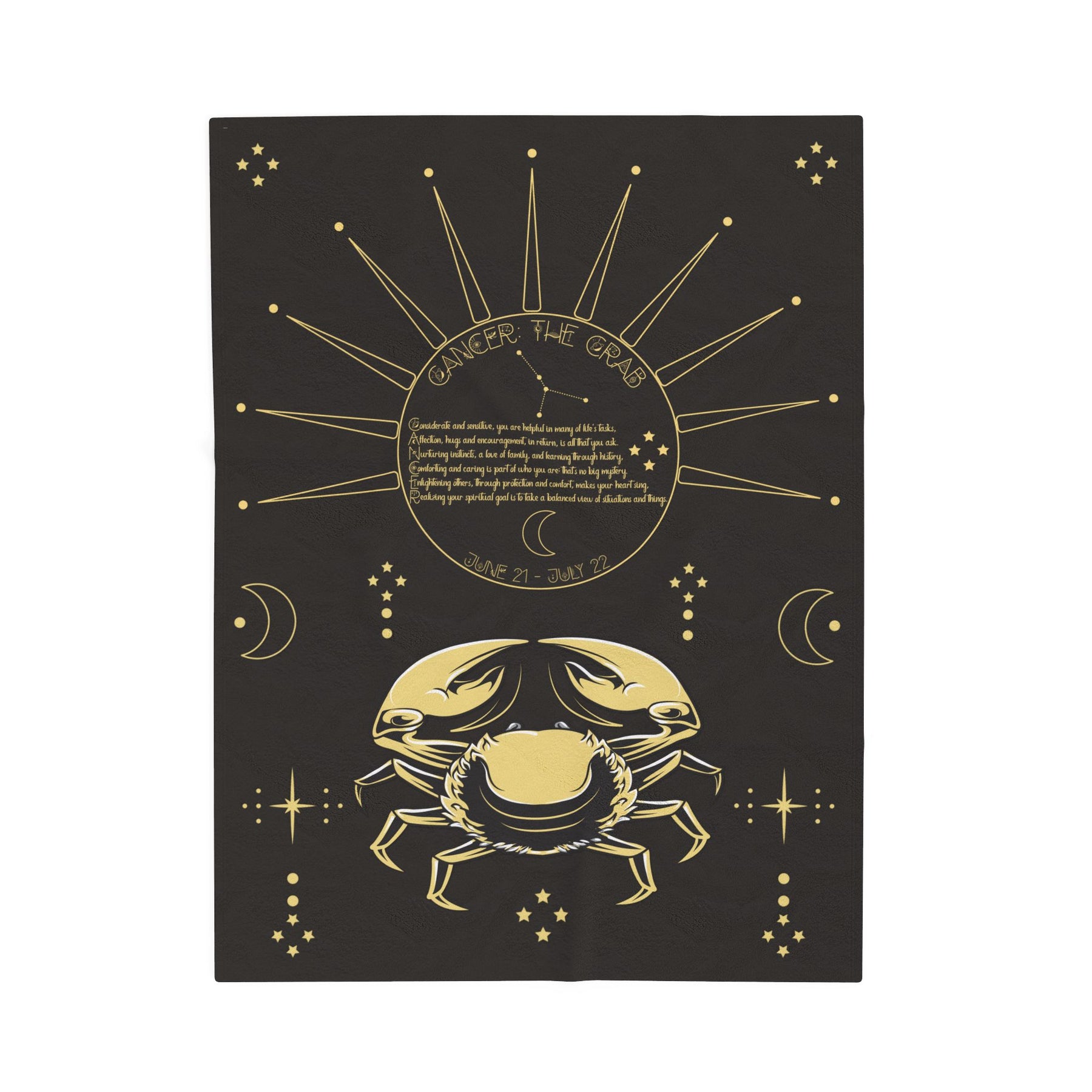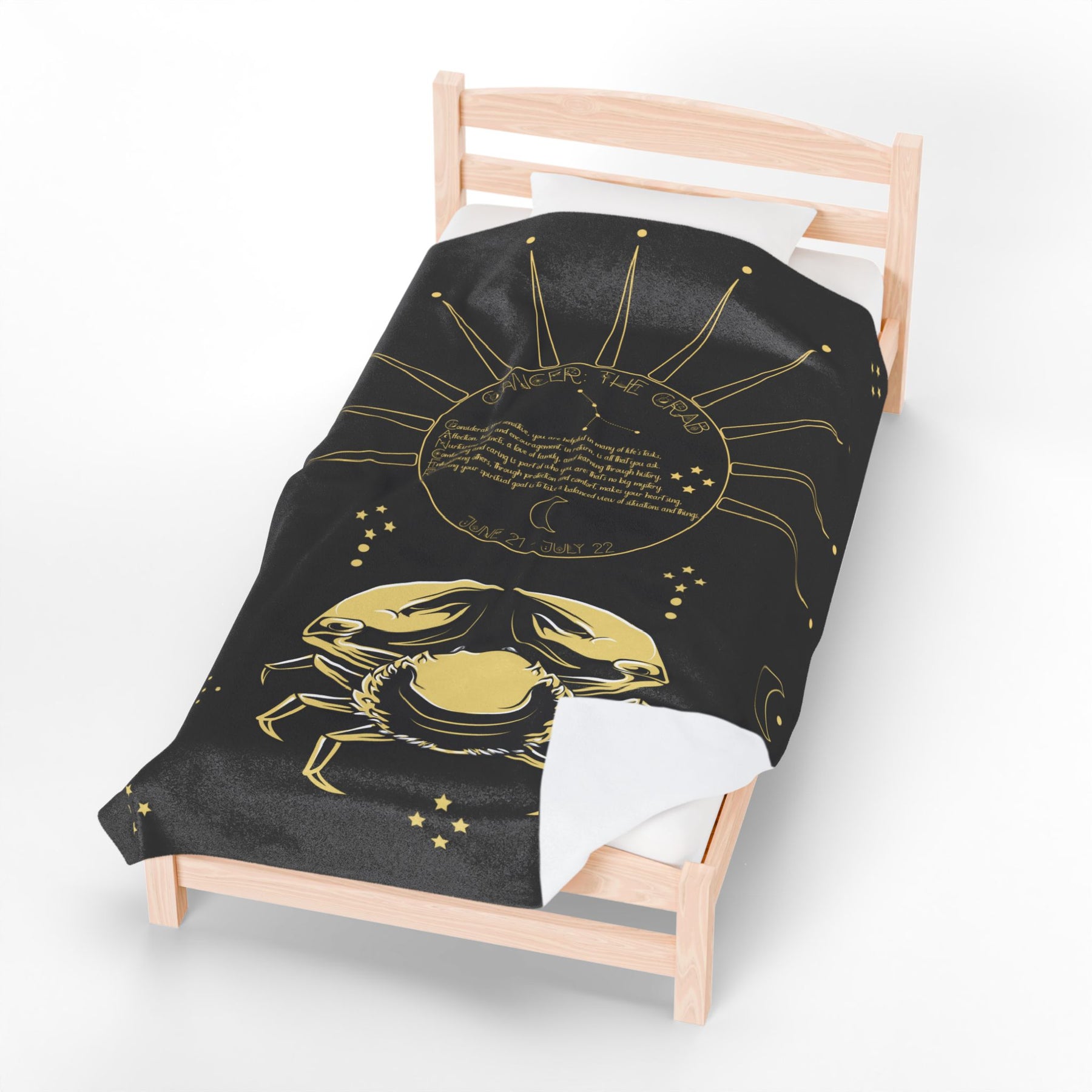 Moments in Rhyme introduces our Written in the Stars Blanket Collection. Welcome to your new favorite blanket. Take the stars with you wherever you go with this beautiful Velveteen plush blanket. Its acrostic poem spells out Cancer with a large, unique graphic of Cancer the Crab, making it the perfect Christmas or birthday gift for any astrology lover. These blankets are delicate, soft, and vibrant. Ideal for outdoor events and cozy winter snuggles. The unique Celestial font adds an extra charm. Made from 83% Polyester and 17% Spandex, a medium- to heavyweight fabric that feels exceptionally soft to the touch. Available in three sizes.