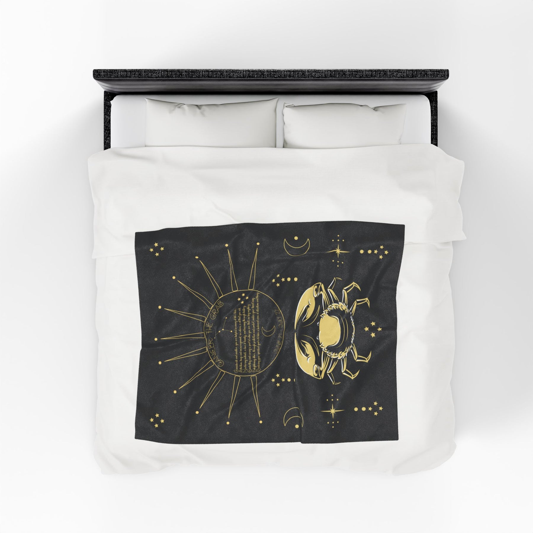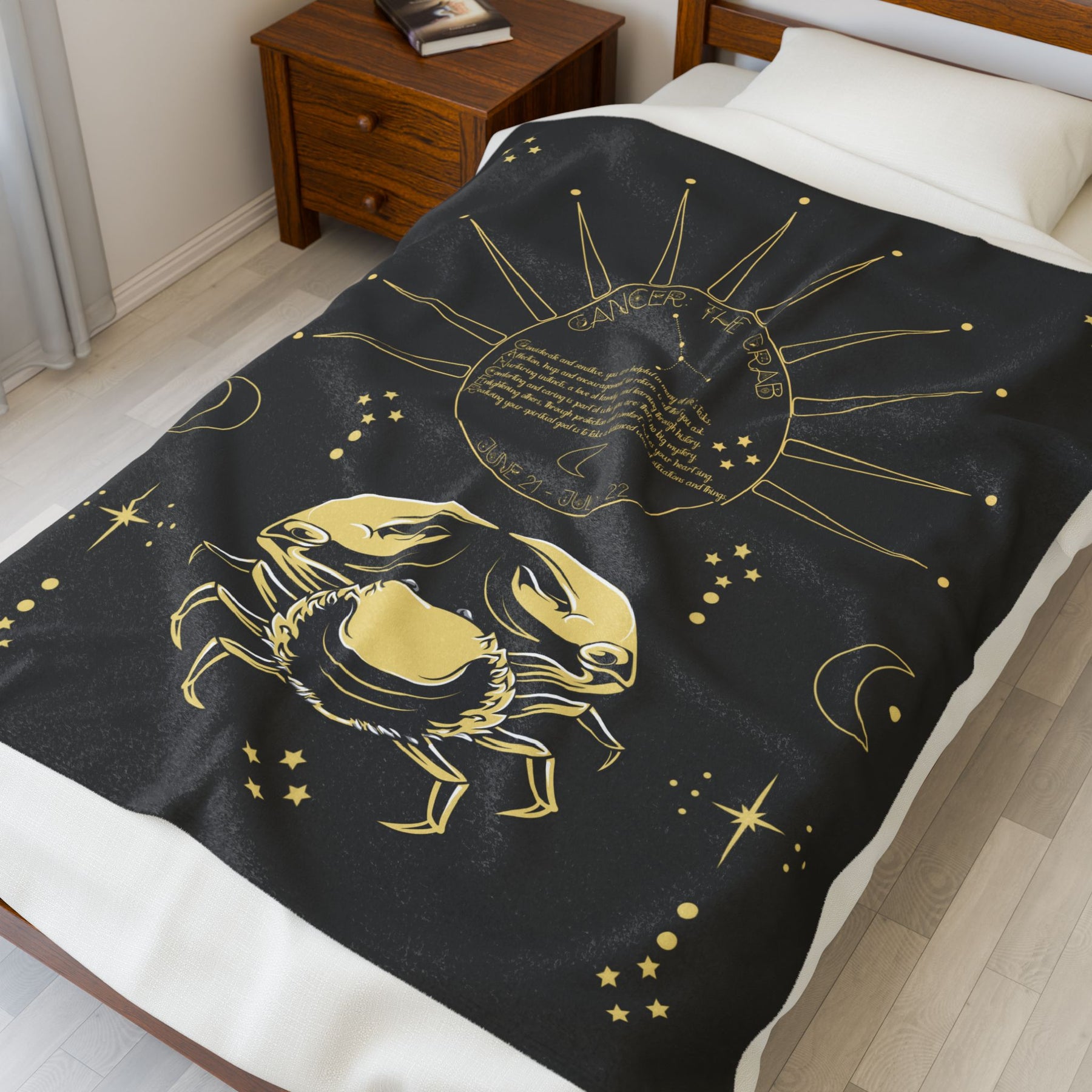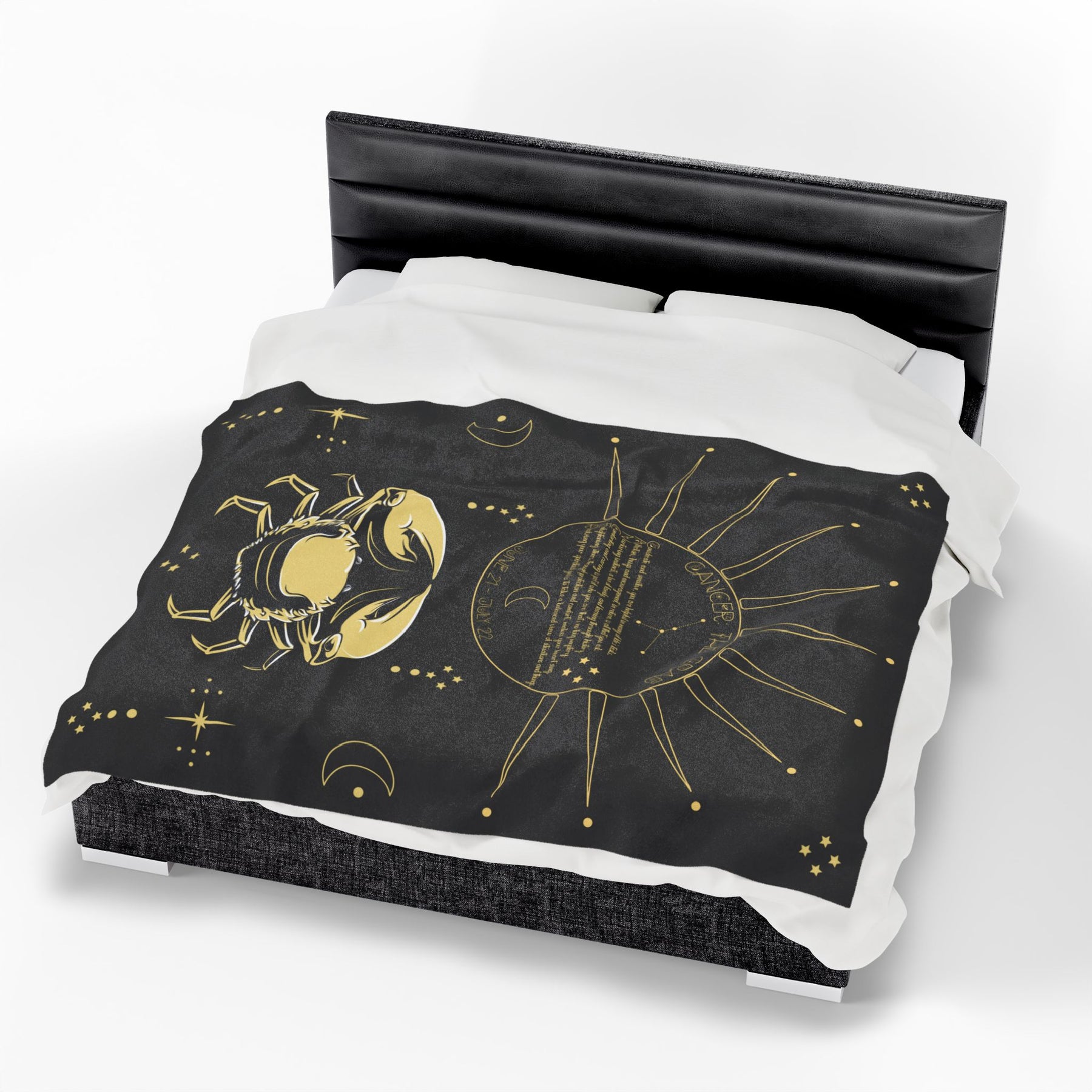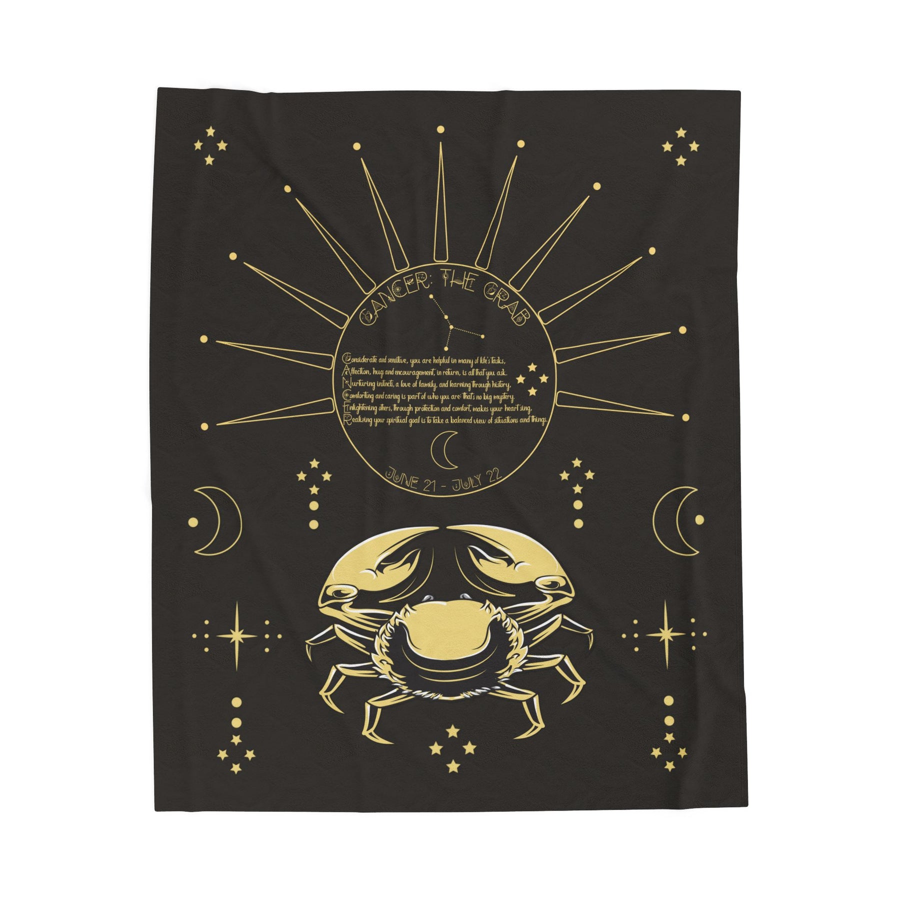Moments in Rhyme introduces our Written in the Stars Blanket Collection. Welcome to your new favorite blanket. Take the stars with you wherever you go with this beautiful Velveteen plush blanket. Its acrostic poem spells out Cancer with a large, unique graphic of Cancer the Crab, making it the perfect Christmas or birthday gift for any astrology lover. These blankets are delicate, soft, and vibrant. Ideal for outdoor events and cozy winter snuggles. The unique Celestial font adds an extra charm. Made from 83% Polyester and 17% Spandex, a medium- to heavyweight fabric that feels exceptionally soft to the touch. Available in three sizes.