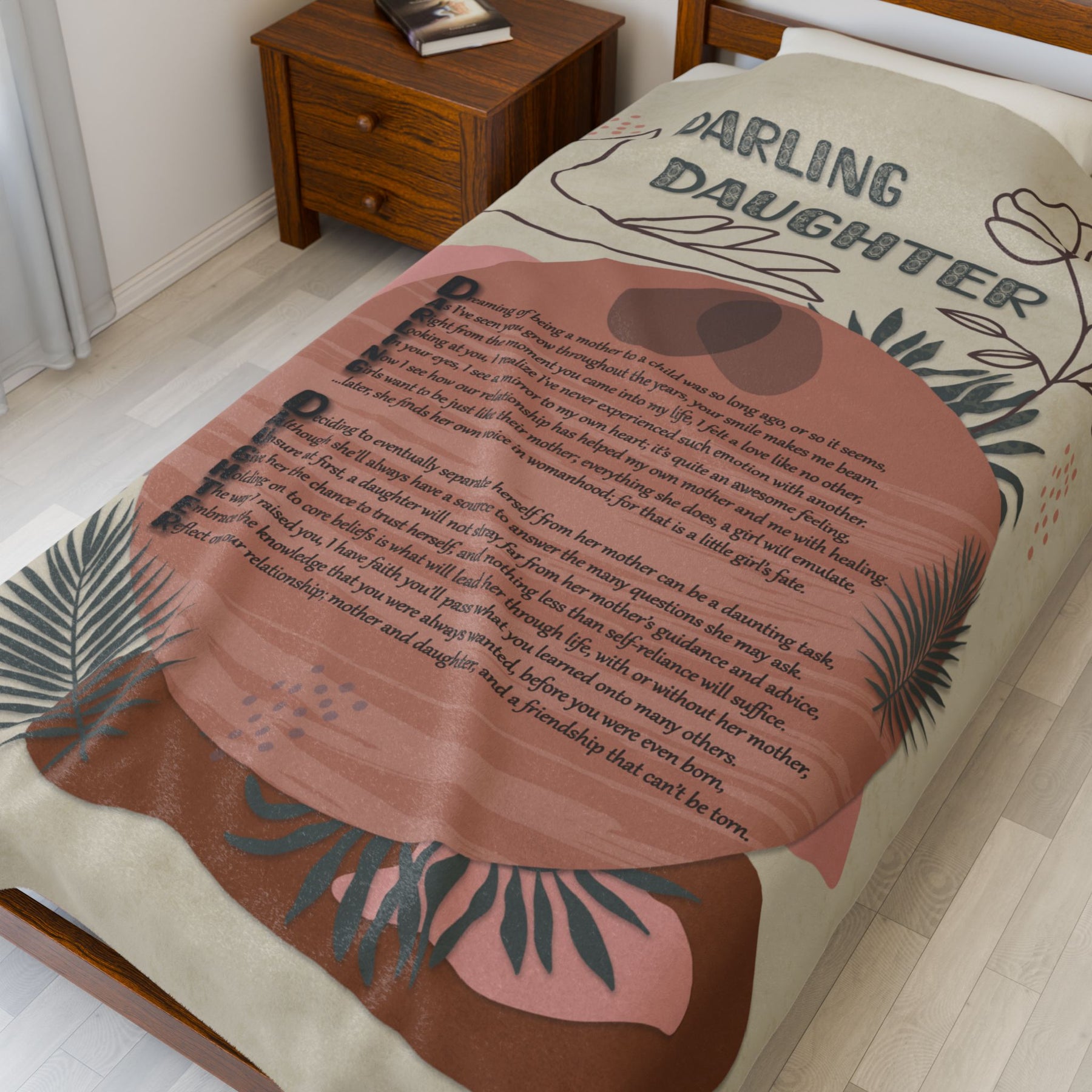Let your precious daughter experience ultimate comfort with our It’s Just a Phrase Velveteen Plush Blanket, featuring an acrostic poem that spells out Darling Daughter. This isn't just any gift for her, it's a symbol of love and appreciation. Made with the highest quality materials, this blanket is delicate, soft, and vibrant. Whether she's snuggled up indoors or enjoying outdoor events, this blanket will keep her warm and cozy. It's the perfect gift to show her how much she means to you. Don't wait, give your Mom the gift of comfort for years to come! Made from 83% Polyester and 17% Spandex, a medium- to heavyweight fabric that feels exceptionally soft to the touch. Available in three sizes.
