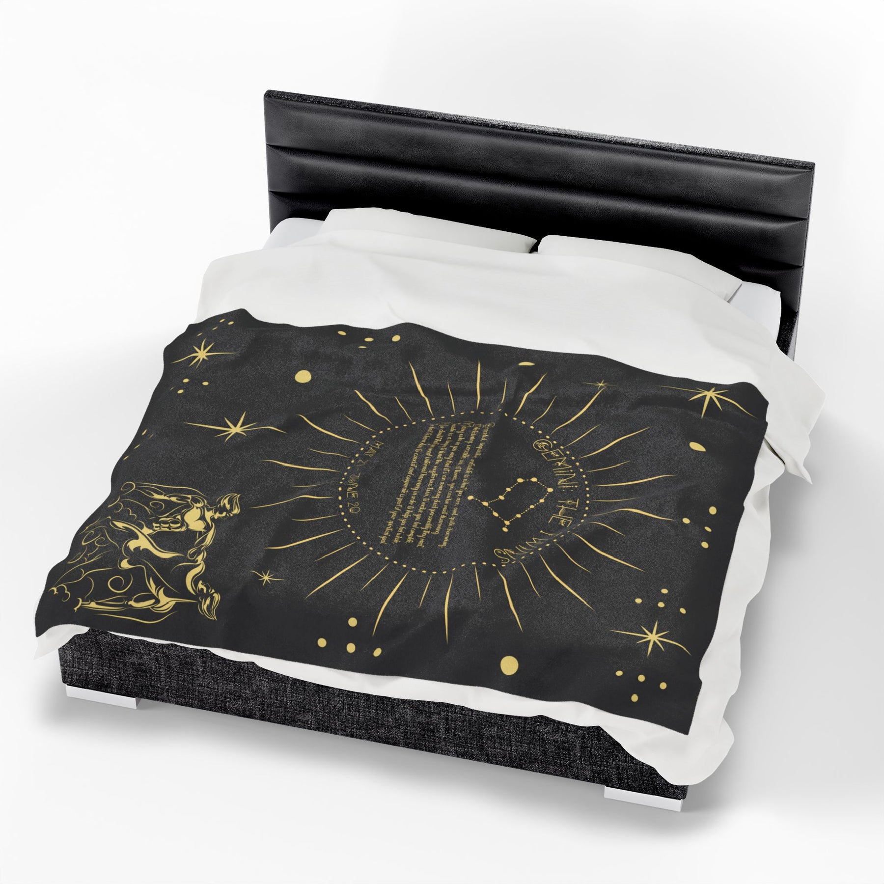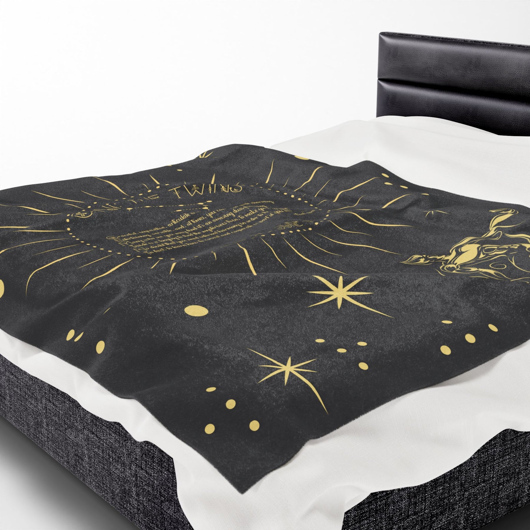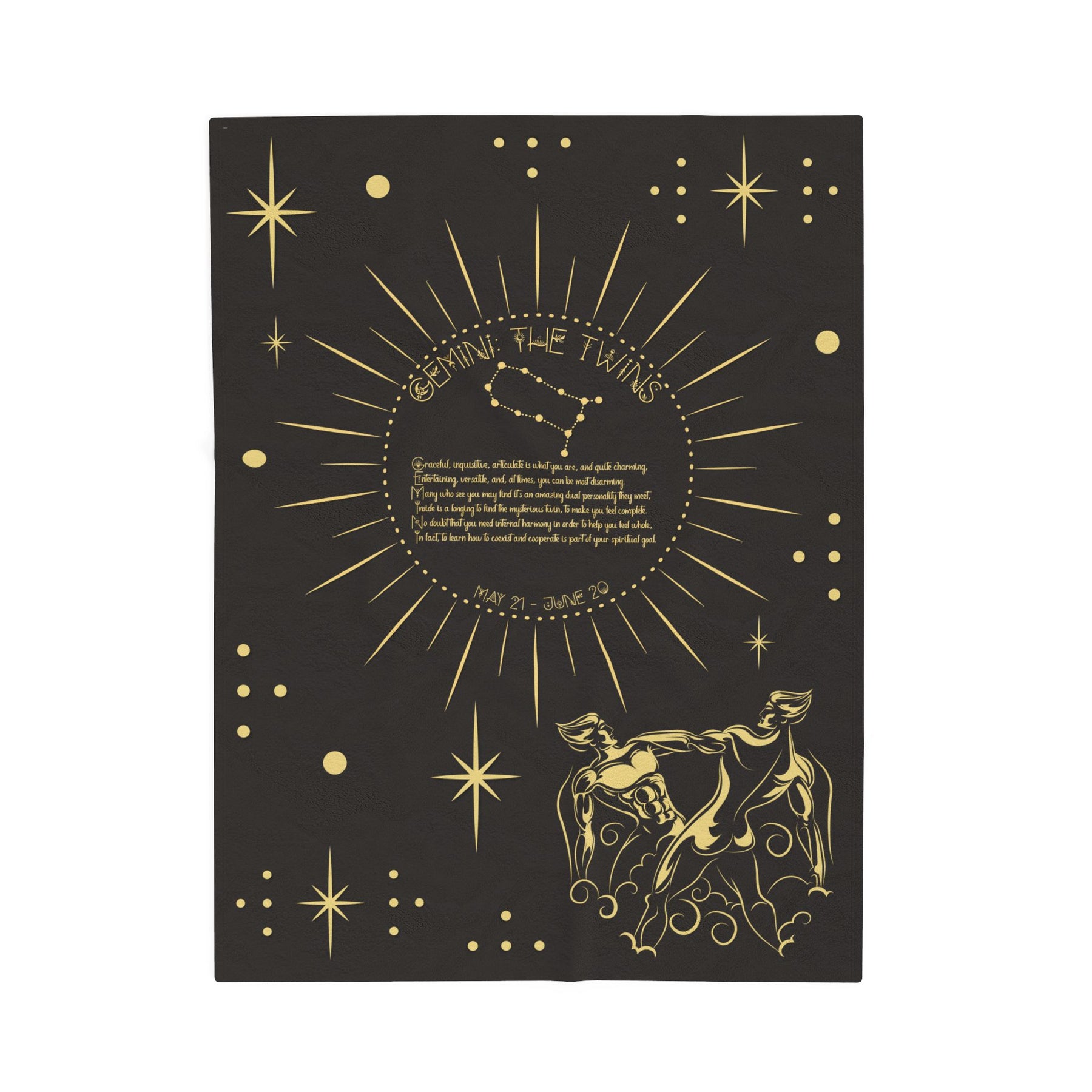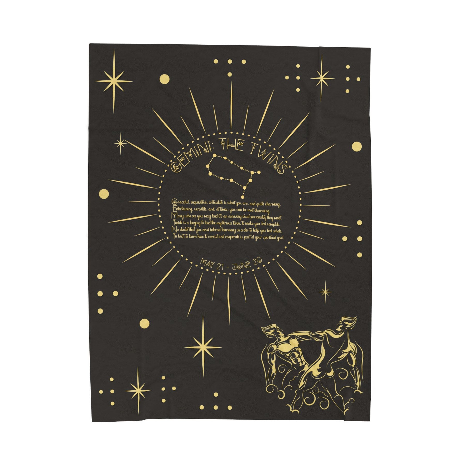 Moments in Rhyme introduces our Written in the Stars Blanket Collection. Welcome to your new favorite blanket. Take the stars with you with this beautiful Velveteen plush blanket. Its acrostic poem spells out Gemini with a large, unique graphic of Gemini the Twins, making it the perfect Christmas or birthday gift for any astrology lover. These blankets are delicate, soft, and vibrant. Ideal for outdoor events and cozy winter snuggles. The unique Celestial font adds extra charm. Made from 83% Polyester and 17% Spandex, a medium- to heavyweight fabric that feels exceptionally soft to the touch. Available in three sizes.