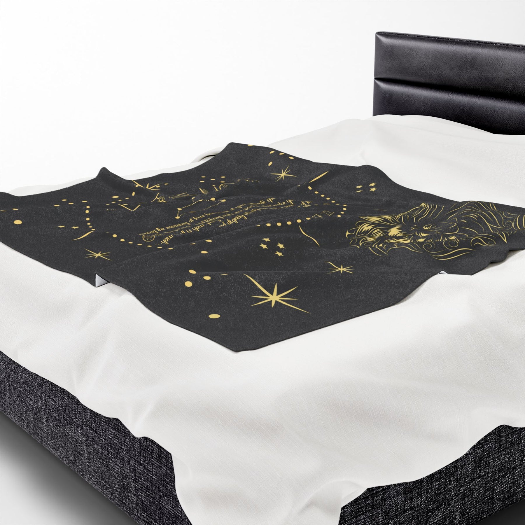Moments in Rhyme introduces our Written in the Stars Blanket Collection. Welcome to your new favorite blanket. Take the stars with you with this beautiful Velveteen plush blanket. Its acrostic poem spells out Leo with a large, unique graphic of Leo the Lion, making it the perfect Christmas or birthday gift for any astrology lover. These blankets are delicate, soft, and vibrant. Ideal for outdoor events and cozy winter snuggles. The unique Celestial font adds extra charm. Made from 83% Polyester and 17% Spandex, a medium- to heavyweight fabric that feels exceptionally soft to the touch. Available in three sizes.