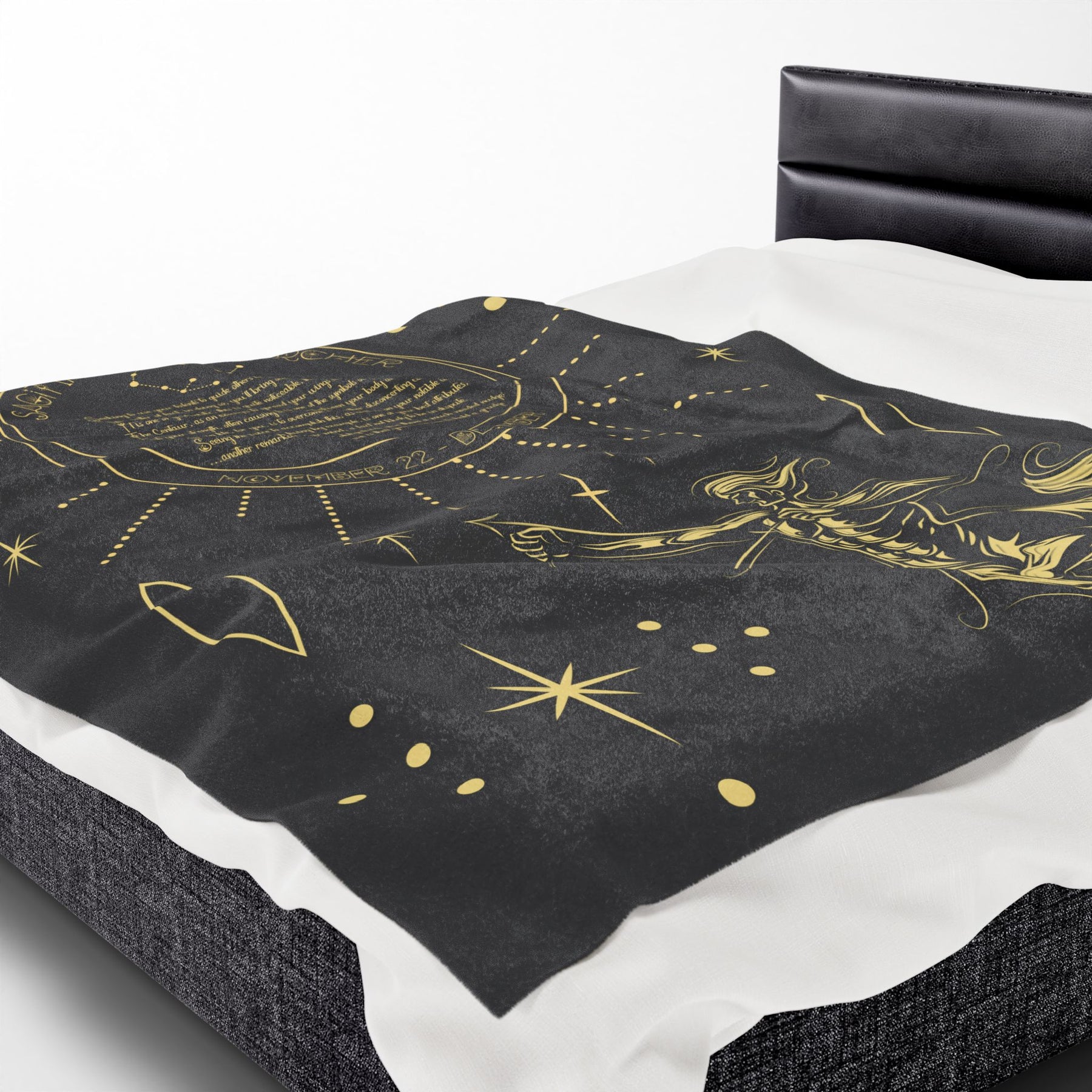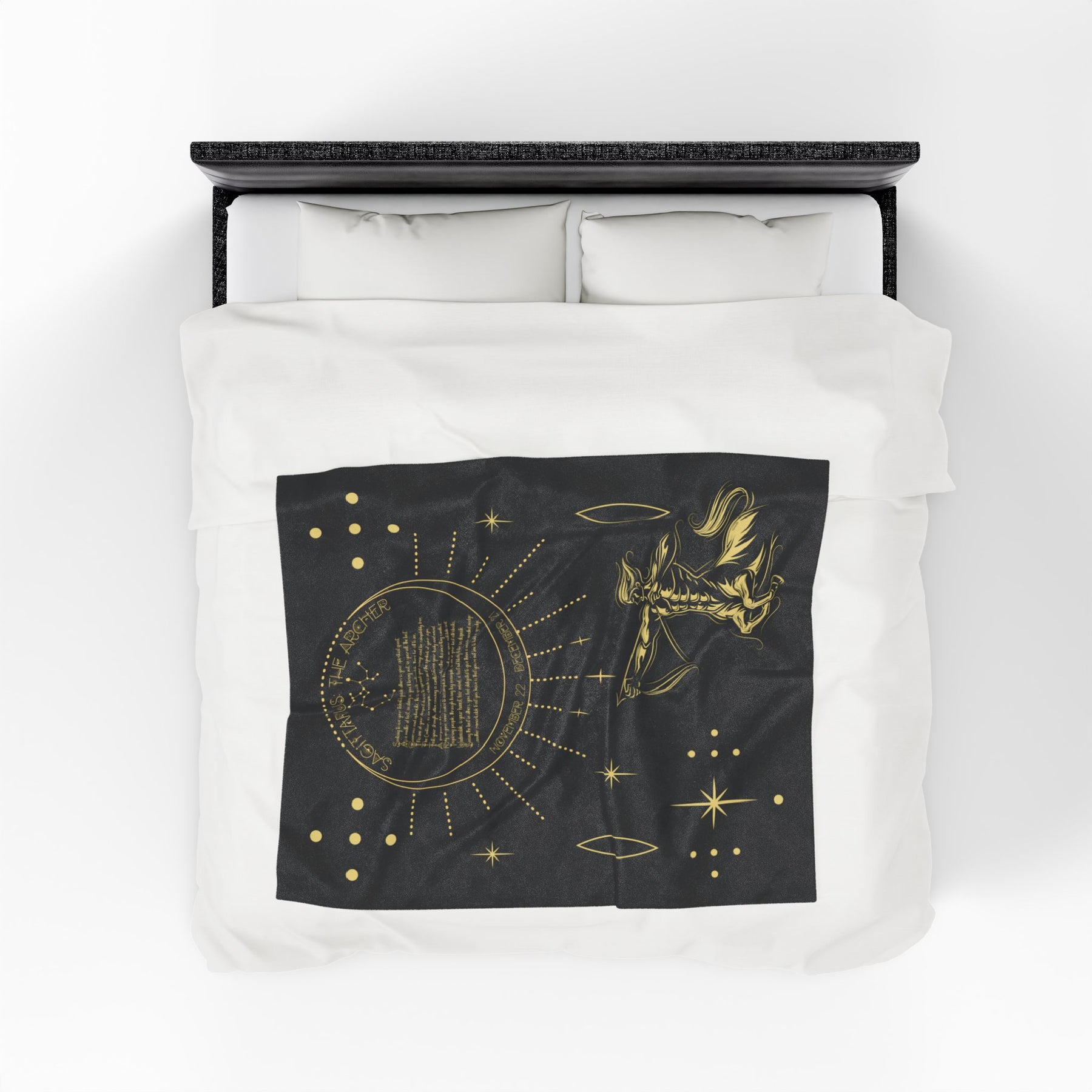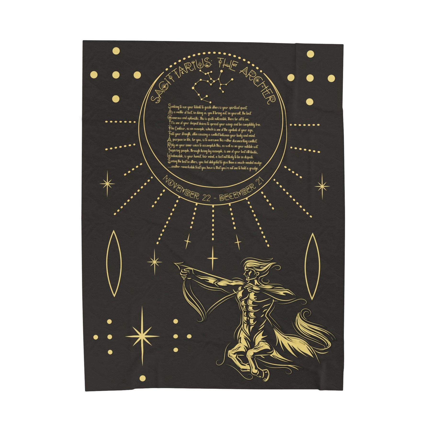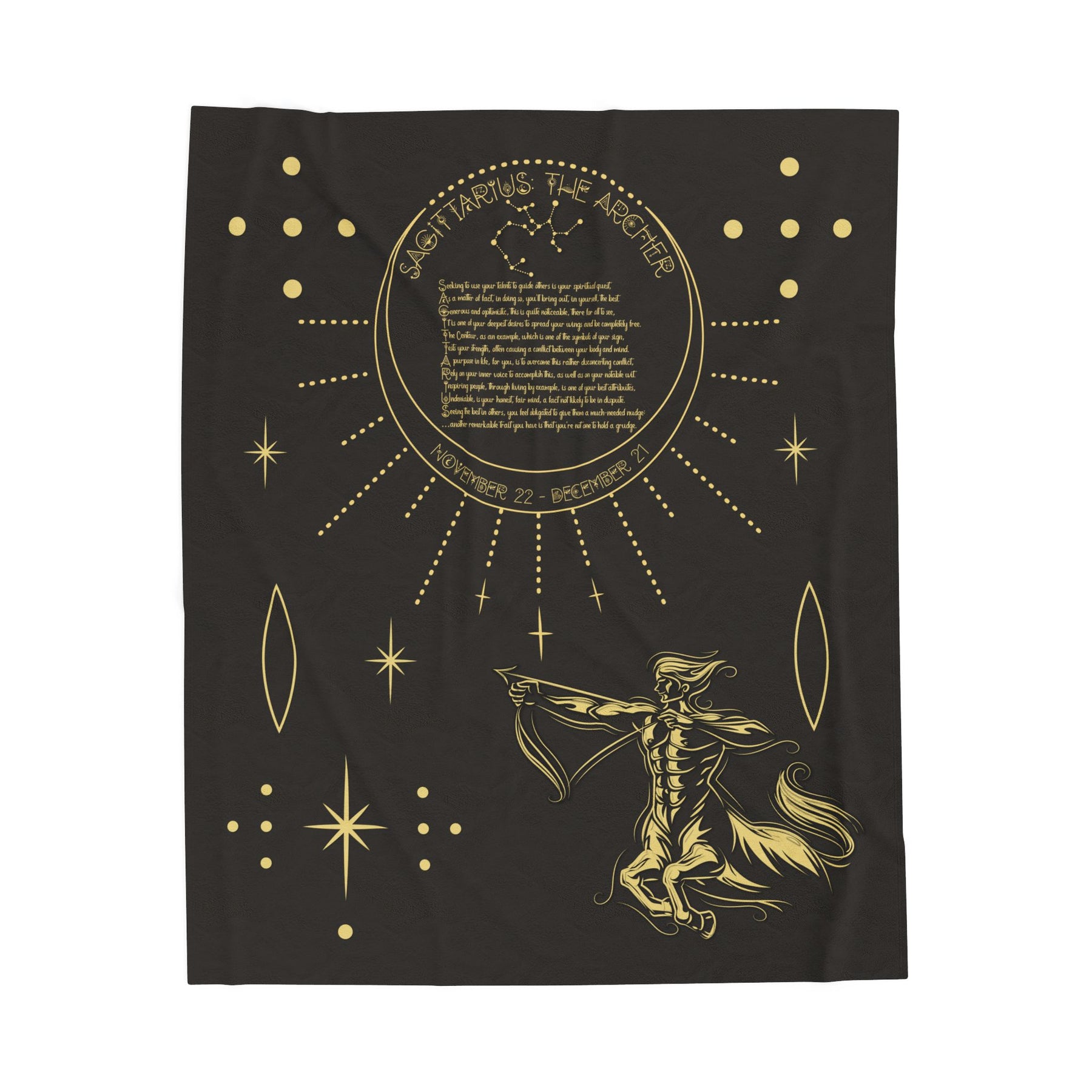 Moments in Rhyme introduces our Written in the Stars Blanket Collection. Welcome to your new favorite blanket. Take the stars with you with this beautiful Velveteen plush blanket. Its acrostic poem spells out Sagittarius with a large, unique graphic of Sagittarius the Archer, making it the perfect Christmas or birthday gift for any astrology lover. These blankets are delicate, soft, and vibrant. Ideal for outdoor events and cozy winter snuggles. The unique Celestial font adds extra charm. Made from 83% Polyester and 17% Spandex, a medium- to heavyweight fabric that feels exceptionally soft to the touch. Available in three sizes.