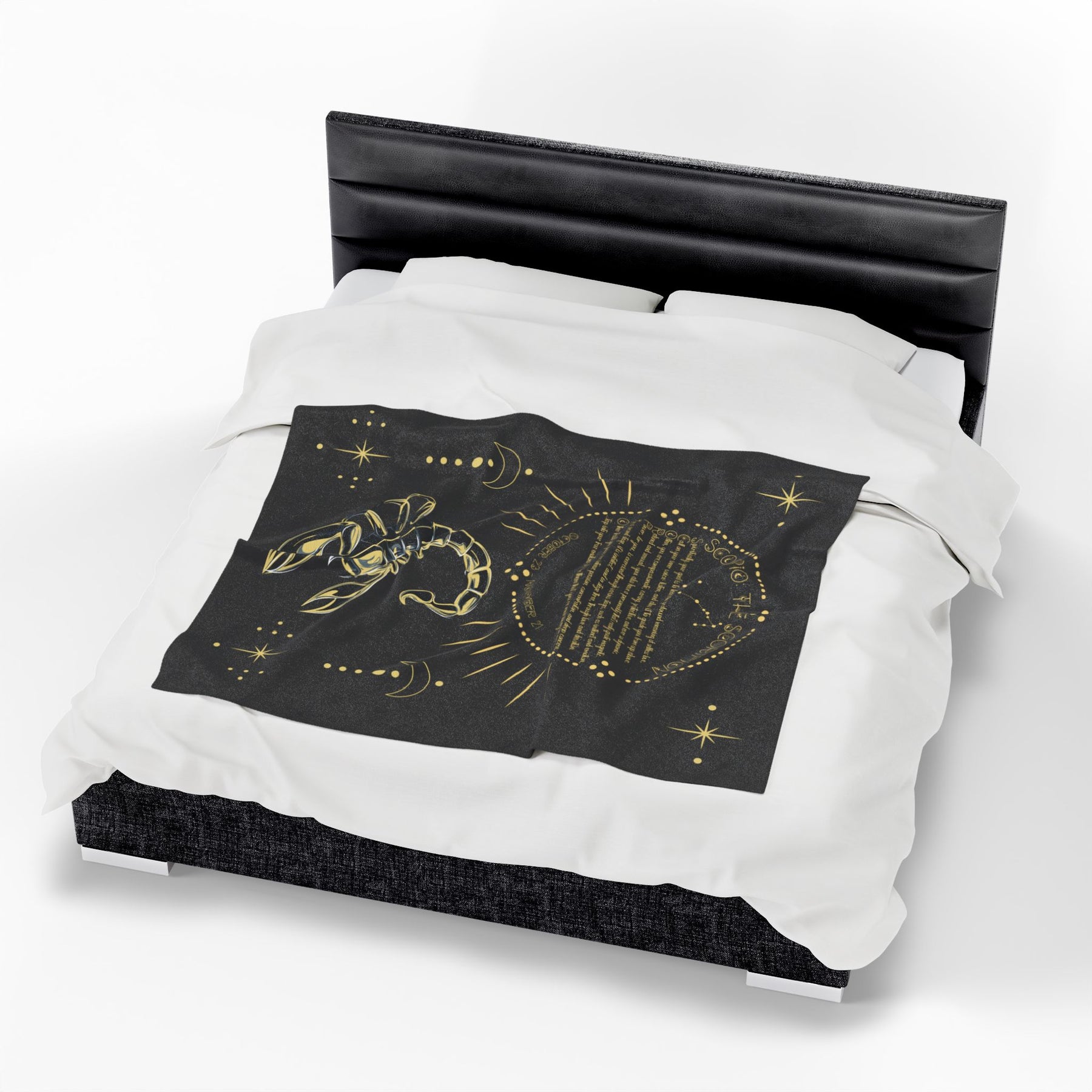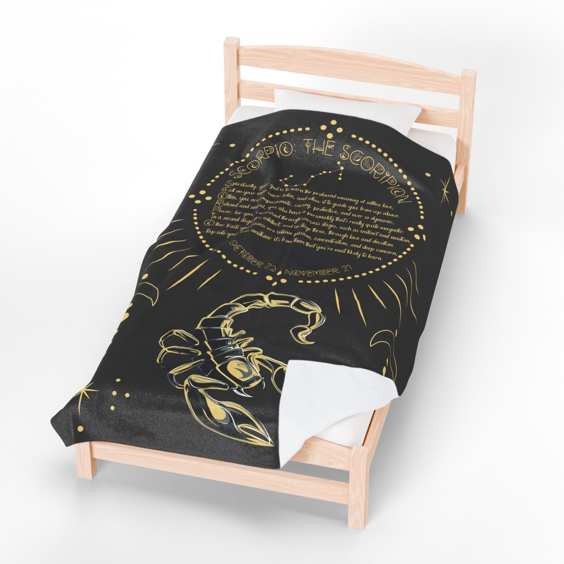 Moments in Rhyme introduces our Written in the Stars Blanket Collection. Welcome to your new favorite blanket. Take the stars with you wherever you go with this beautiful Velveteen plush blanket. Its acrostic poem spells out Scorpio with a large, unique graphic of Scorpio the Scorpion, making it the perfect Christmas or birthday gift for any astrology lover. These blankets are delicate, soft, and vibrant. Ideal for outdoor events and cozy winter snuggles. The unique Celestial font adds an extra charm. Made from 83% Polyester and 17% Spandex, a medium- to heavyweight fabric that feels exceptionally soft to the touch. Available in three sizes.