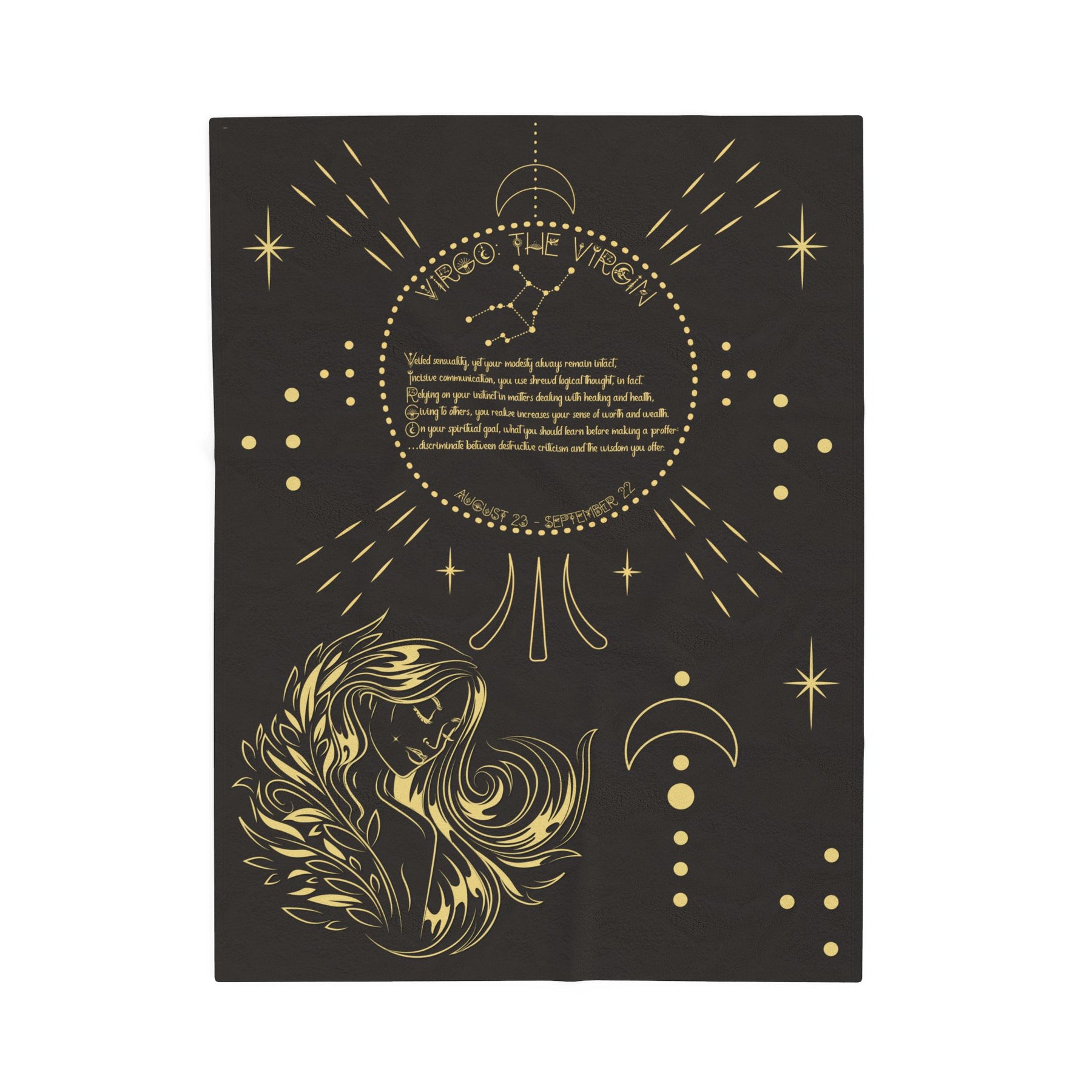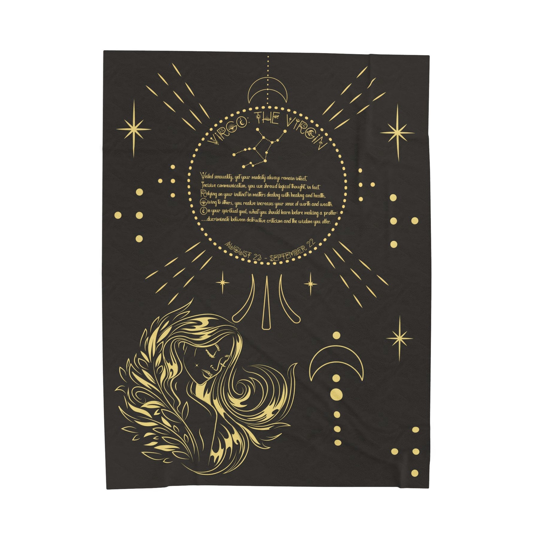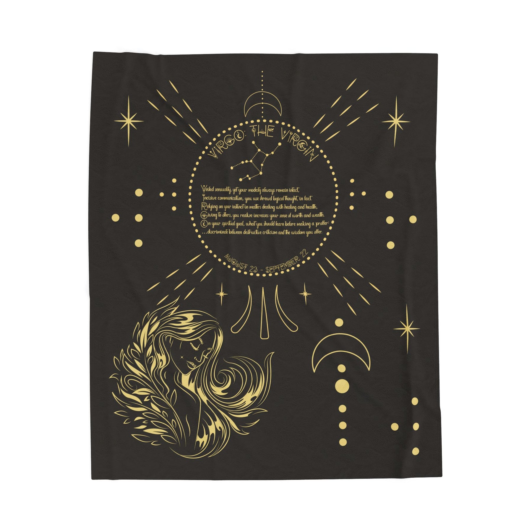 Moments in Rhyme introduces our Written in the Stars Blanket Collection. Welcome to your new favorite blanket. Take the stars with you with this beautiful Velveteen plush blanket. Its acrostic poem spells out Virgo with a large, unique graphic of Virgo the Virgin, making it the perfect Christmas or birthday gift for any astrology lover. These blankets are delicate, soft, and vibrant. Ideal for outdoor events and cozy winter snuggles. The unique Celestial font adds extra charm. Made from 83% Polyester and 17% Spandex, a medium- to heavyweight fabric that feels exceptionally soft to the touch. Available in three sizes.