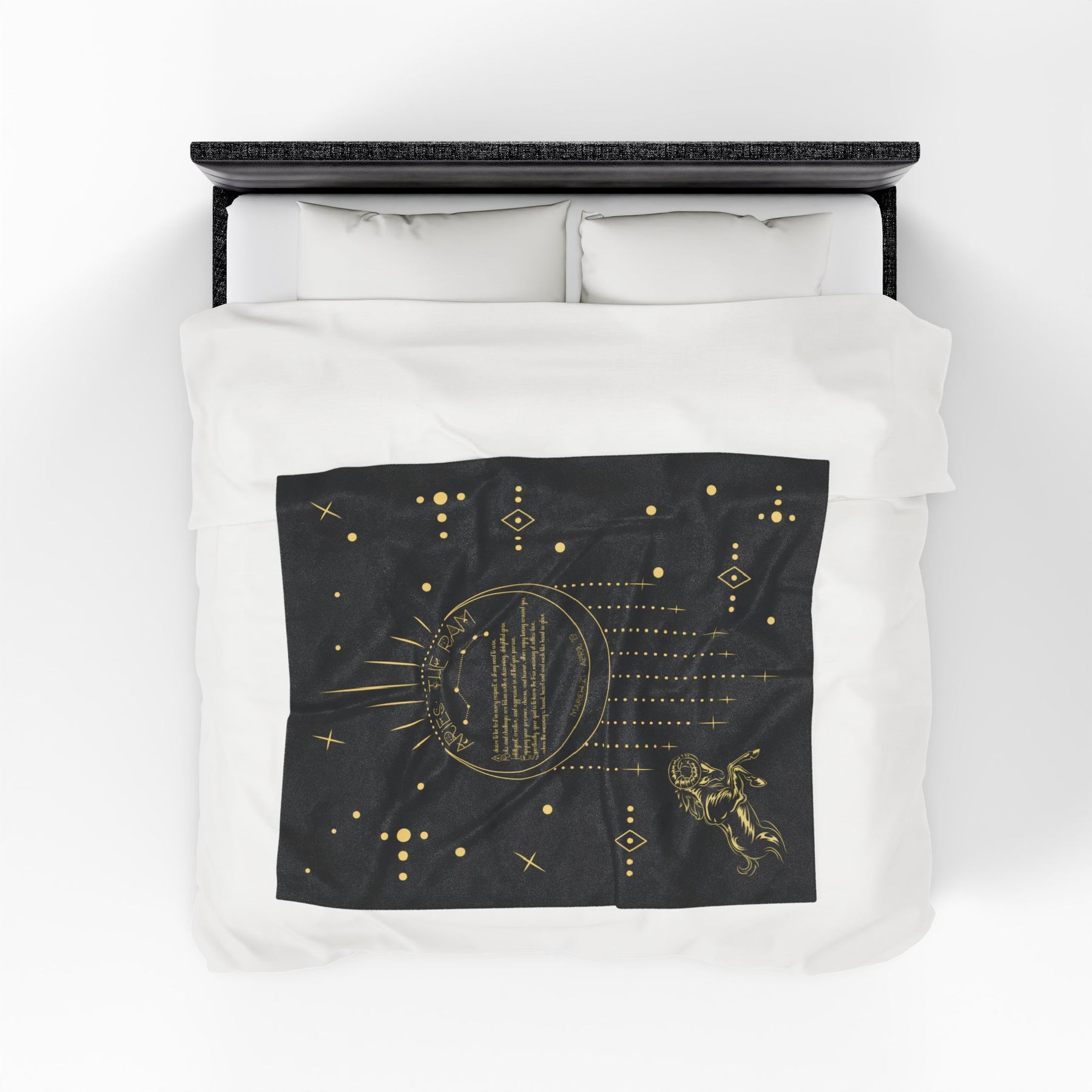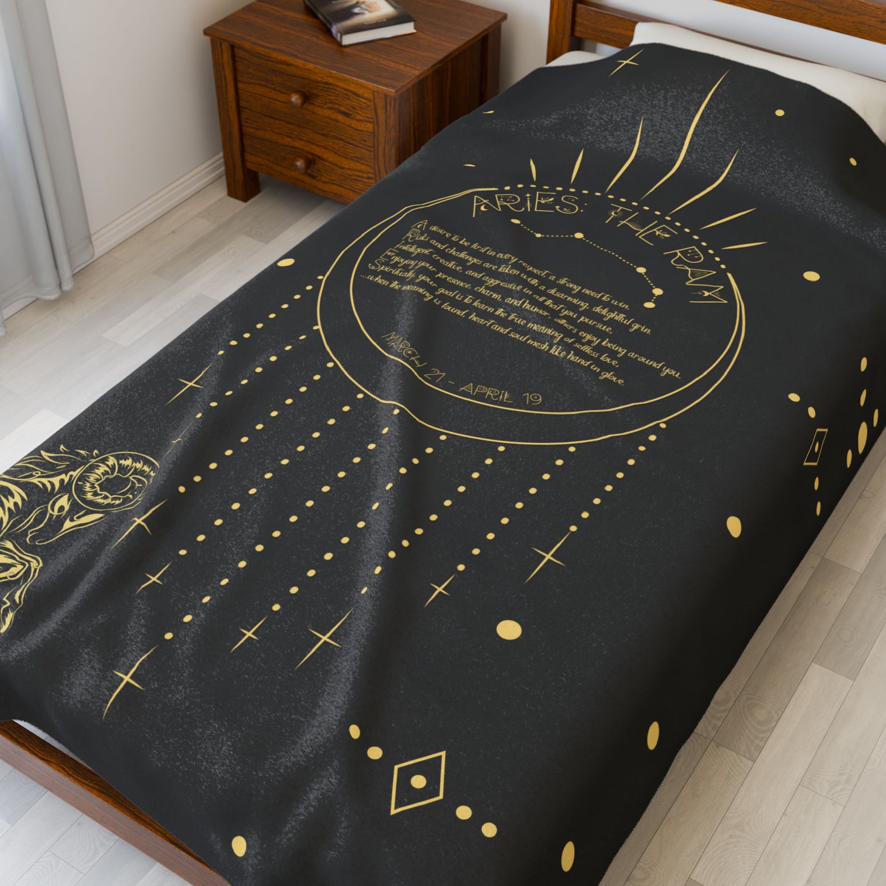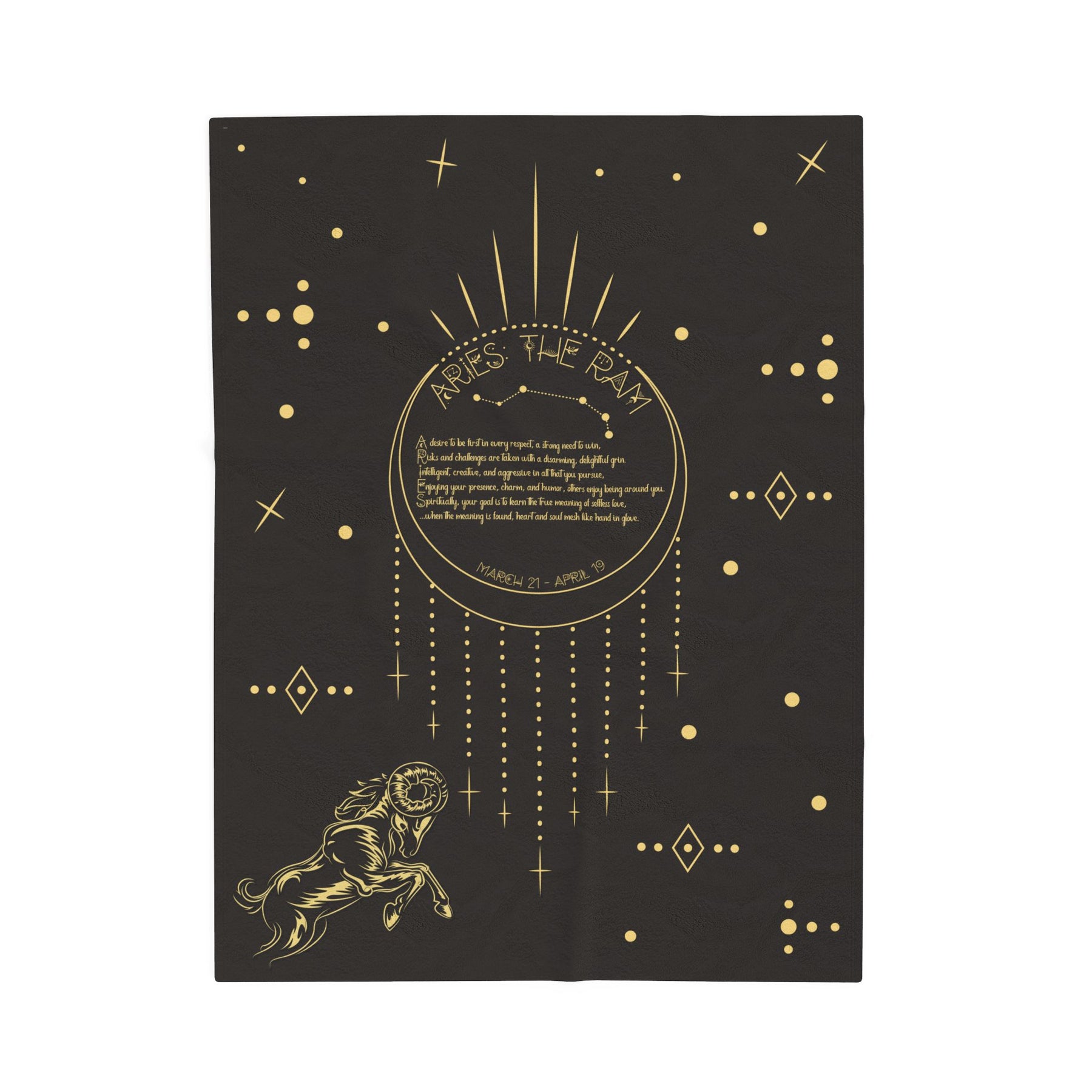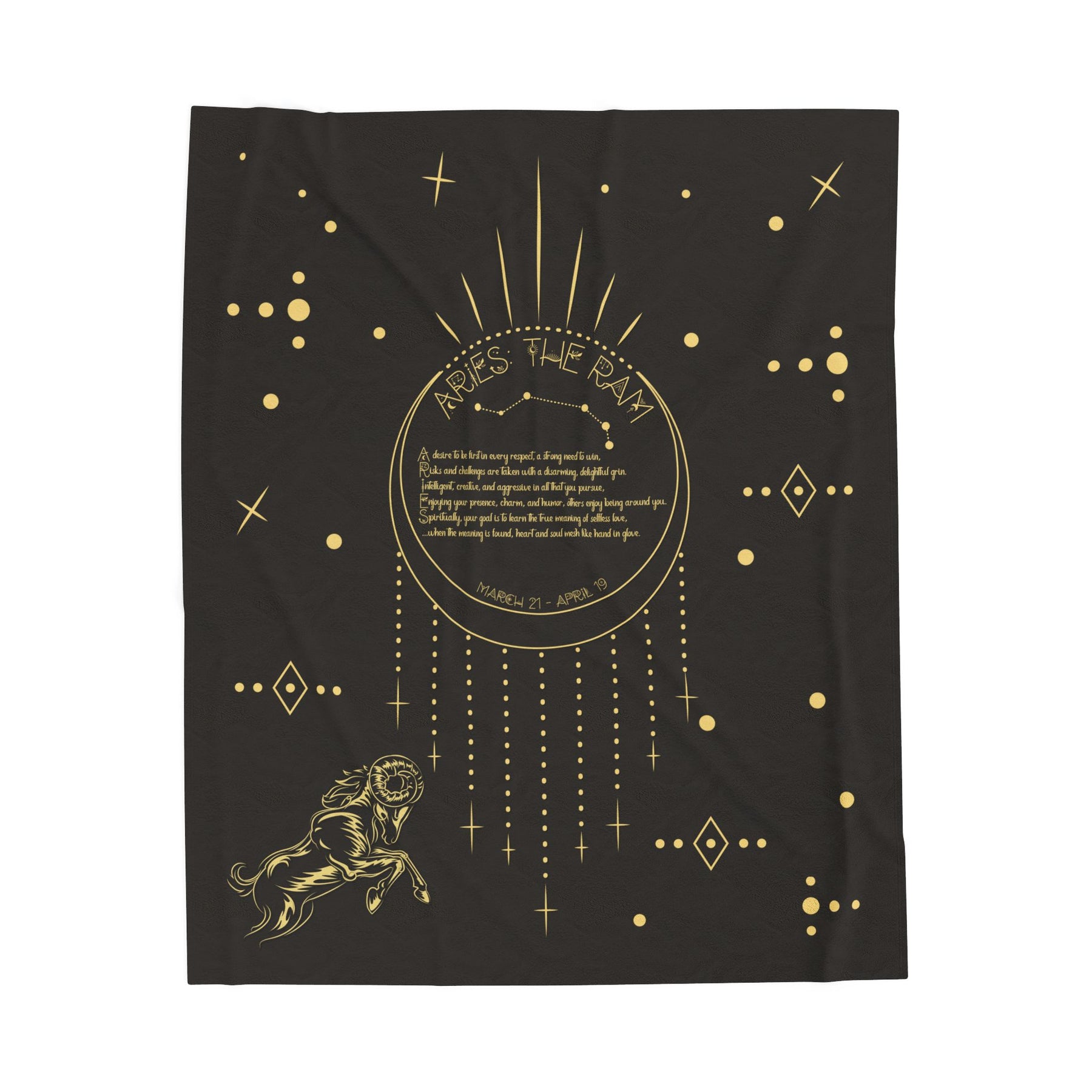 Moments in Rhyme introduces our Written in the Stars Blanket Collection. Welcome to your new favorite blanket. Take the stars with you wherever you go with this beautiful Velveteen plush blanket. Its acrostic poem spells out Aries with a large, unique graphic of Aries the Ram, making it the perfect Christmas or birthday gift for any astrology lover. These blankets are delicate, soft, and vibrant. Perfect for outdoor events and cozy winter snuggles. The unique Celestial font adds an extra charm. Made from 83% Polyester and 17% Spandex, a medium- to heavyweight fabric that feels exceptionally soft to the touch. Available in three sizes.