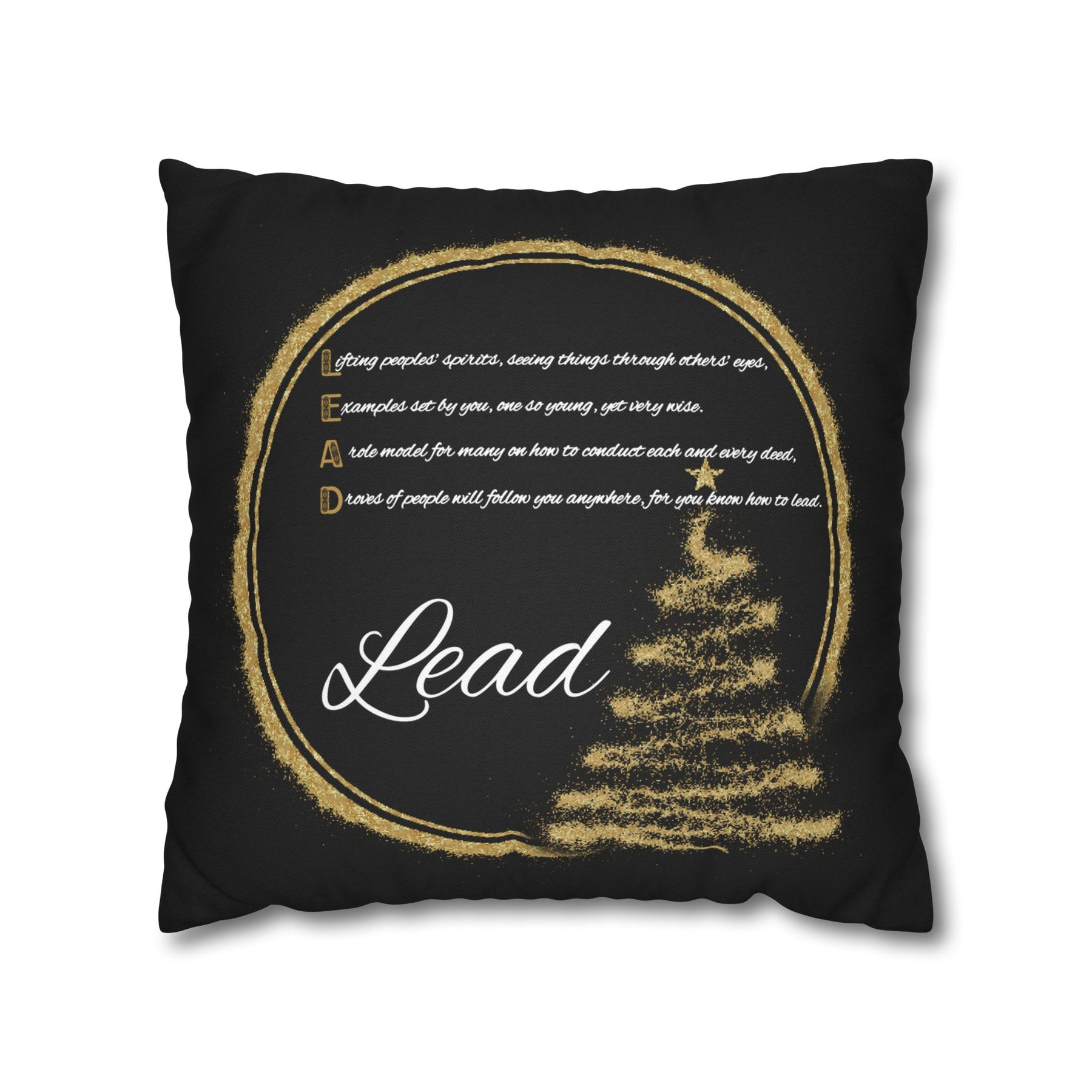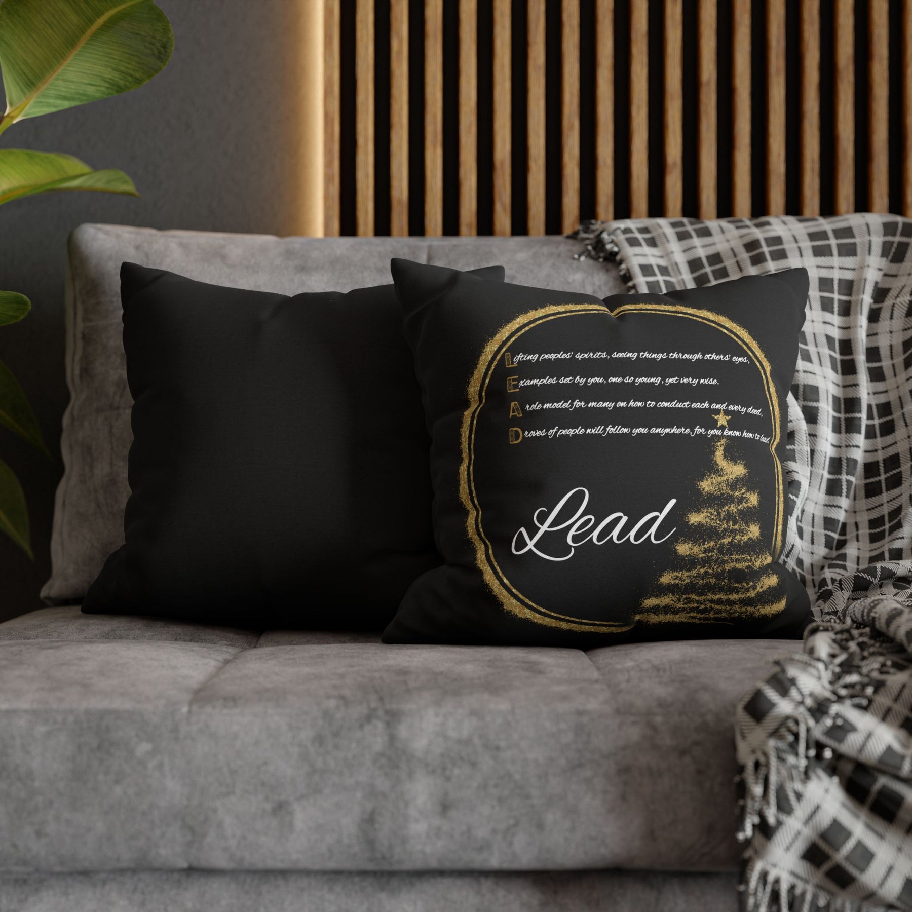 "Lead" Acrostic Poem Pillow Cover from "Learn, Lead, Believe" Collection - Black
