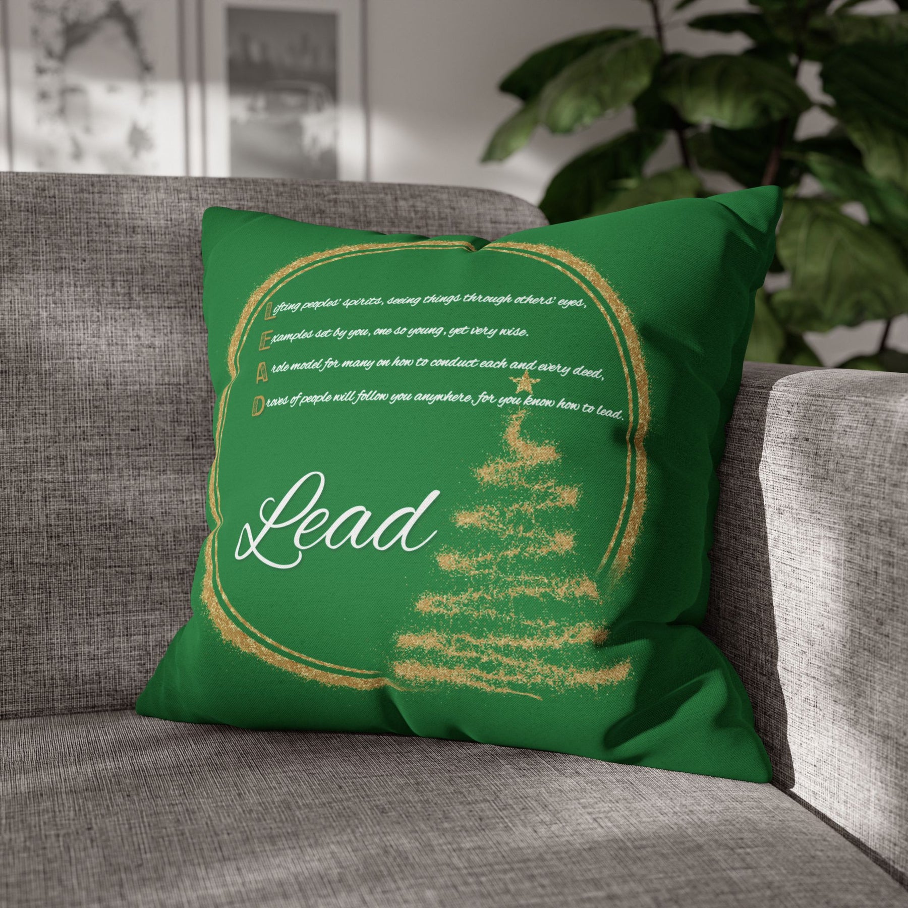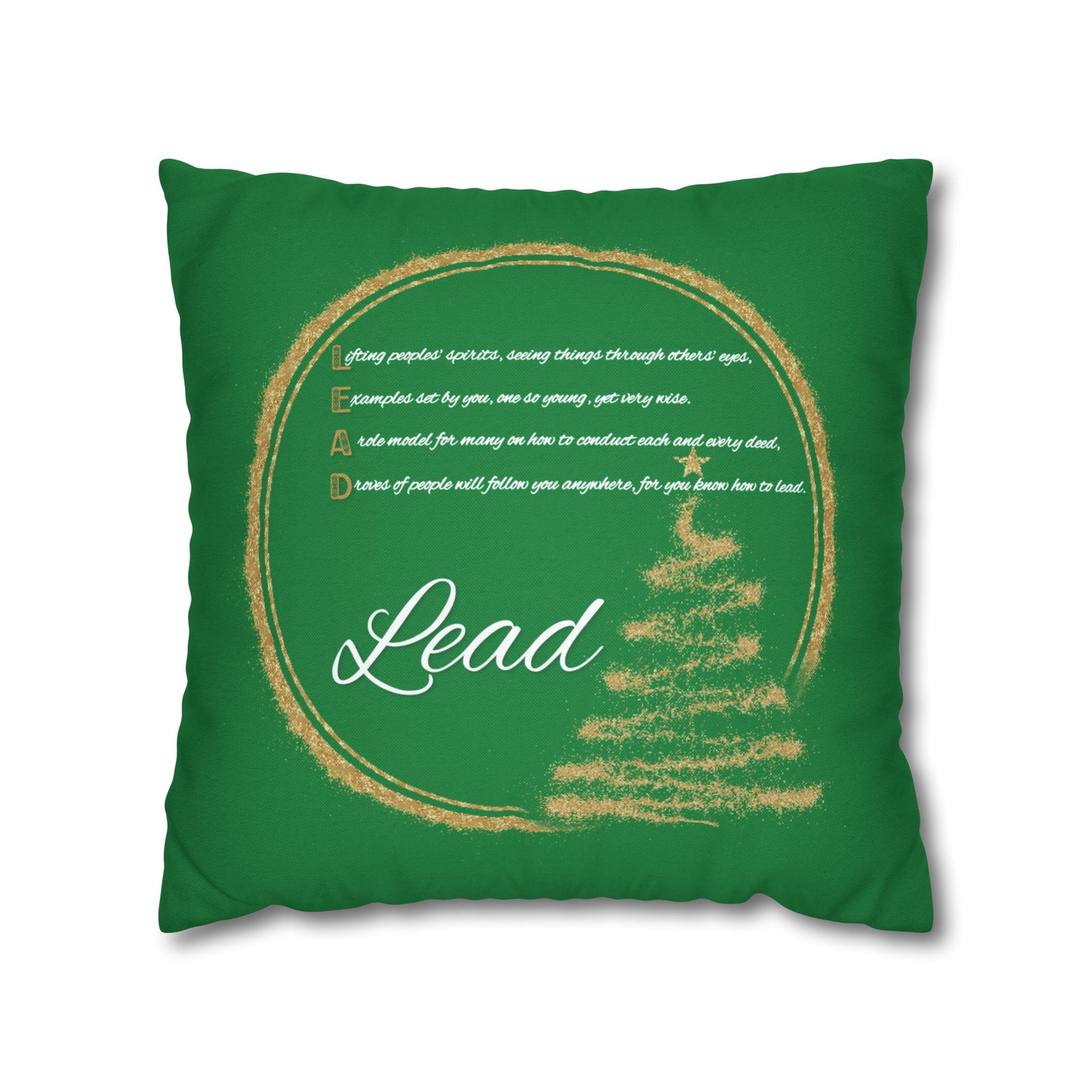 "Lead" Acrostic Poem Pillow Cover from "Learn, Lead, Believe" Collection - Green