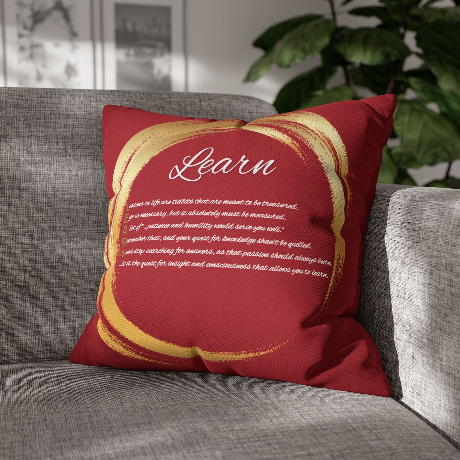 "Learn" Acrostic Poem Pillow Cover from "Learn, Lead, Believe" - Red