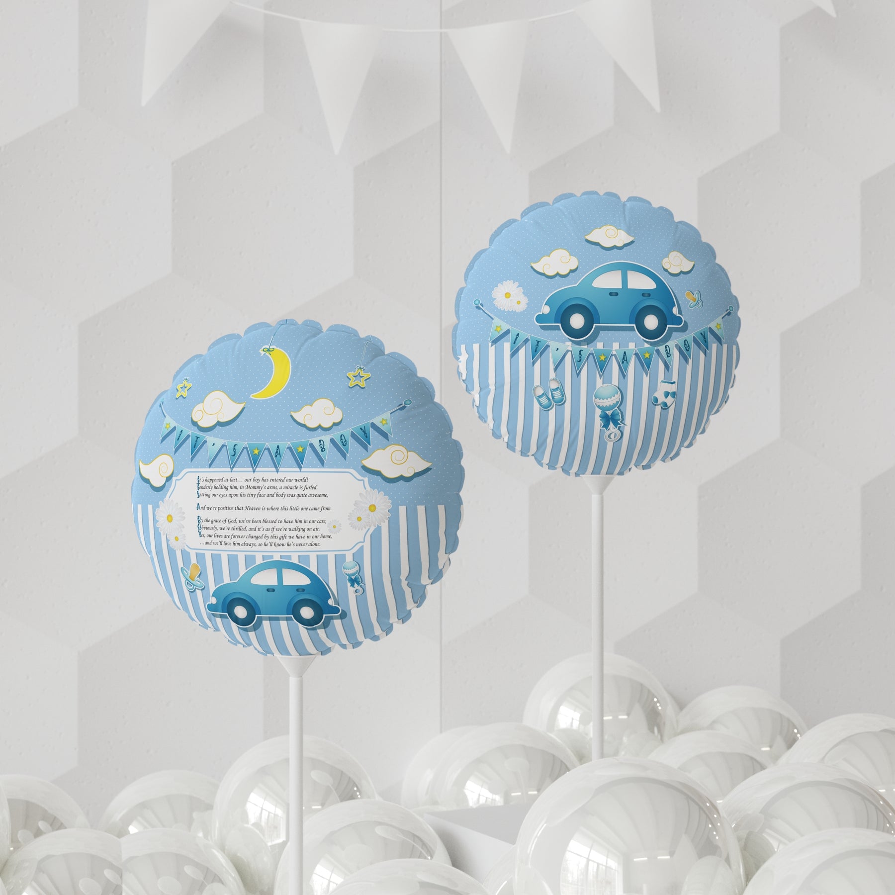 Baby Steps from Moments in Rhyme introduces our Mylar balloons. Such cute decor for your baby shower. These are sure to make your upcoming event a hit! Each balloon features an acrostic poem spelling out It's a Boy. Perfect for adding a festive touch to baby shower decorations! These can be used as both indoor and outdoor decorations. Add a touch of charm to any baby shower with these delightful Baby Steps round balloons with an adorable design!