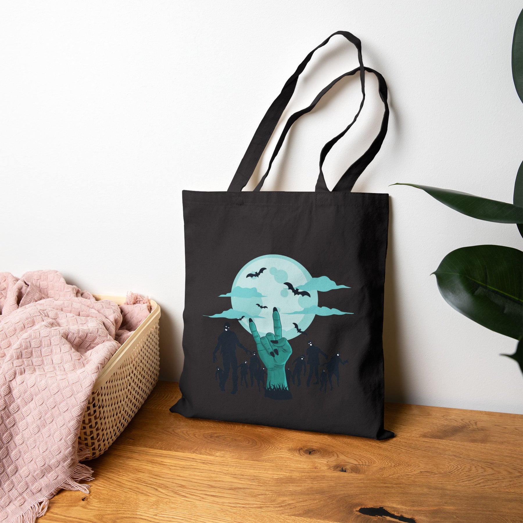 Celebrate Halloween in style with this Happy Halloween Canvas Candy Tote Bag! Featuring a Zombie giving the "Rock On" sign and a playful acrostic poem, it’s the perfect spooky accessory for trick-or-treaters of all ages. Made from durable canvas, this reusable tote is ideal for carrying candy or party essentials year after year. Add a fun, festive touch to your Halloween adventures and let out a cheerful "BOO!" wherever you go!