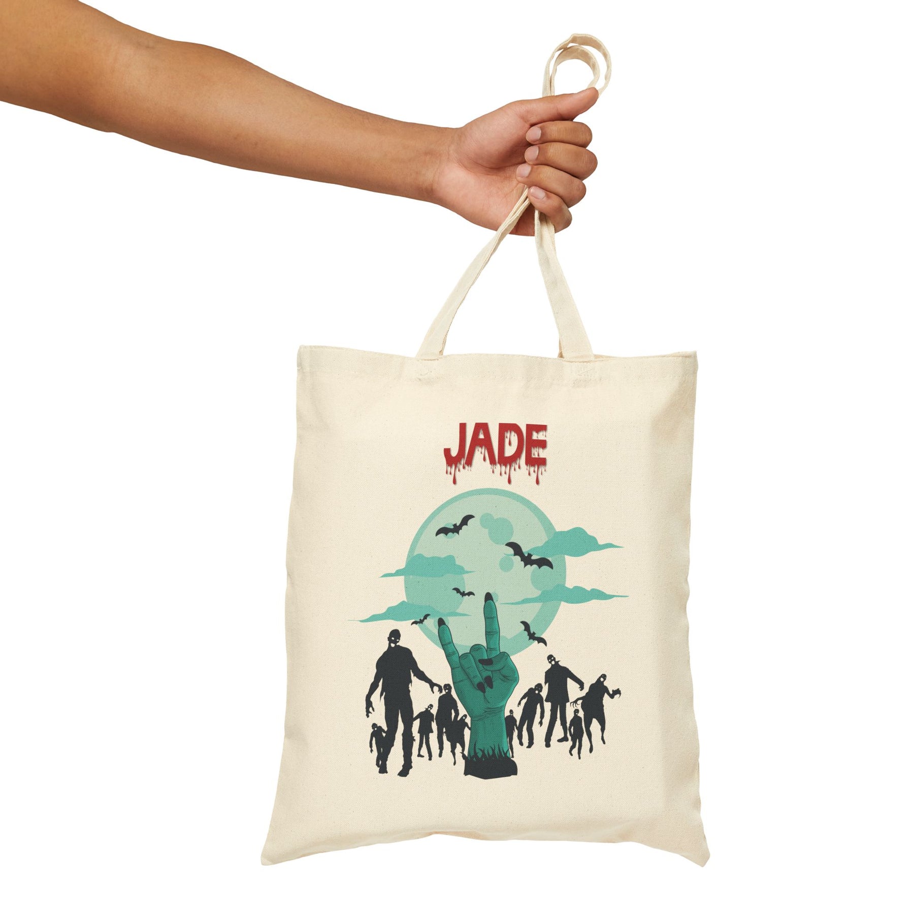 Happy Halloween Canvas Candy Tote Bag - Zombie - Personalized
