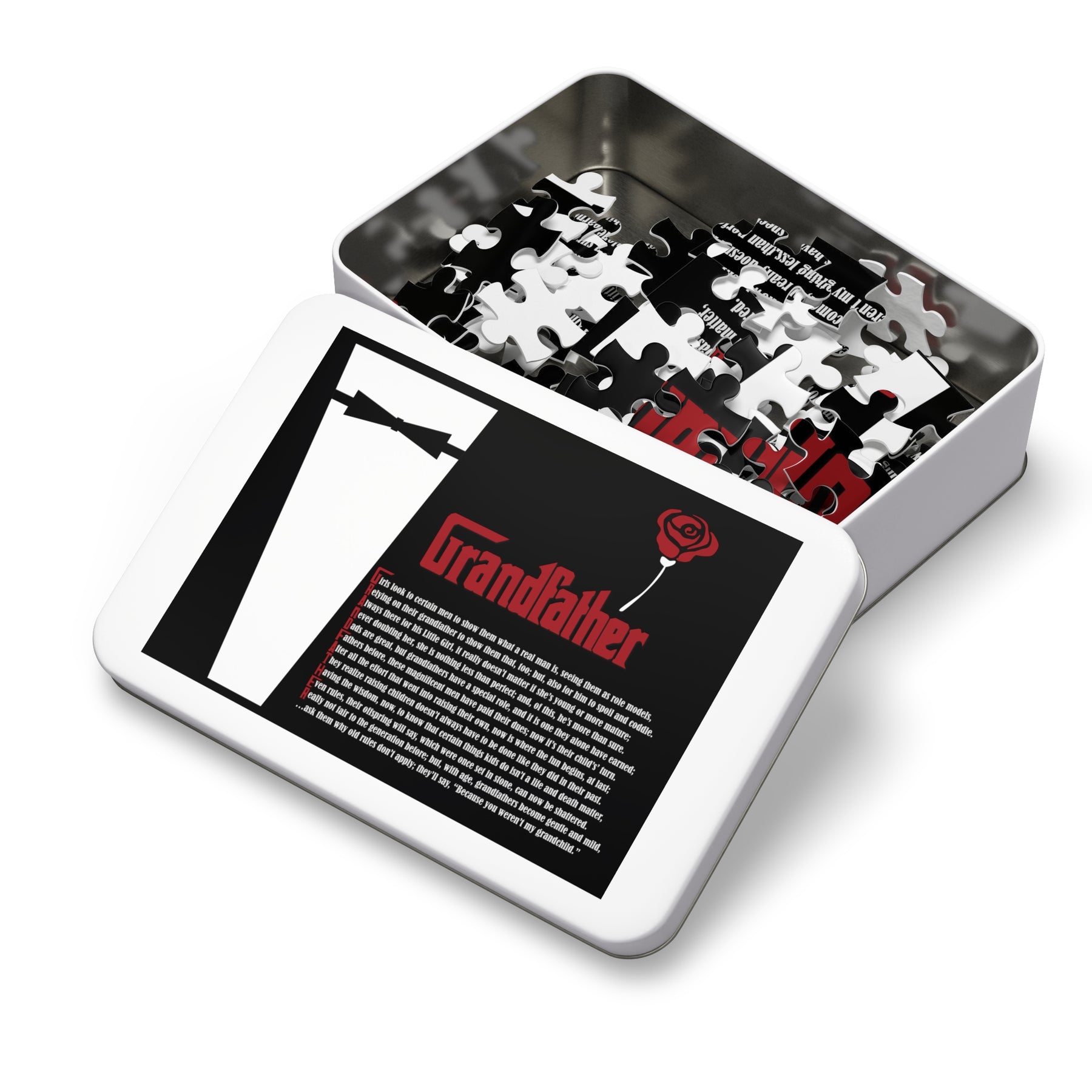 Moments in Rhyme is proud to present a fun acrostic poem puzzle from the It's Just a Phrase collection. Are you searching for the ideal, one-of-a-kind present for your beloved Grandfather? If he enjoys jigsaw puzzles, he'll adore this one. This puzzle will become a treasured possession, providing hours of entertainment. With a charming vintage image and a heartfelt acrostic poem spelling out Grandfather, it's a perfect way to express your bond with one of the most significant men in your life. It's made from sturdy puzzle board with a glossy finish and comes in a gift-ready tin box that shows off the design. Several sizes are available.