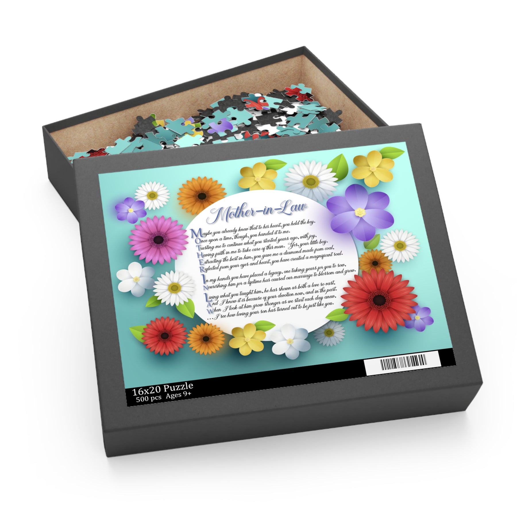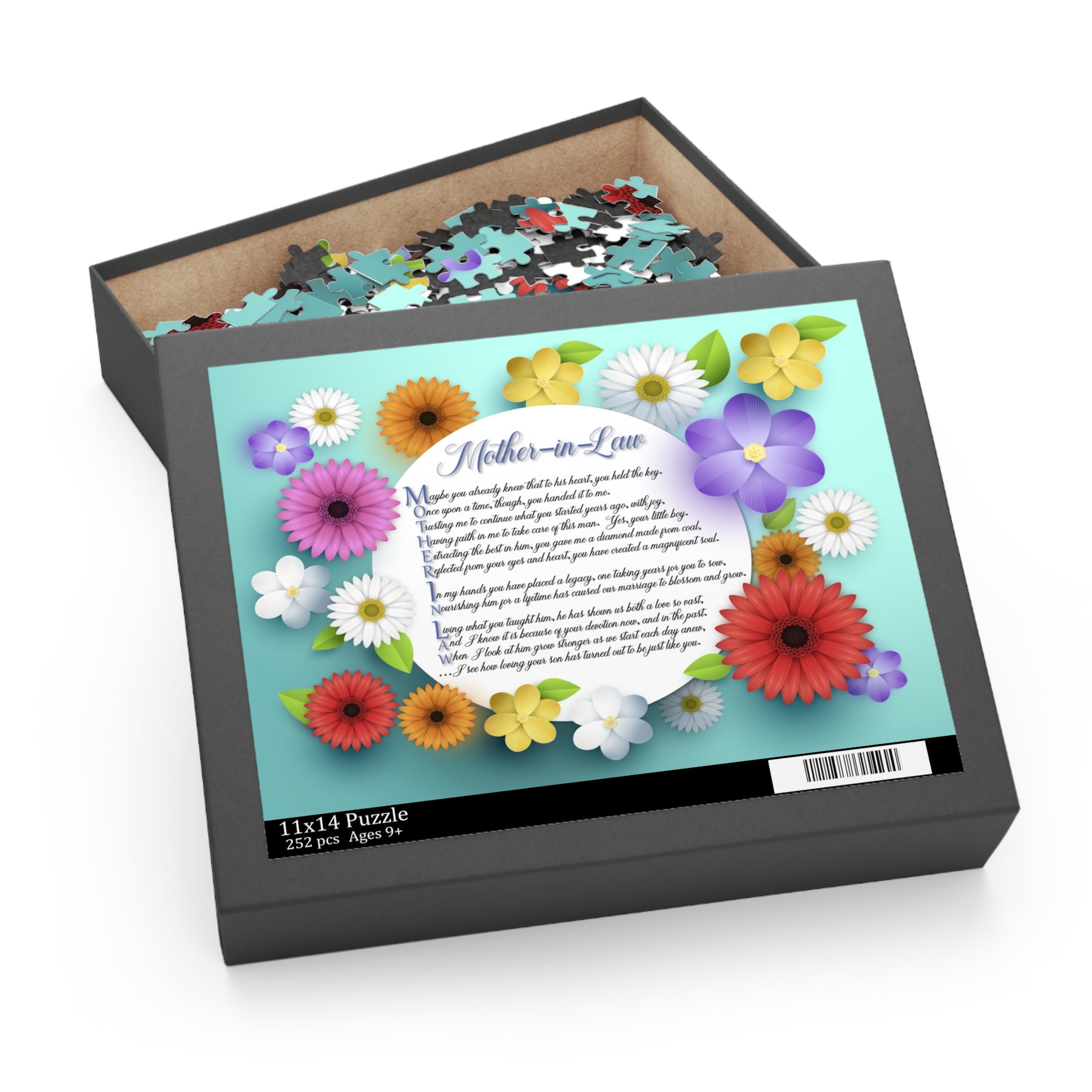 Do you have a mother-in-law you admire who has made your life better by raising her son to be a wonderful husband? Imagine how happy she’ll be to receive this gift. This puzzle features detailed artwork and a creative acrostic poem that spells out Mother-in-Law, making it a special keepsake. Moments in Rhyme offers the It's Just a Phrase Puzzle Collection for puzzle lovers. As your mother-in-law puts the puzzle together, each letter reveals a poem about what she means to you. This is a thoughtful gift for Mother’s Day, birthdays, winter holidays, or any special occasion. It’s a hands-on activity for anyone who enjoys a meaningful present. The puzzle is made from sturdy board with a glossy finish and comes in a gift-ready box. Different sizes are available.