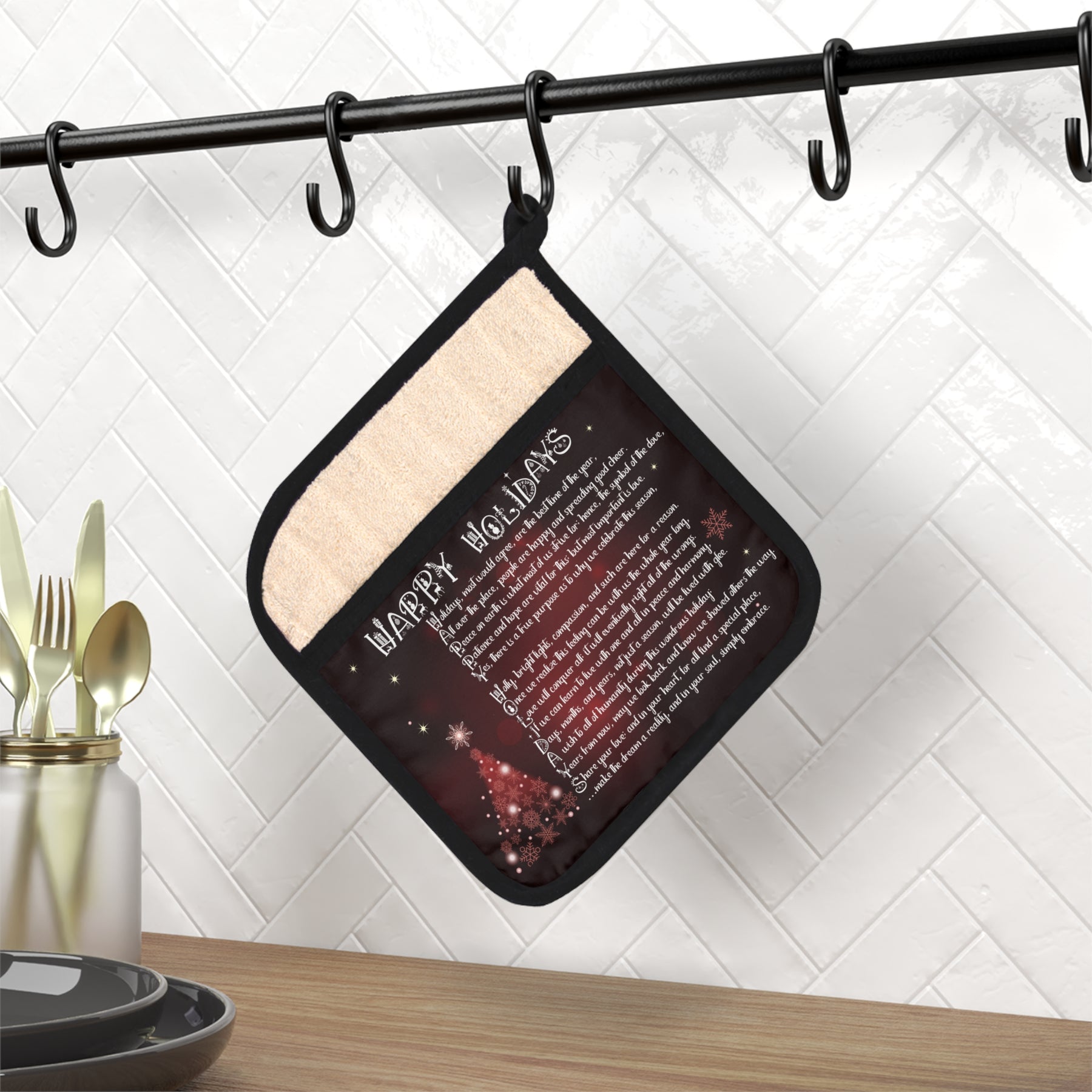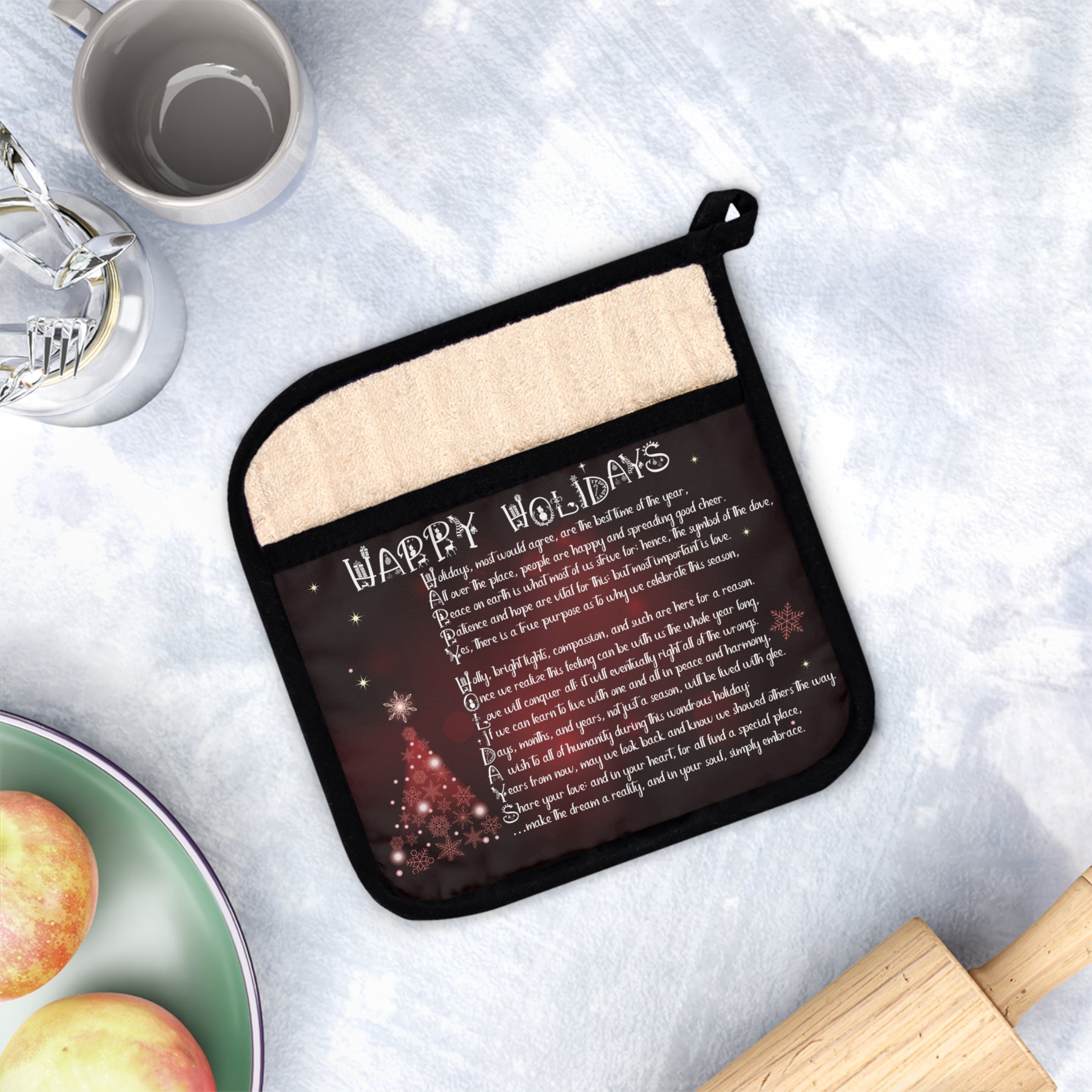 This personalized pot holder was designed to be a stylish kitchen helper that ups any kitchen's decor with a custom flair. Measuring at 9x9 inches in size, it’s perfect for handling hot kitchen pots, or taking out oven trays thanks to its heat resistance of up to 350F. What’s more, the cotton hanging loop allows for convenient storage when not in use.