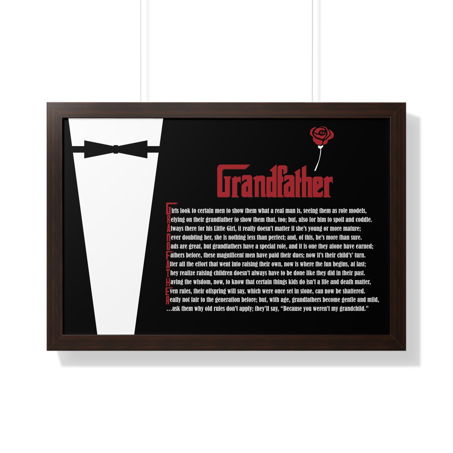 It's Just a Phrase offers a playful acrostic poem print that spells out Grandfather with touching prose. The inviting design makes it a special gift for grandfathers on holidays, Father's Day, or birthdays. You can pick from six sizes and three frame colors. The print uses museum-grade paper and pigment inks for long-lasting quality. It arrives ready to hang in a medium-density fiberboard frame, which is a more sustainable option.