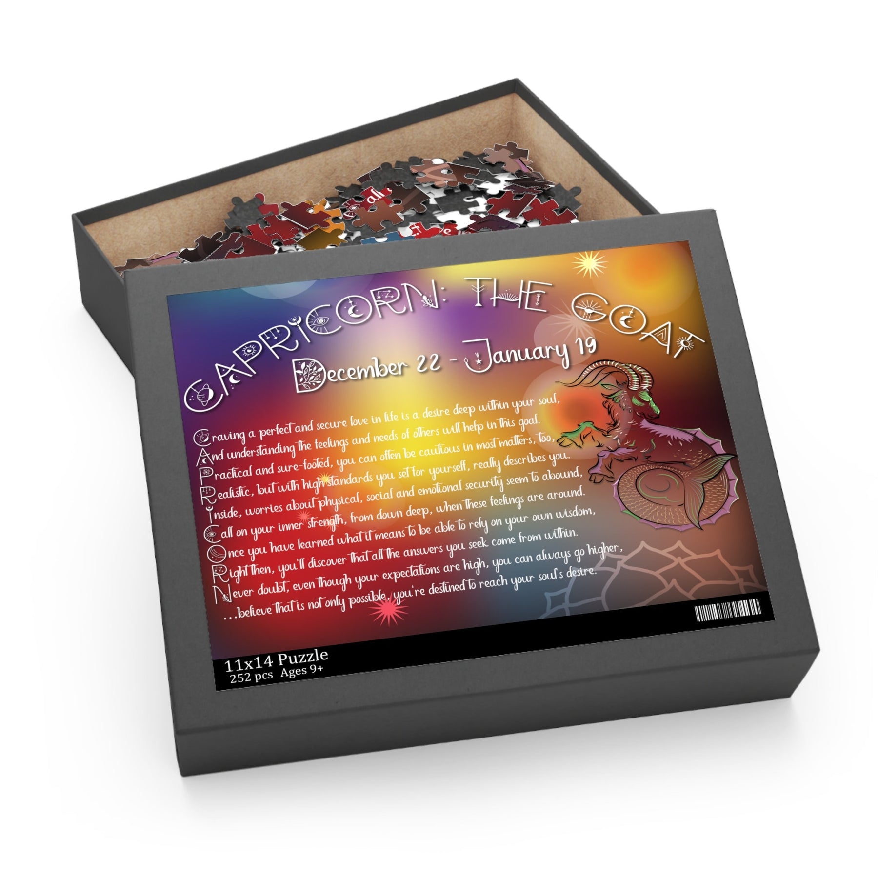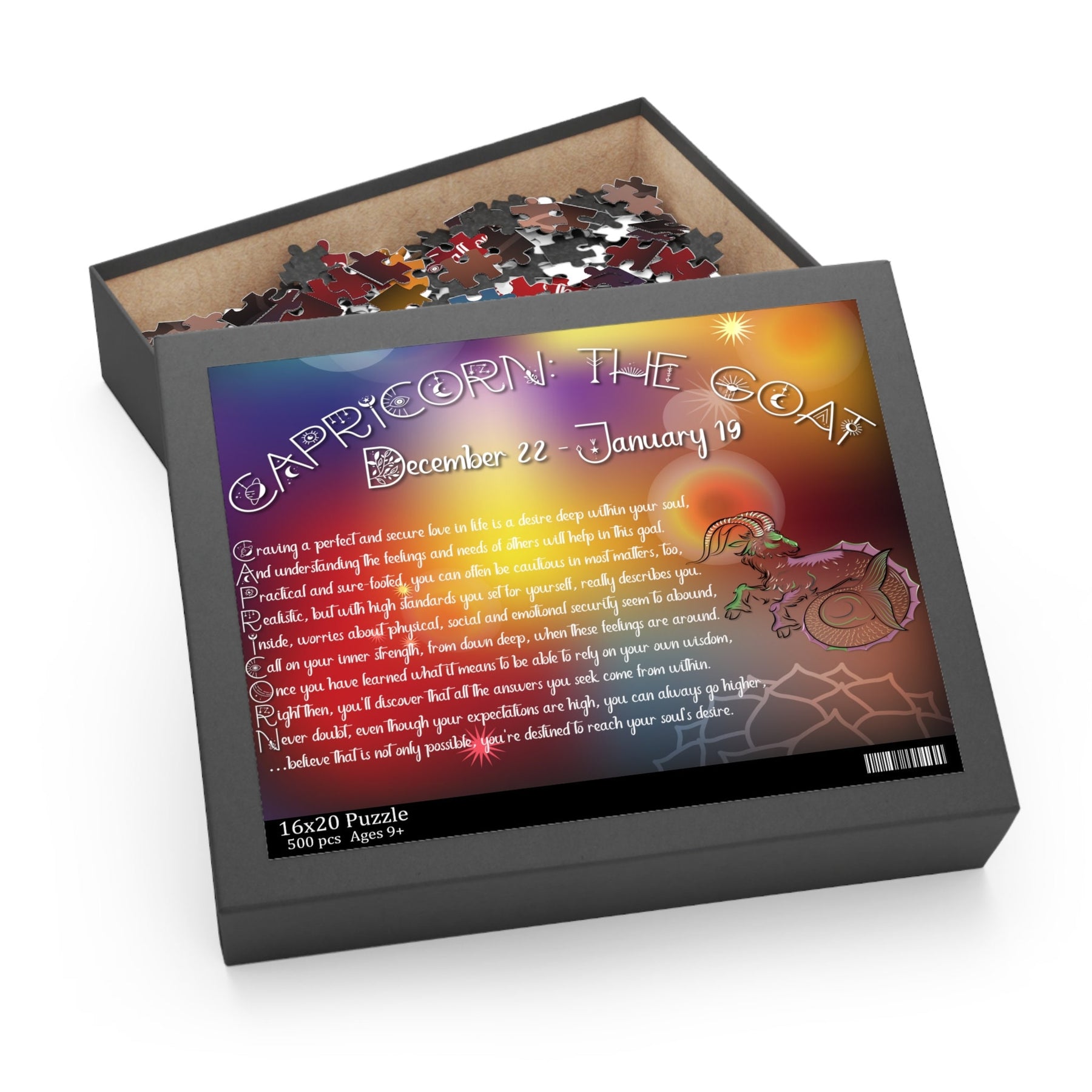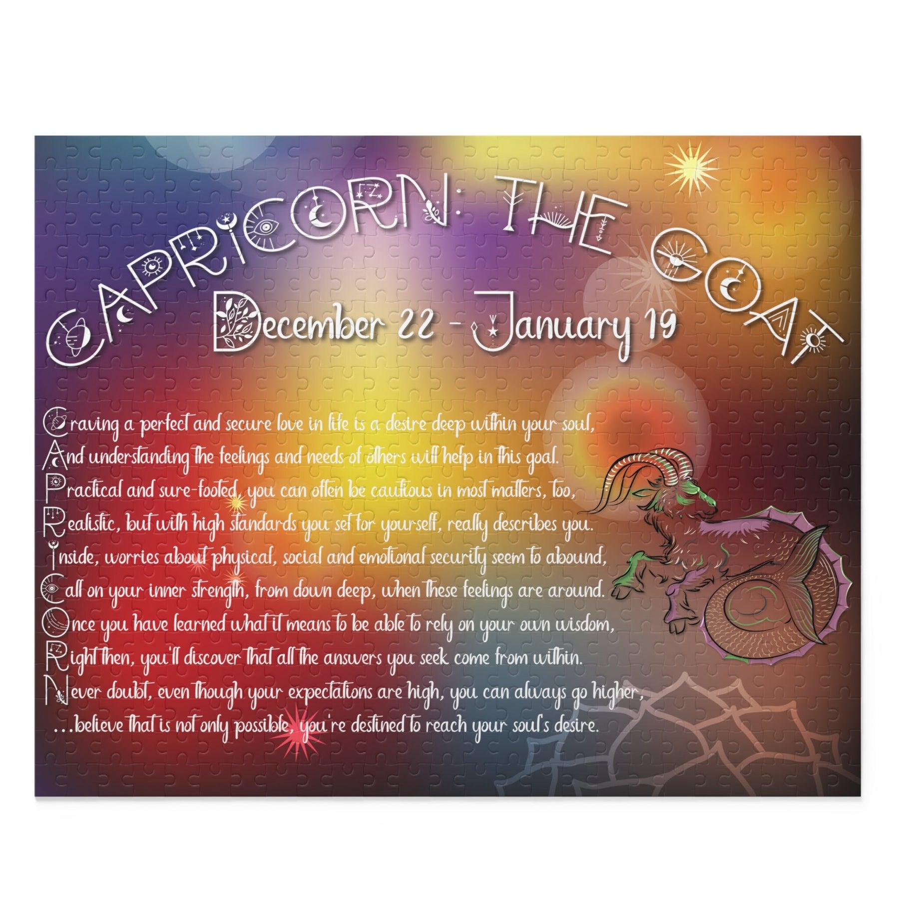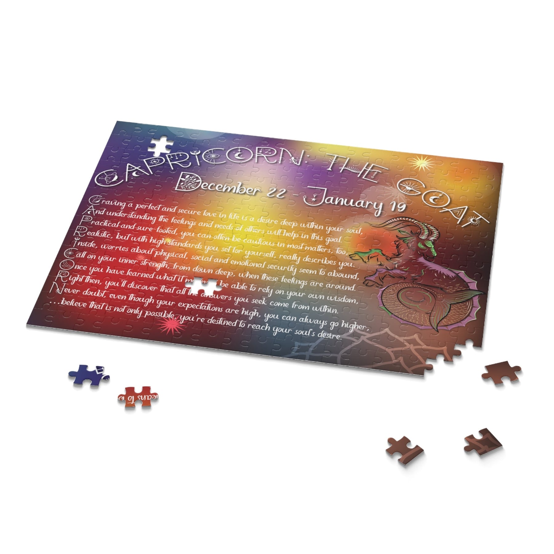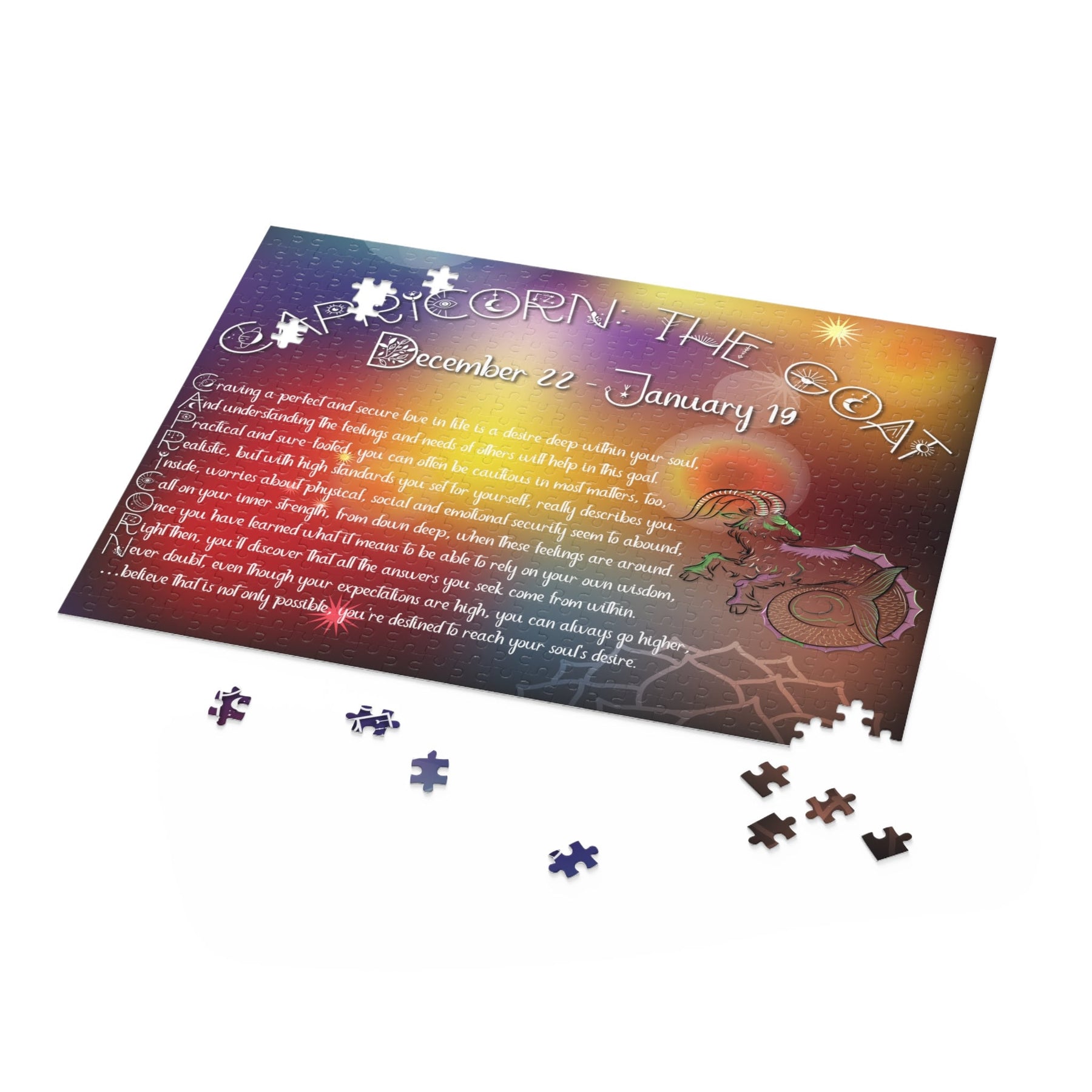 Introducing our "Written in the Stars" Acrostic "Capricorn" Poem Jigsaw Puzzle, meticulously crafted for astrology enthusiasts and puzzle lovers alike. Discover the unique traits and spiritual goal of your Capricorn star sign. Crafted with precision and care, this exciting, astrology-inspired puzzle is a bold, beautiful way to uncover your cosmic destiny. Take the challenge and explore yourself with this amazing puzzle. Piece together this enchanting puzzle, using each letter acts as a clue, unveiling a captivating story from the stars. With its vibrant imagery and intricate design, it's perfect for those seeking a mindful and immersive experience. Unleash your inner cosmic explorer and embrace the magic of your sign with this exquisite puzzle. Hurry, grab your piece of this celestial saga today!